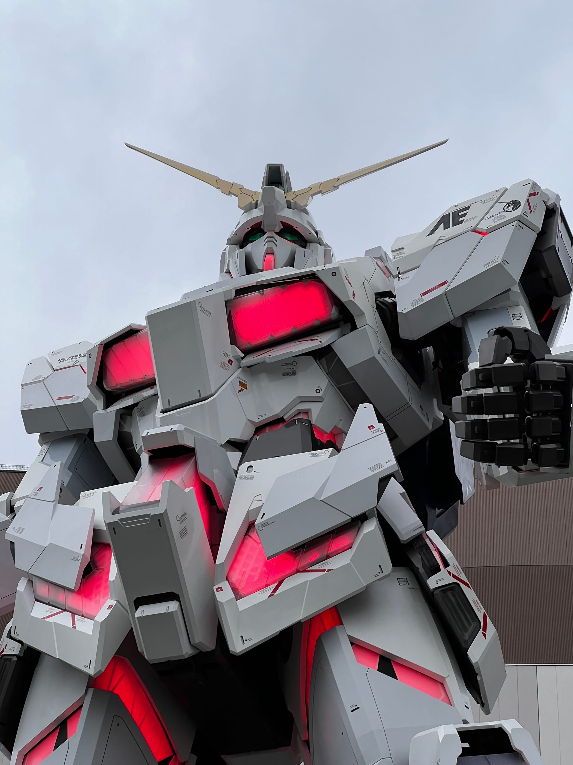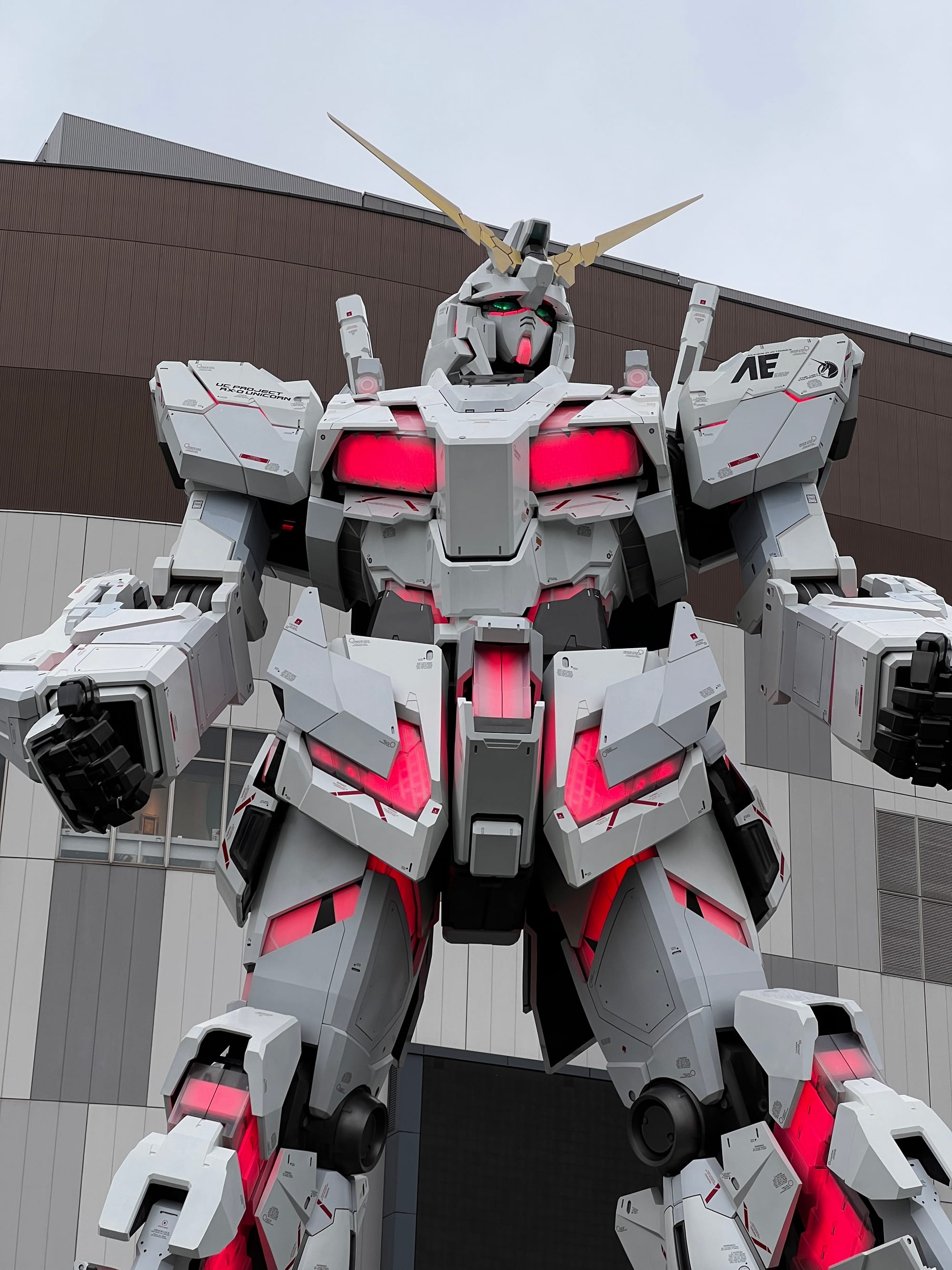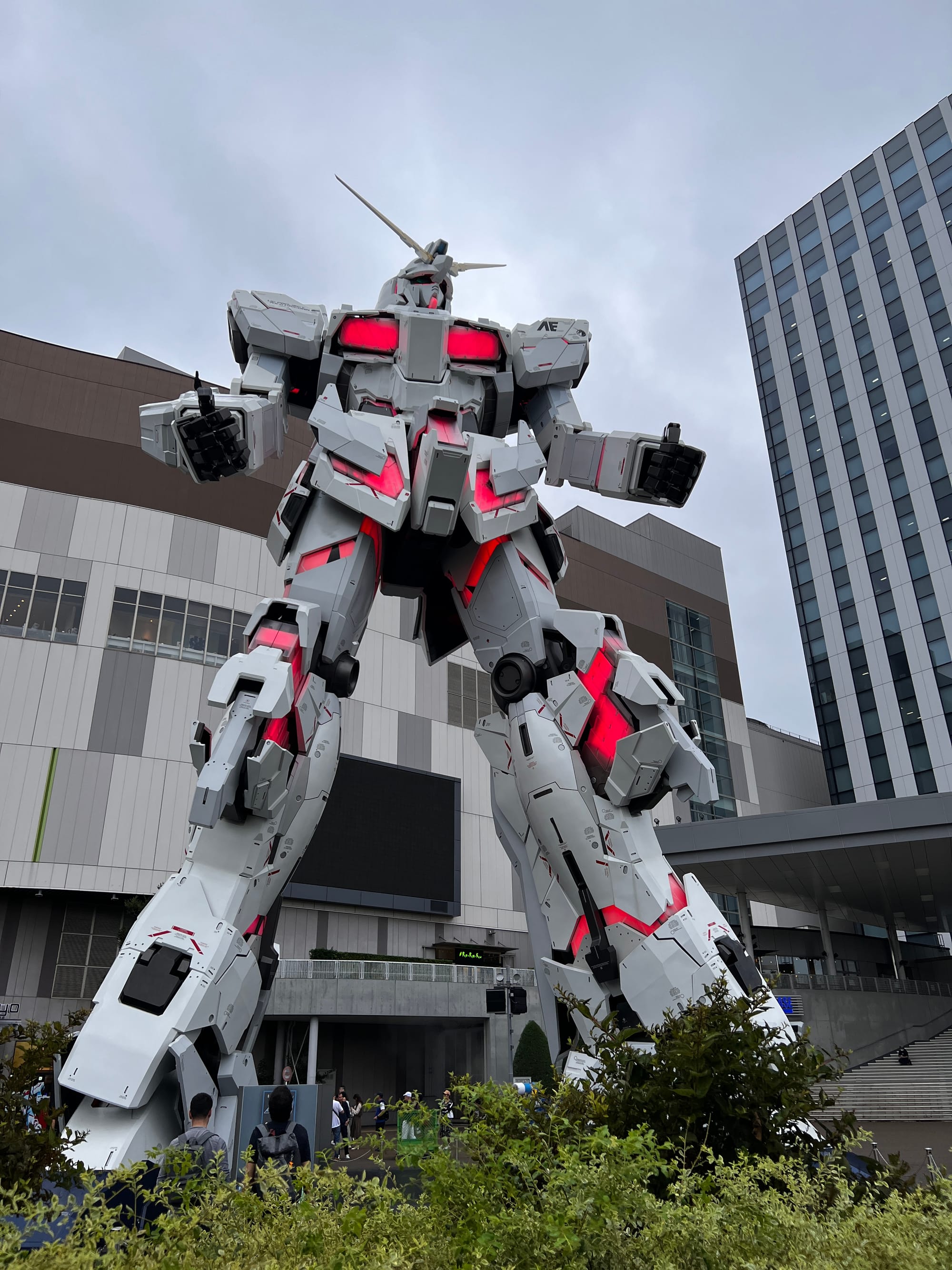 Przed jednym z wejść do centrum handlowego znajduje się gigantyczna statua robota z anime Gundam.