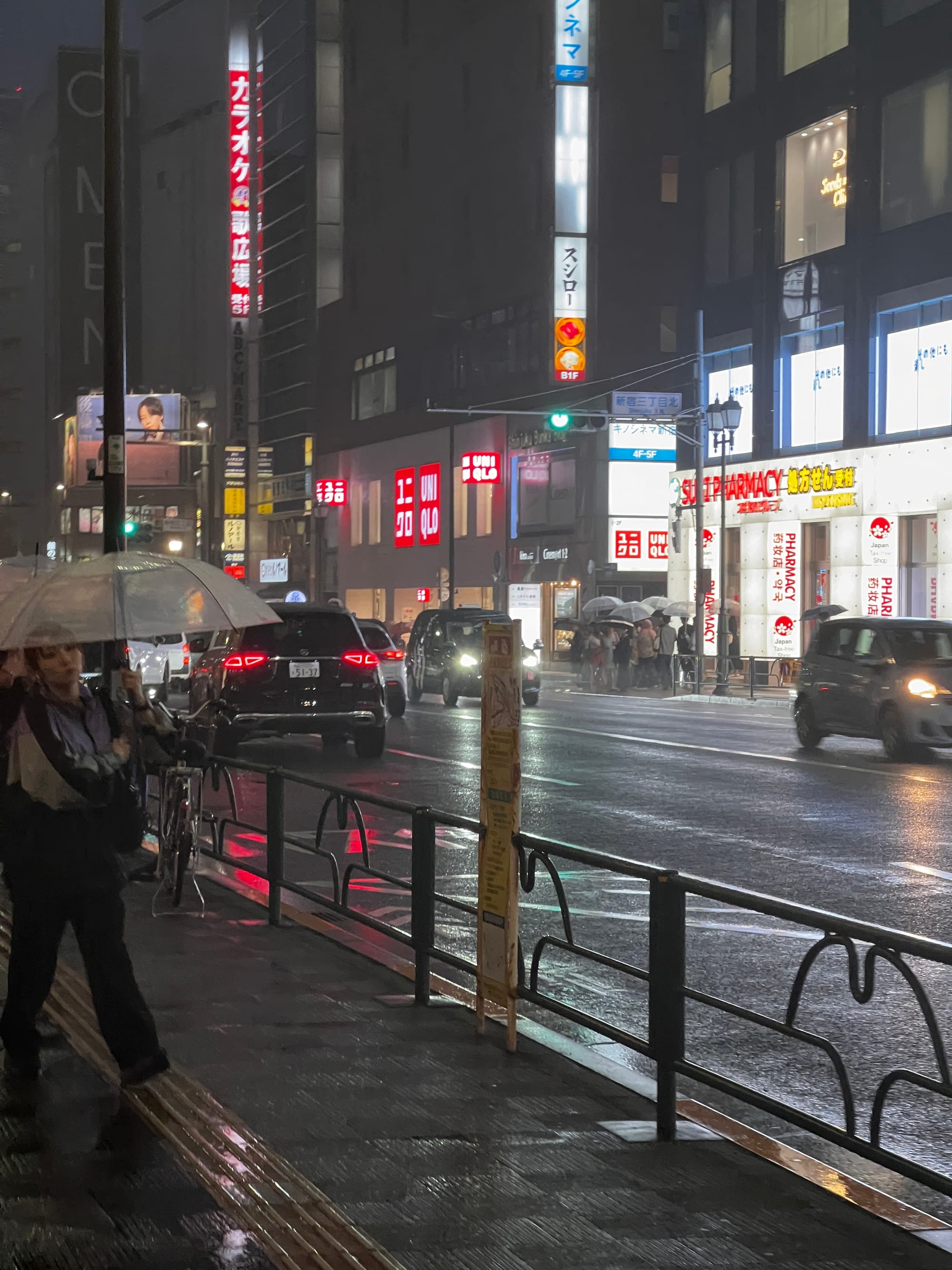 Kolejny dzień w Tokio nie rozpieszczał nas piękną pogodą. Padało (i wciąż pada!) mniej lub bardziej praktycznie cały dzień. Musieliśmy więc poszukać atrakcji, które choć częściowo znajdują się pod dachem. Padło na Odaibę, centrum technologiczne i rozrywkowe na sztucznej wyspie w Zatoce Tokijskiej. Dotarcie tam wymagało skorzystania z metra, co było wyzwaniem ze względu na fakt, że stacja Shinjuku znana jest jako najbardziej ruchliwa stacja kolejowa na świecie, przez co poruszanie się po niej może wydawać się dla przeciętnego gaijina skomplikowane. Na szczęście Adrian okazał się gaijinem nieprzeciętnym i sprawnie doprowadził nas do celu.