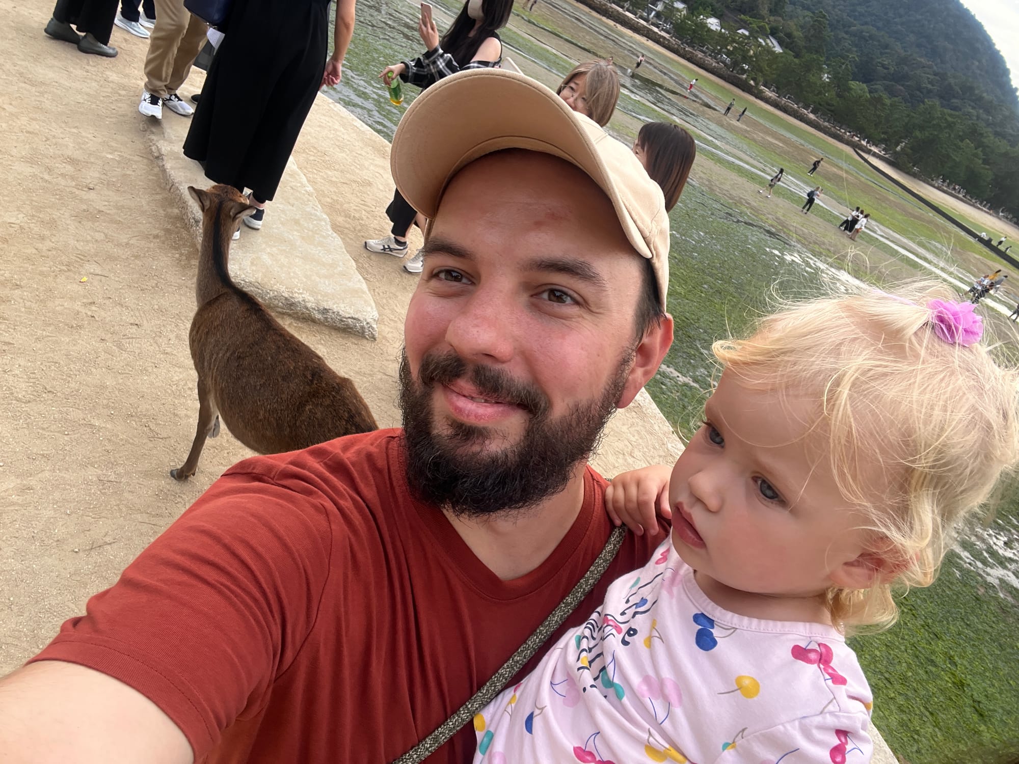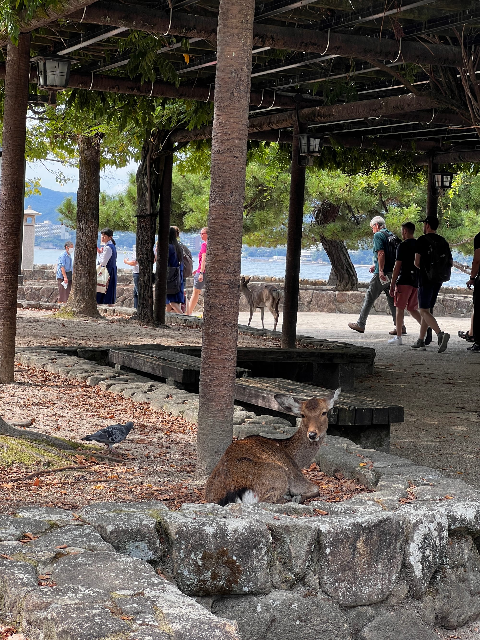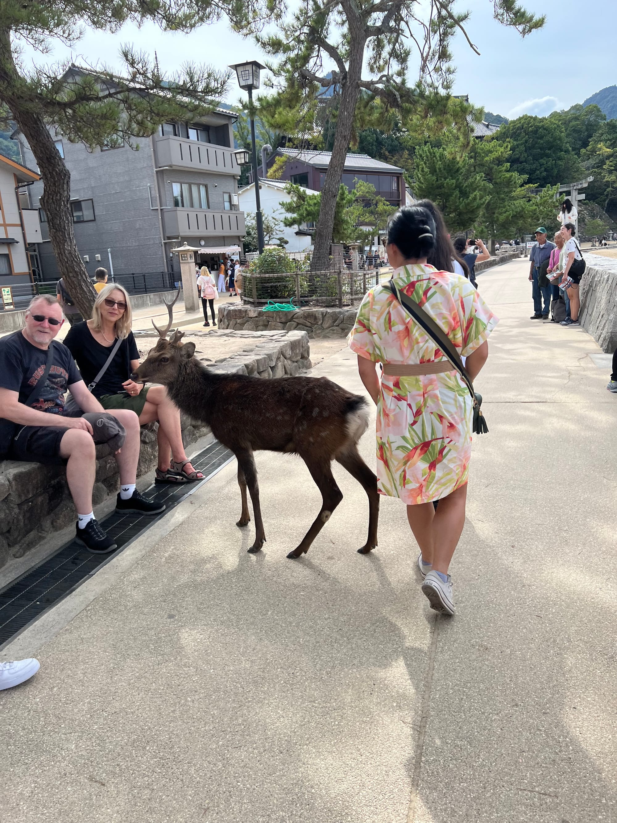 Dzisiaj wybraliśmy się na pobliską wyspę Miya-jima. Najpierw pieszo dotarliśmy do hiroszimskiego Parku Pokoju, który jest naszym głównym celem na jutro, a stamtąd udaliśmy się w 45-minutowy rejs statkiem na wyspę, ciesząc oczy pięknymi widokami po drodze.