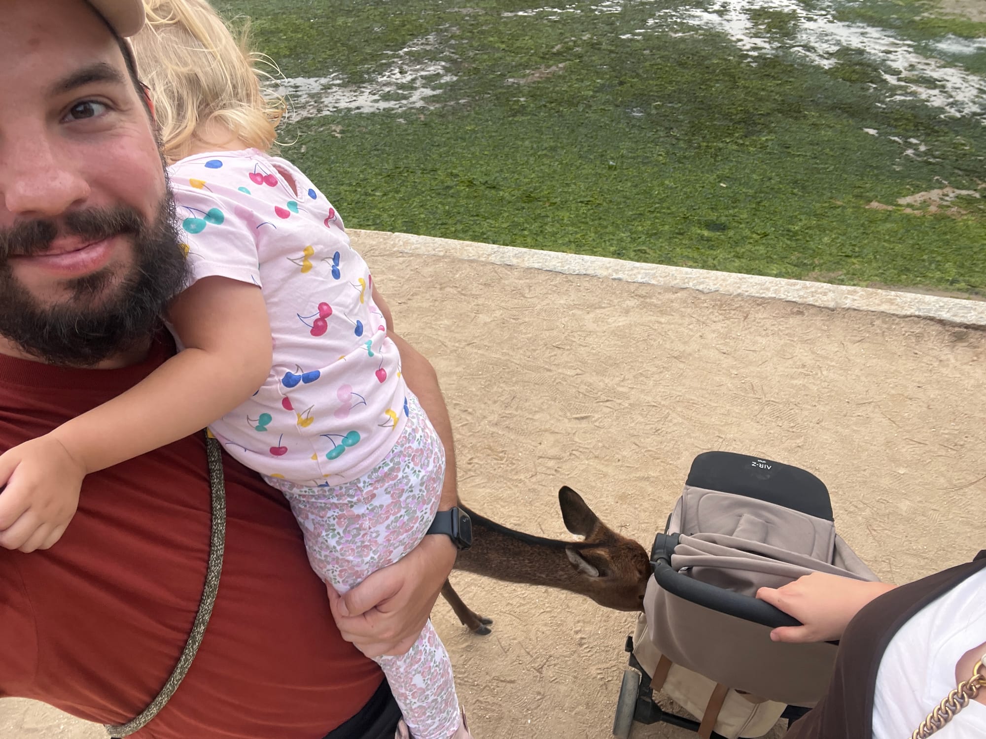 Podczas spaceru po wyspie spotkaliśmy też naszych dobrych przyjaciół, a jeden z nich znów chciał wykraść nam coś z wózka 😉.