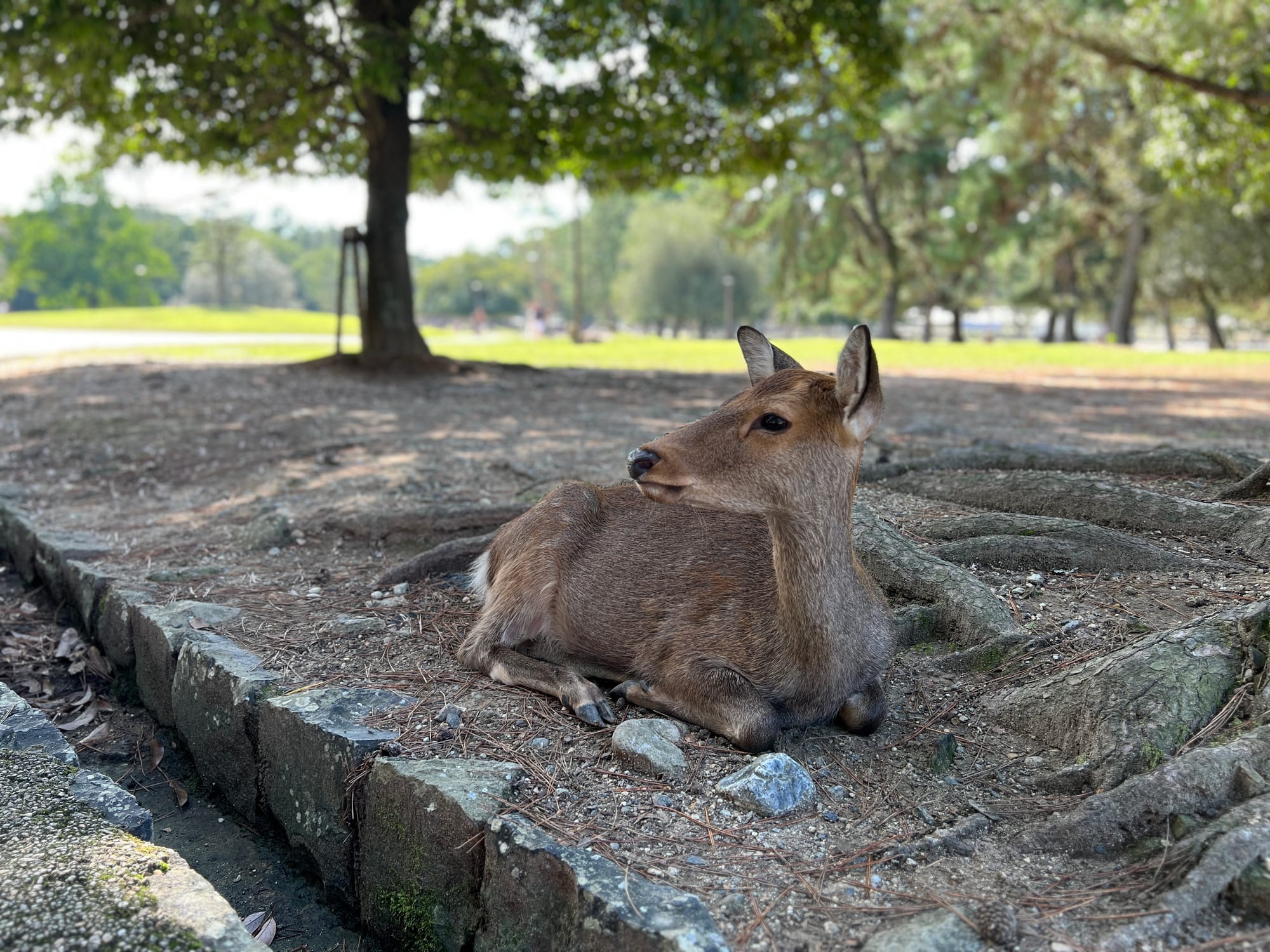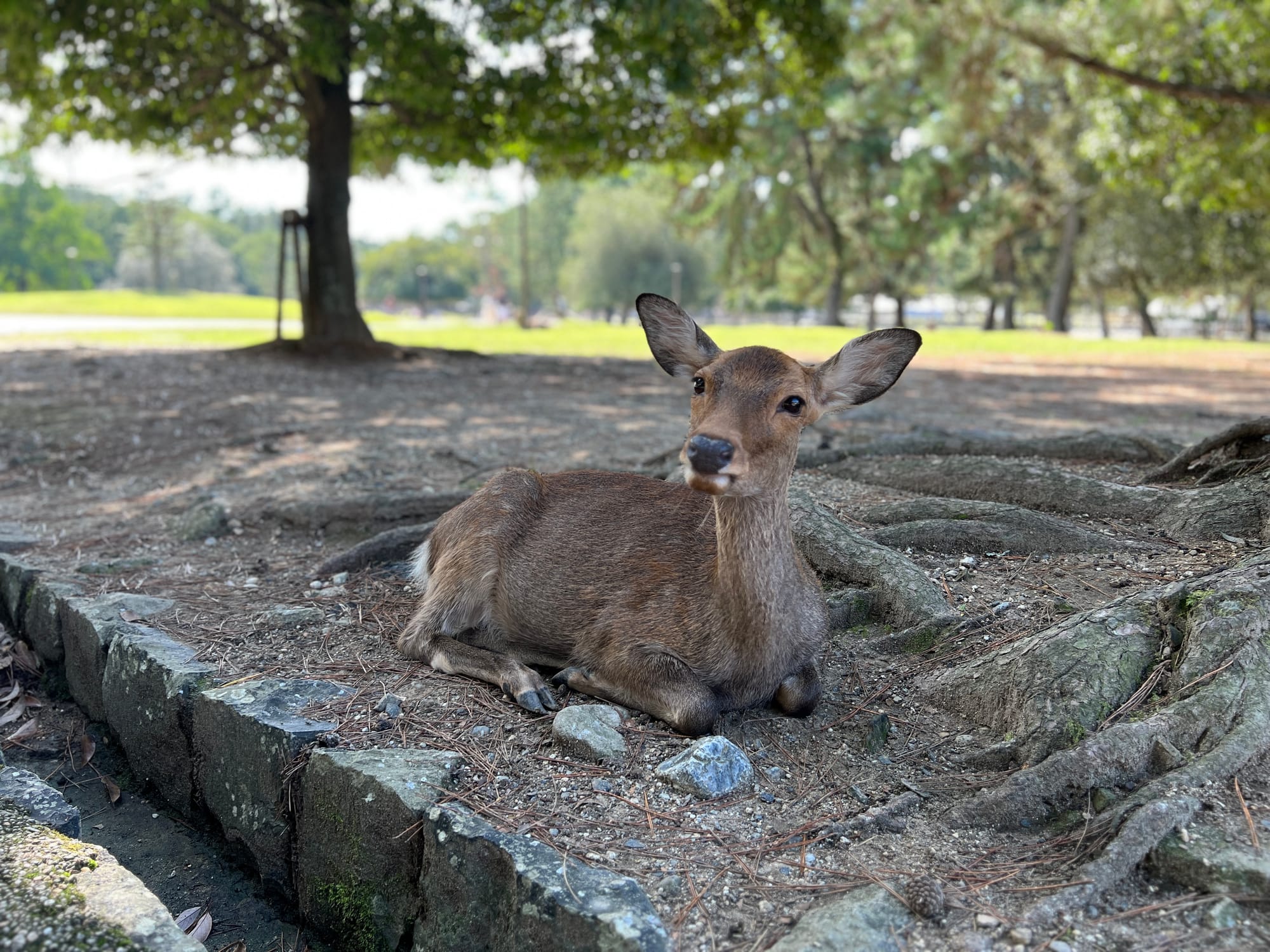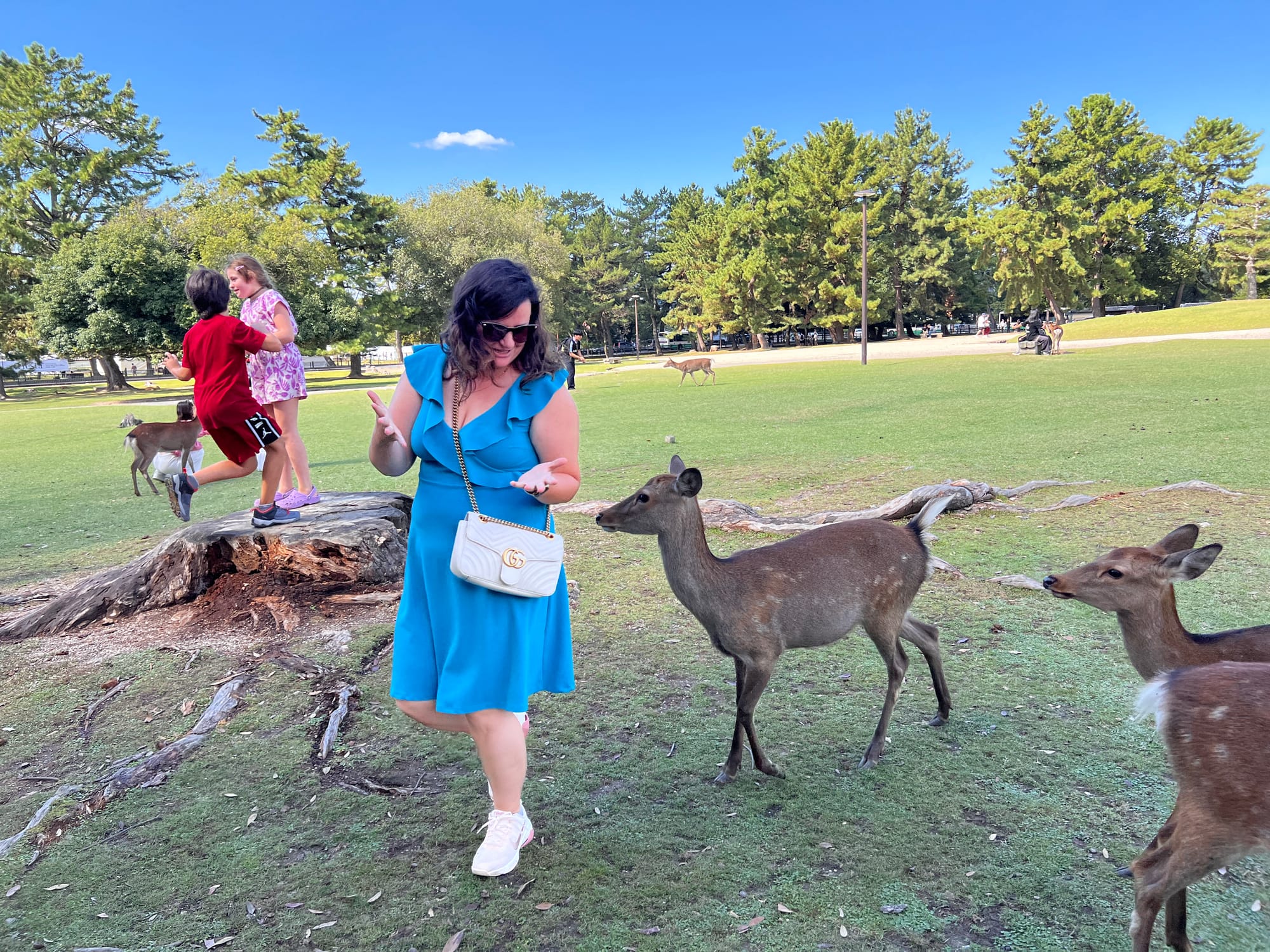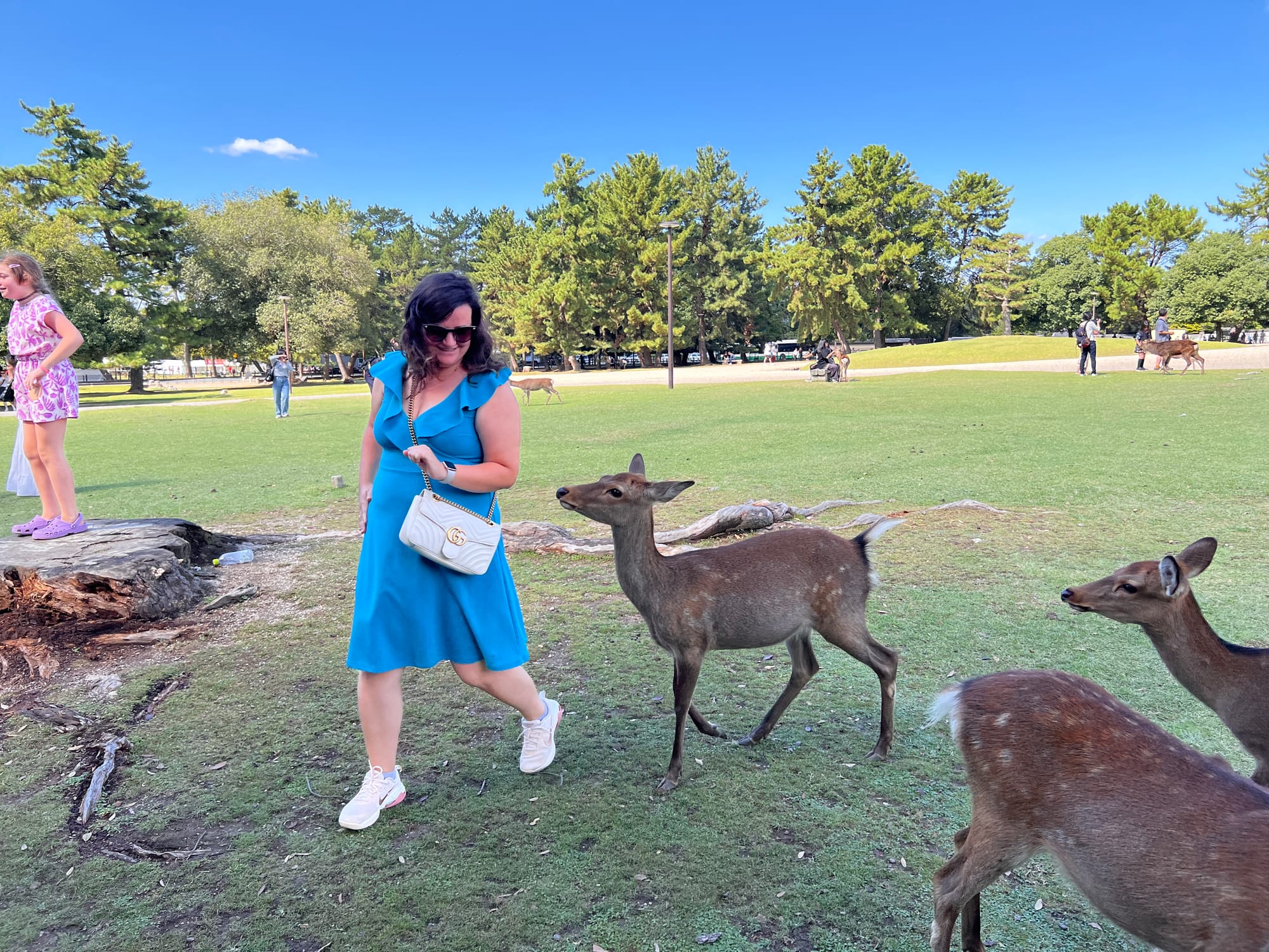 Dzisiaj wybraliśmy się do pobliskiego miasta o nazwie Nara. Miasto to było pierwszą stałą stolicą Japonii i siedzibą dworu cesarskiego. Po przeniesieniu stolicy do Kioto, stało się ważnym ośrodkiem klasztornym. Do dzisiaj w Narze znajduje się wiele świątyń. My zdecydowaliśmy się odwiedzić tylko jedną z nich, bo na trasie naszego zwiedzania do tej pory świątyń nie brakowało, a wstęp do nich zazwyczaj jest płatny. Oprócz świątyń, Nara słynie również z jeleni sika, które przechadzają się swobodnie po parkach przy nich położonych. Jelenie chętnie podchodzą do ludzi, oczekując od nich jedzenia. Ich przysmak, ryżowe krakersy, można zakupić na straganach przy parkach za 200 jenów (około 5,30 zł).