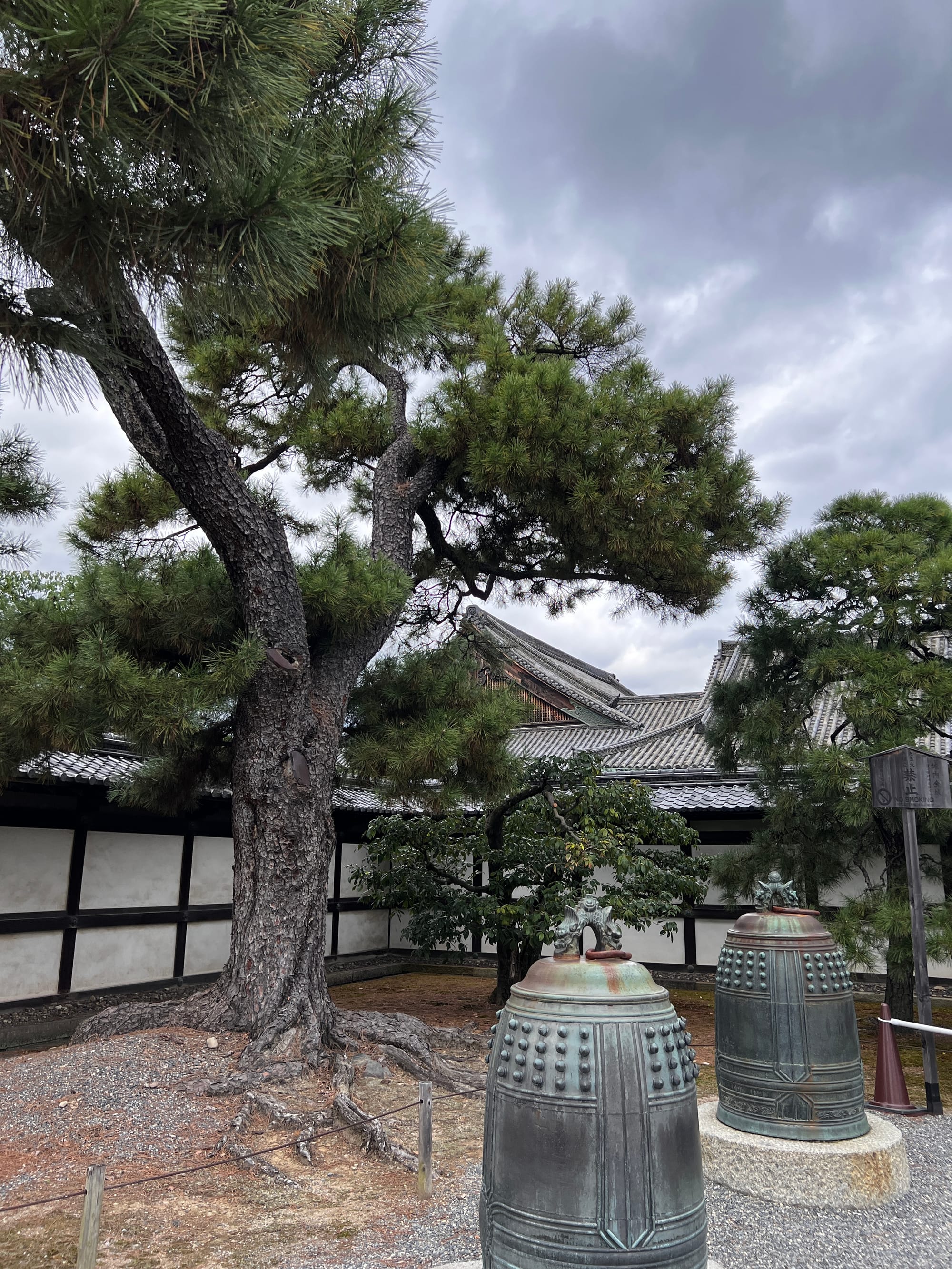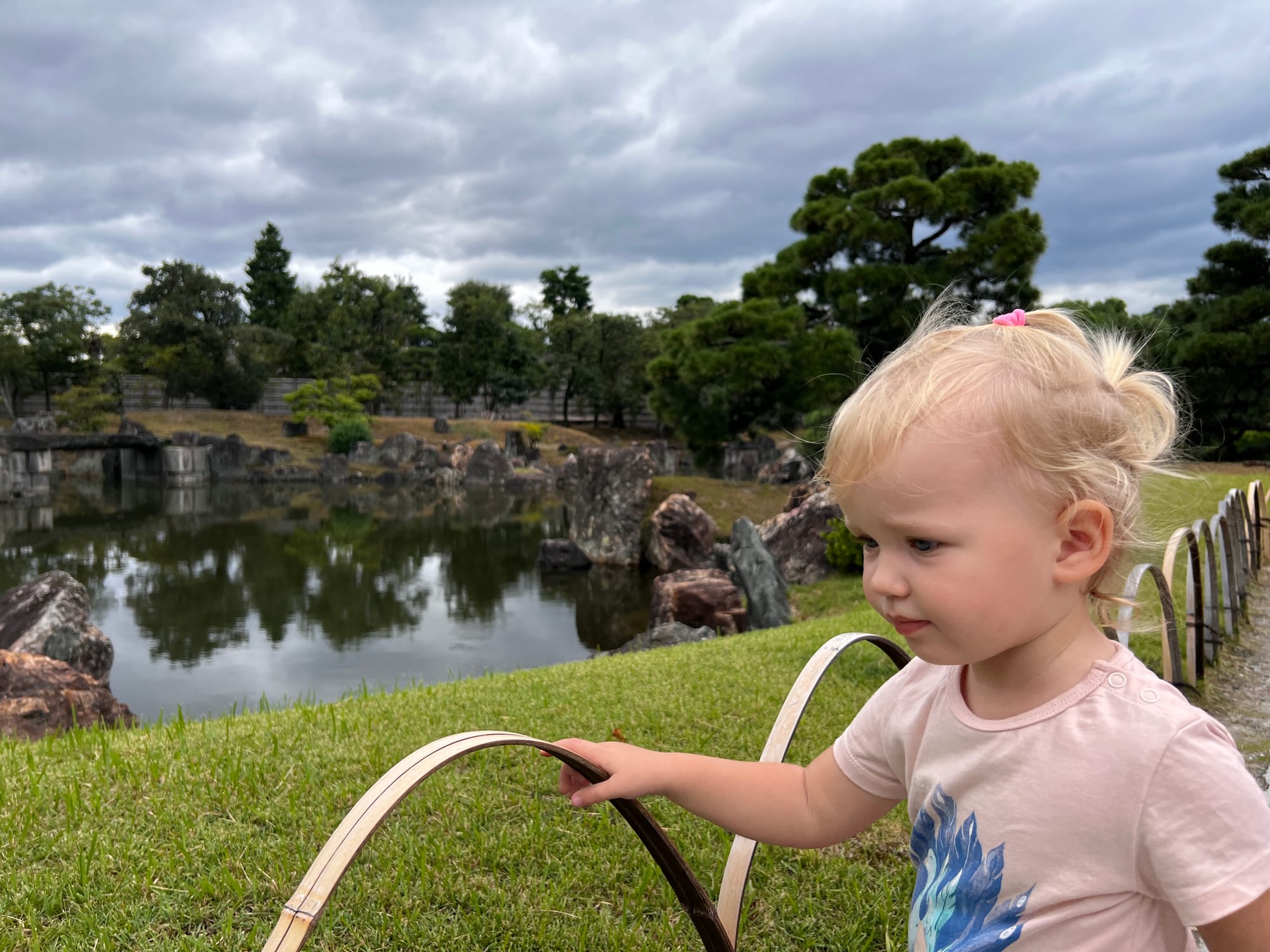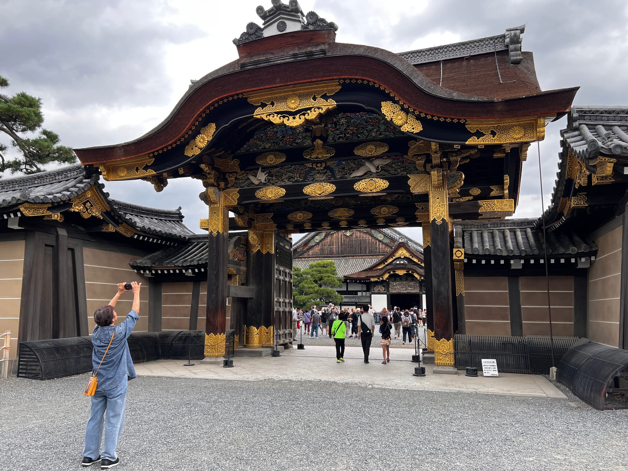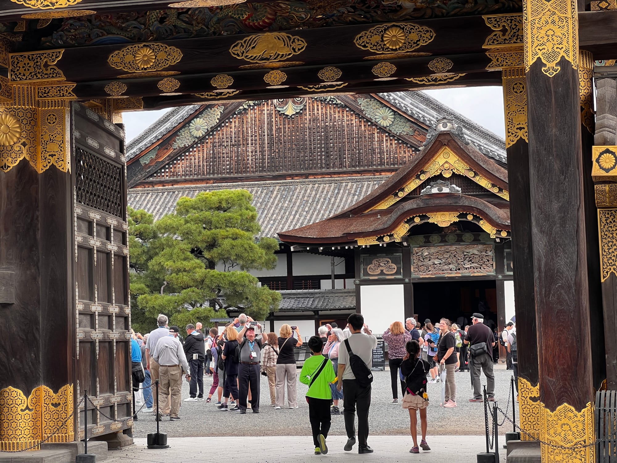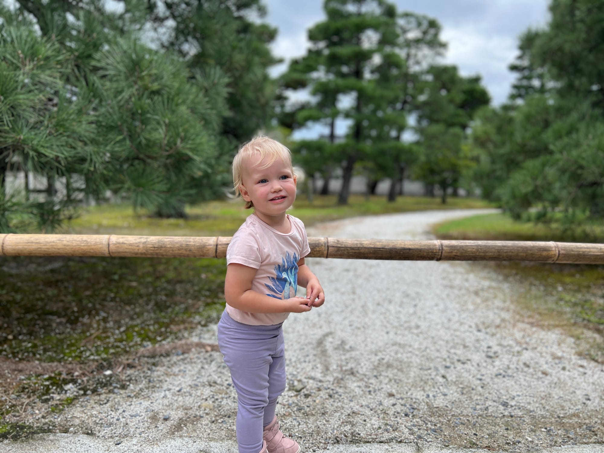 Dzisiaj rozpoczęliśmy dzień od odwiedzenia Zamku Nijo, należącego do zespołu zabytkowego dawnego Kioto, Uji i Otsu, wpisanego na listę światowego dziedzictwa UNESCO w 1994 roku. Był on siedzibą shogunów przez ponad 200 lat. Następnie, po upadku szogunatu, przekazany został Cesarzowi Meji i przez pewien czas pełnił funkcję pałacu cesarskiego, aby ostatecznie trafić do zasobów miasta Kioto, które umożliwiło jego zwiedzanie. Zamek Nijo spełniał również funkcje obronne i stanowił symbol militarnej potęgi rodu Tokugawa. Można zwiedzać go w środku, jednak przed wejściem konieczne jest ściągnięcie butów, jak również obowiązuje zakaz robienia zdjeć i nagrywania wideo. Na nas zdecydowanie większe wrażenie zrobiła zewnętrzna część zamku i piękne, otaczające go ogrody. Tosia z kolei najbardziej zachwycona była kamyczkami, które podnosiła i rzucała przed siebie.