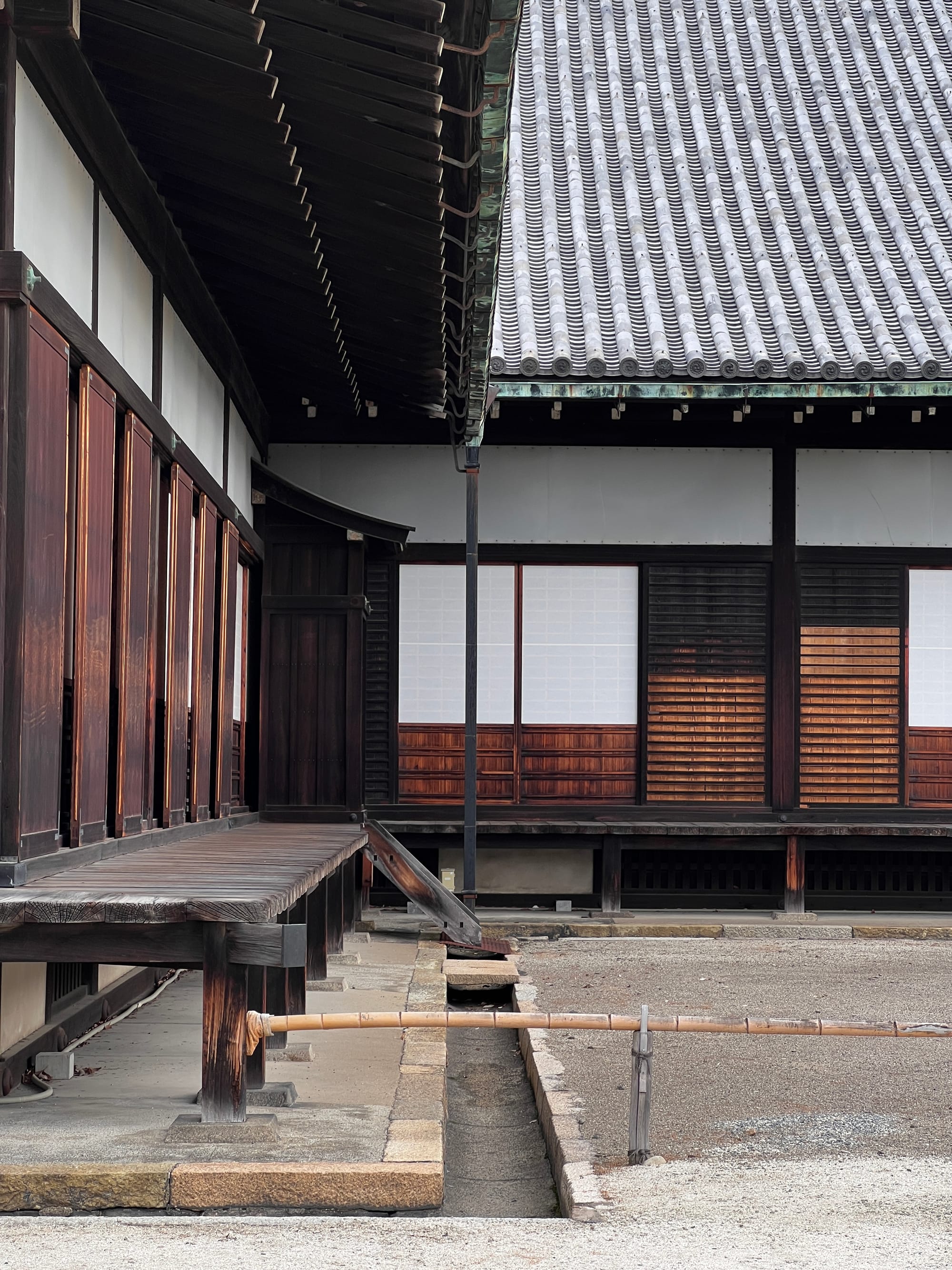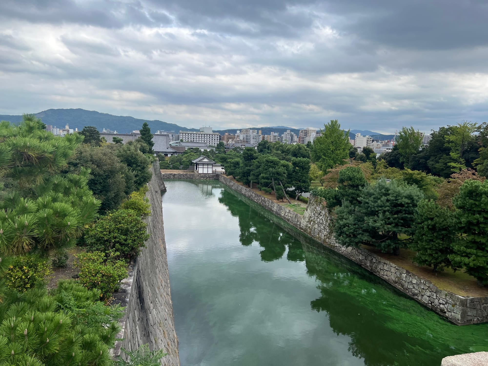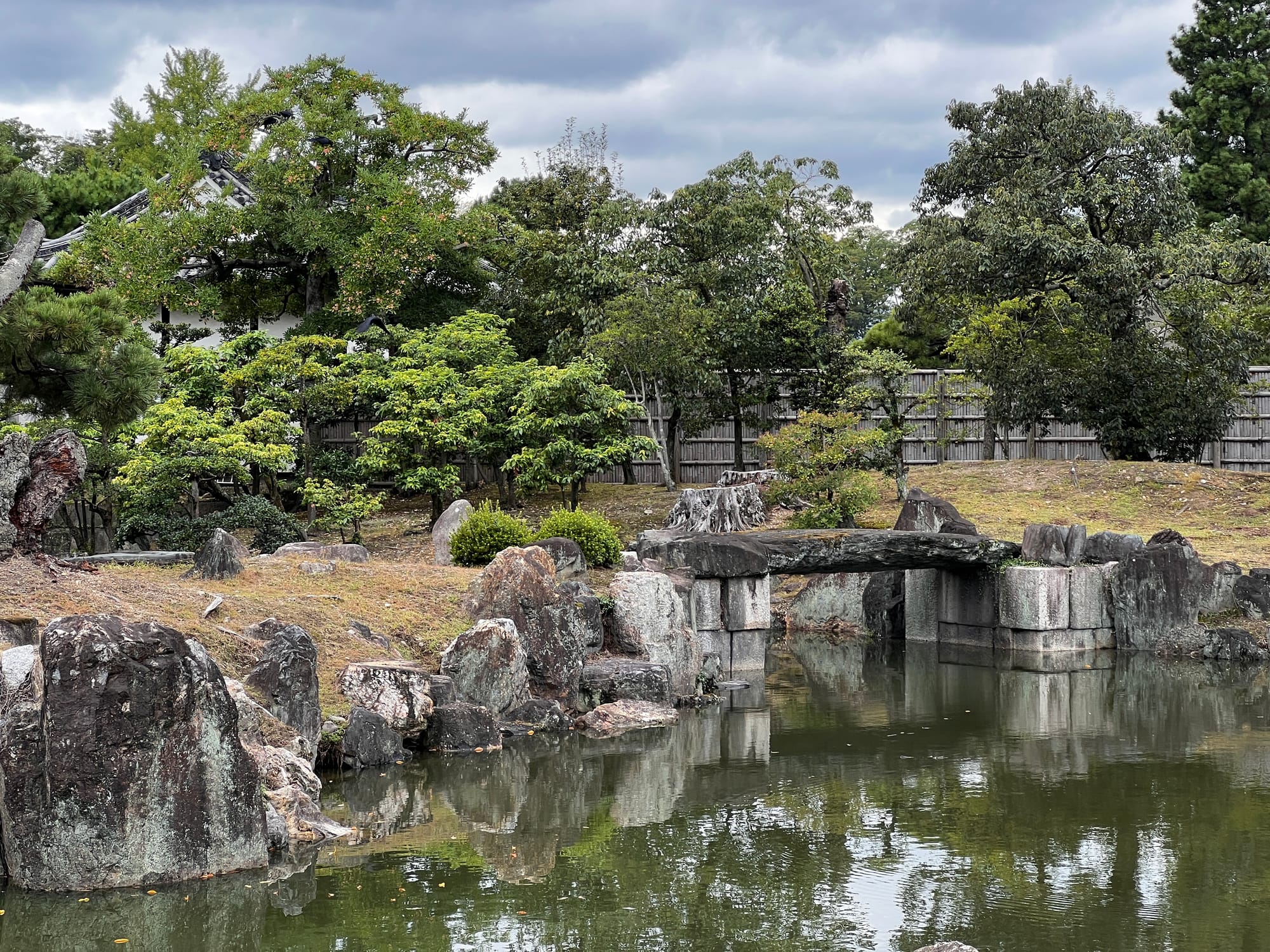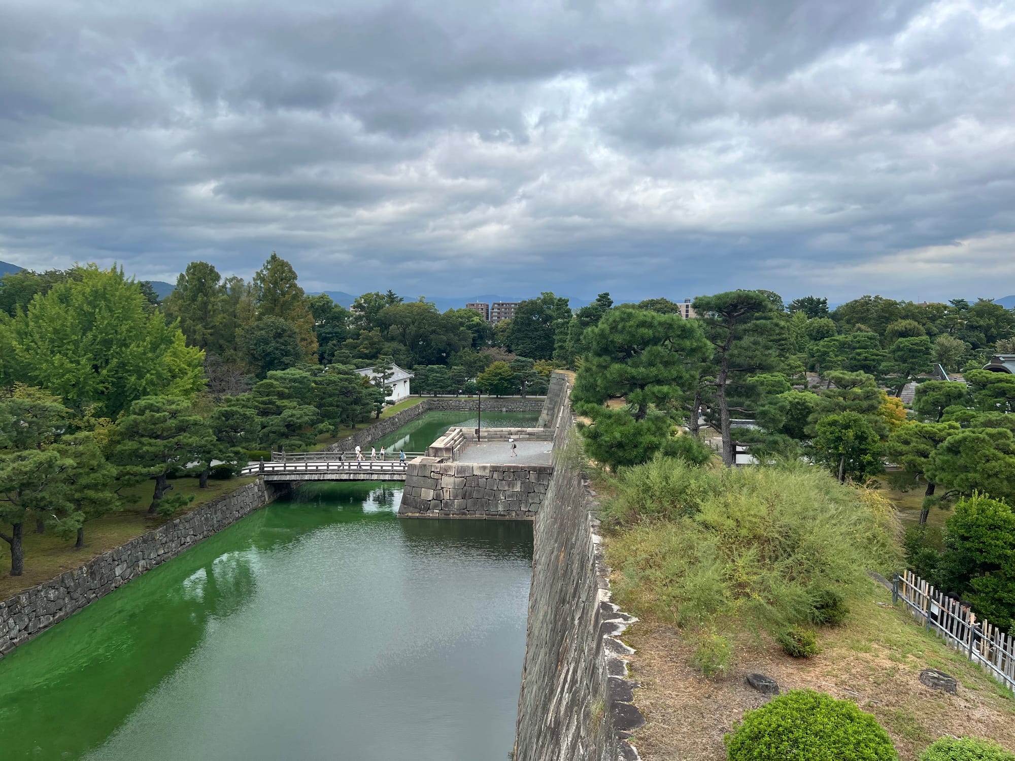 Dzisiaj rozpoczęliśmy dzień od odwiedzenia Zamku Nijo, należącego do zespołu zabytkowego dawnego Kioto, Uji i Otsu, wpisanego na listę światowego dziedzictwa UNESCO w 1994 roku. Był on siedzibą shogunów przez ponad 200 lat. Następnie, po upadku szogunatu, przekazany został Cesarzowi Meji i przez pewien czas pełnił funkcję pałacu cesarskiego, aby ostatecznie trafić do zasobów miasta Kioto, które umożliwiło jego zwiedzanie. Zamek Nijo spełniał również funkcje obronne i stanowił symbol militarnej potęgi rodu Tokugawa. Można zwiedzać go w środku, jednak przed wejściem konieczne jest ściągnięcie butów, jak również obowiązuje zakaz robienia zdjeć i nagrywania wideo. Na nas zdecydowanie większe wrażenie zrobiła zewnętrzna część zamku i piękne, otaczające go ogrody. Tosia z kolei najbardziej zachwycona była kamyczkami, które podnosiła i rzucała przed siebie.