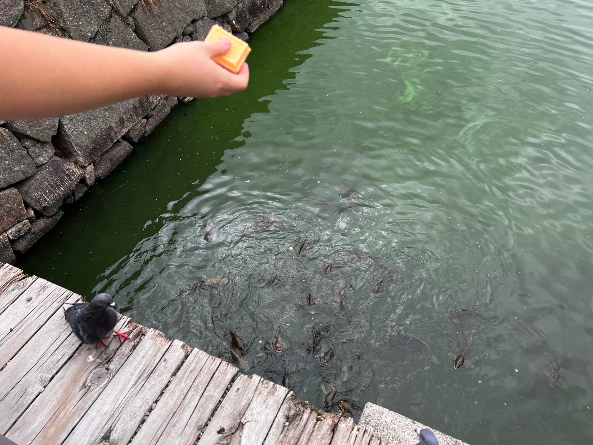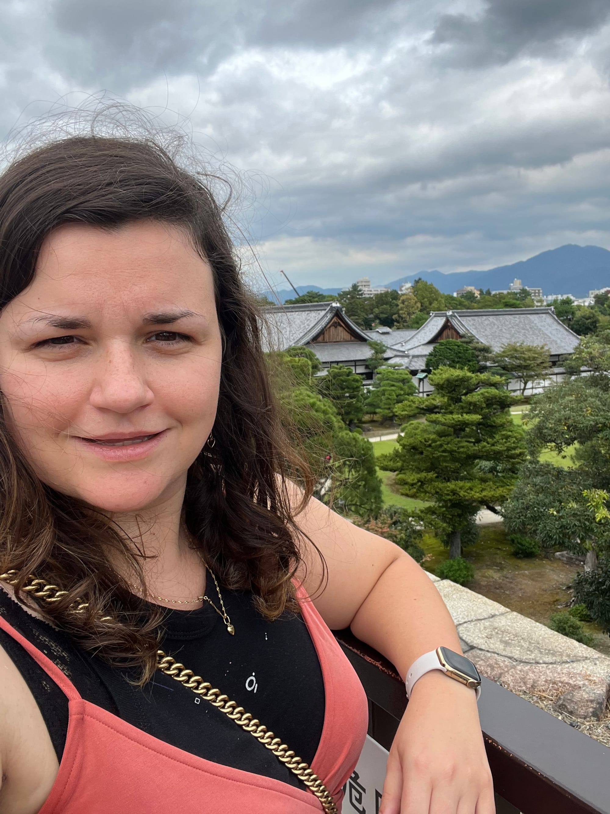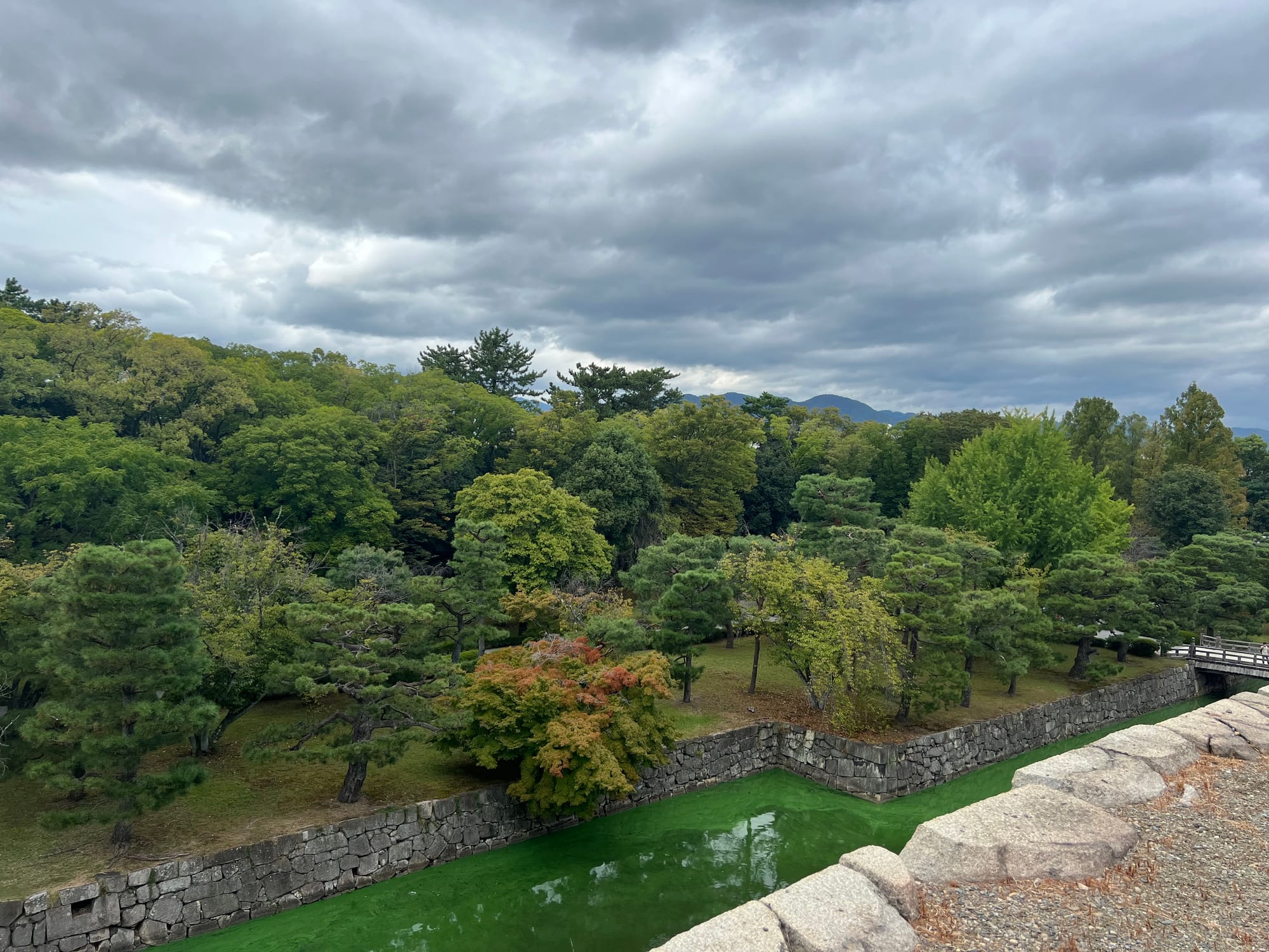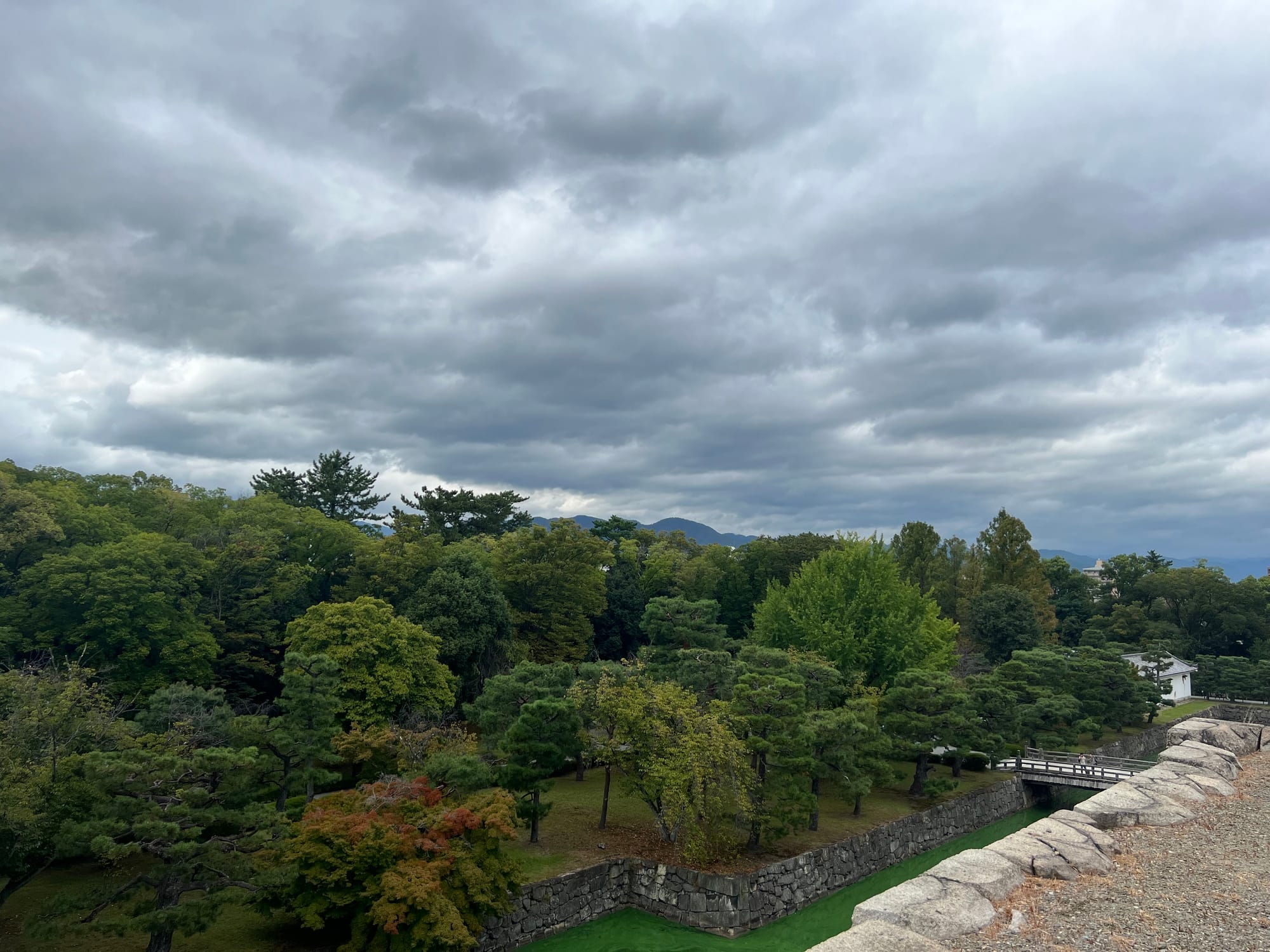 Dzisiaj rozpoczęliśmy dzień od odwiedzenia Zamku Nijo, należącego do zespołu zabytkowego dawnego Kioto, Uji i Otsu, wpisanego na listę światowego dziedzictwa UNESCO w 1994 roku. Był on siedzibą shogunów przez ponad 200 lat. Następnie, po upadku szogunatu, przekazany został Cesarzowi Meji i przez pewien czas pełnił funkcję pałacu cesarskiego, aby ostatecznie trafić do zasobów miasta Kioto, które umożliwiło jego zwiedzanie. Zamek Nijo spełniał również funkcje obronne i stanowił symbol militarnej potęgi rodu Tokugawa. Można zwiedzać go w środku, jednak przed wejściem konieczne jest ściągnięcie butów, jak również obowiązuje zakaz robienia zdjeć i nagrywania wideo. Na nas zdecydowanie większe wrażenie zrobiła zewnętrzna część zamku i piękne, otaczające go ogrody. Tosia z kolei najbardziej zachwycona była kamyczkami, które podnosiła i rzucała przed siebie.