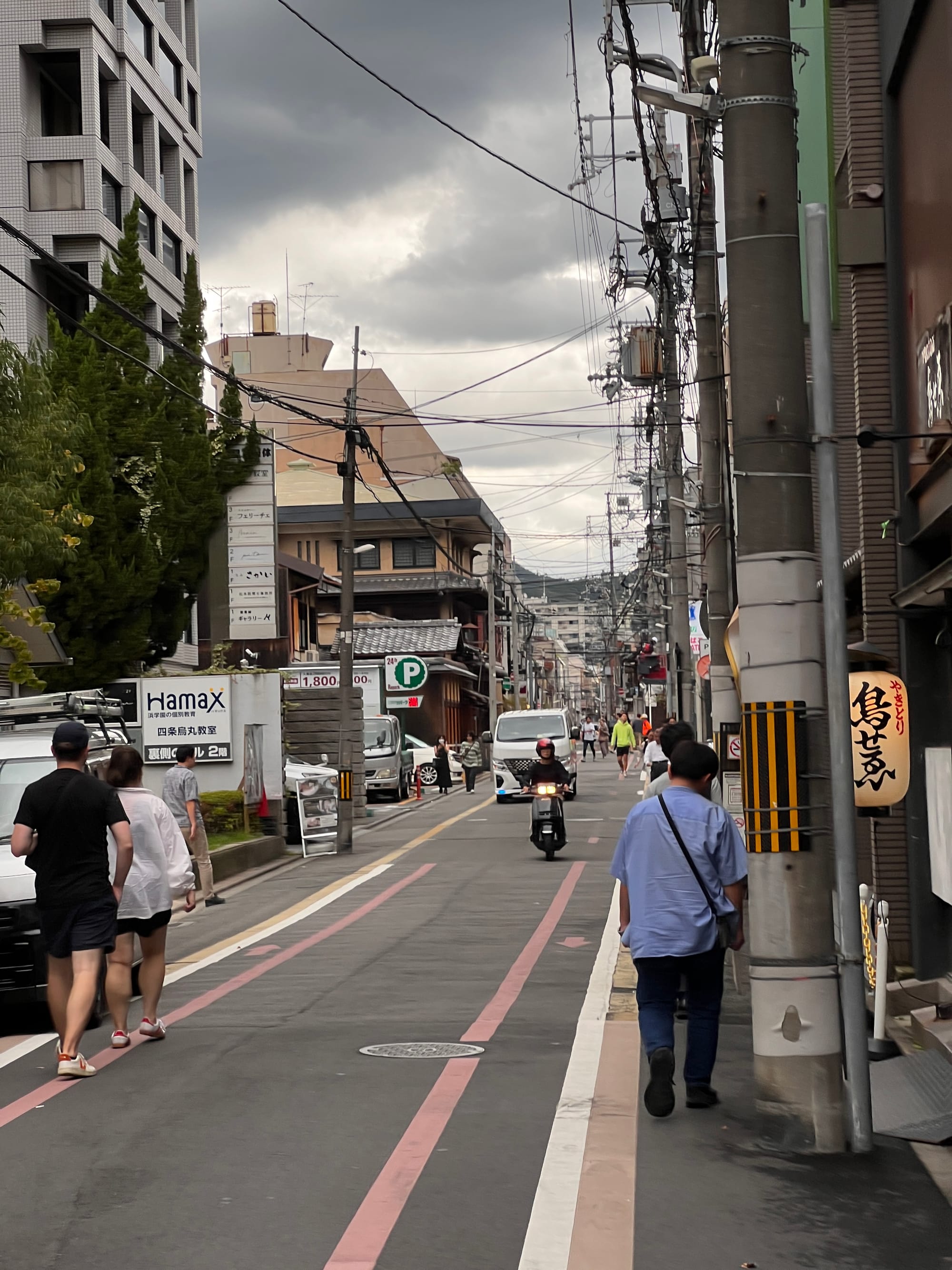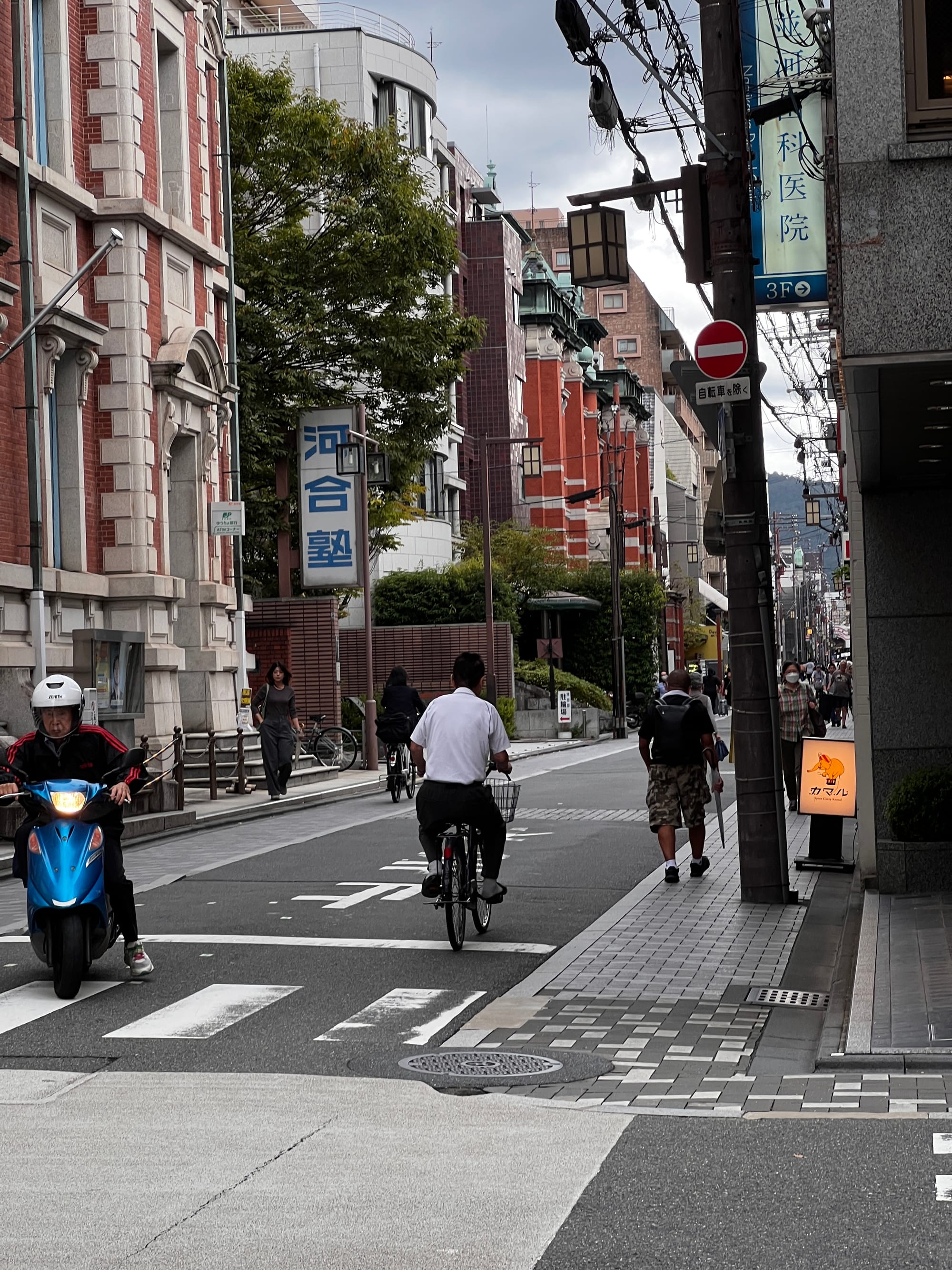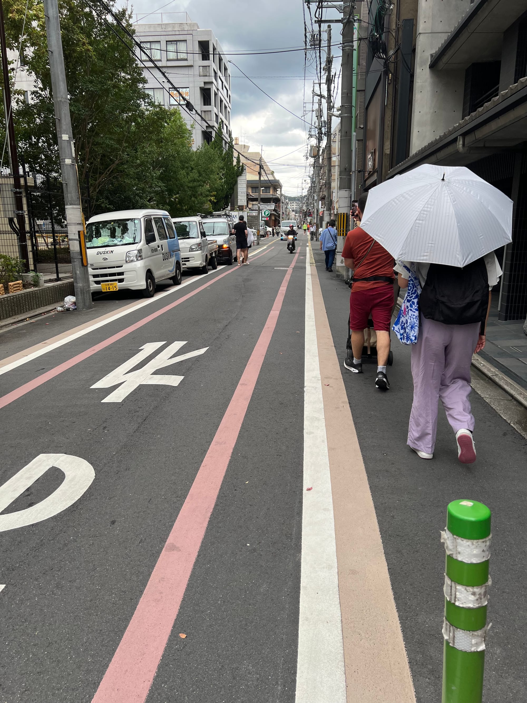 Po Kioto poruszaliśmy się dzisiaj tak, jak lubimy najbardziej, czyli pieszo, co nie zawsze było proste, ponieważ wiele uliczek tego miasta jest bardzo wąskich, bez chodników, z wydzielonymi jedynie pasami dla przechodniów i rowerów, które też są tutaj bardzo popularnym środkiem transportu. Na szczęście są też obszary z szerszymi ulicami i normalnymi chodnikami.