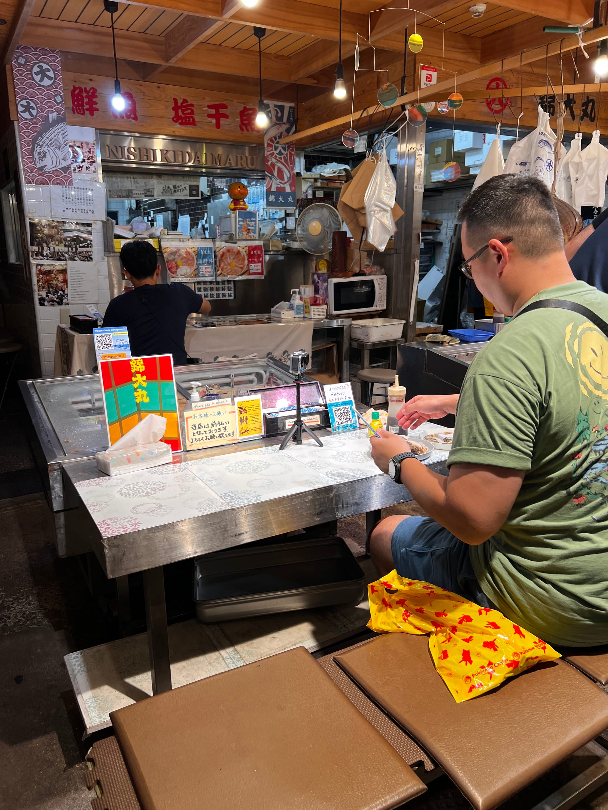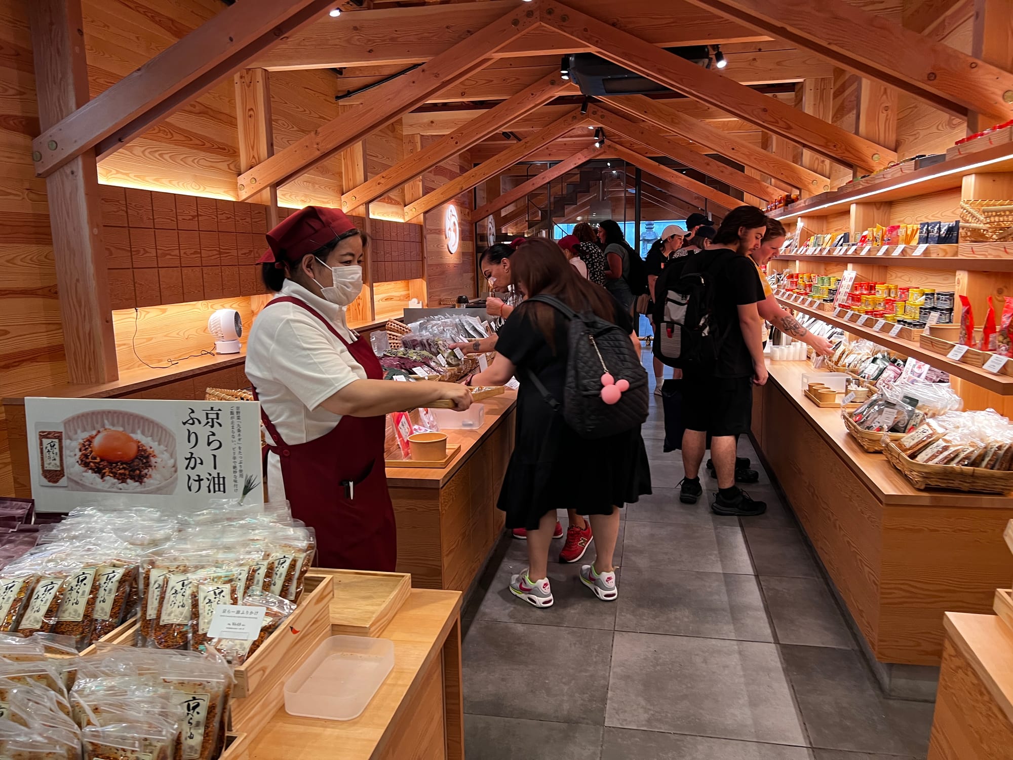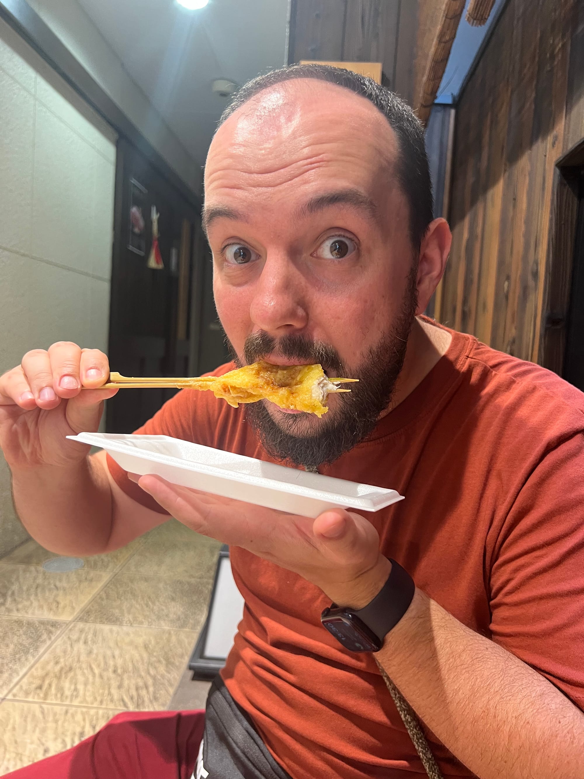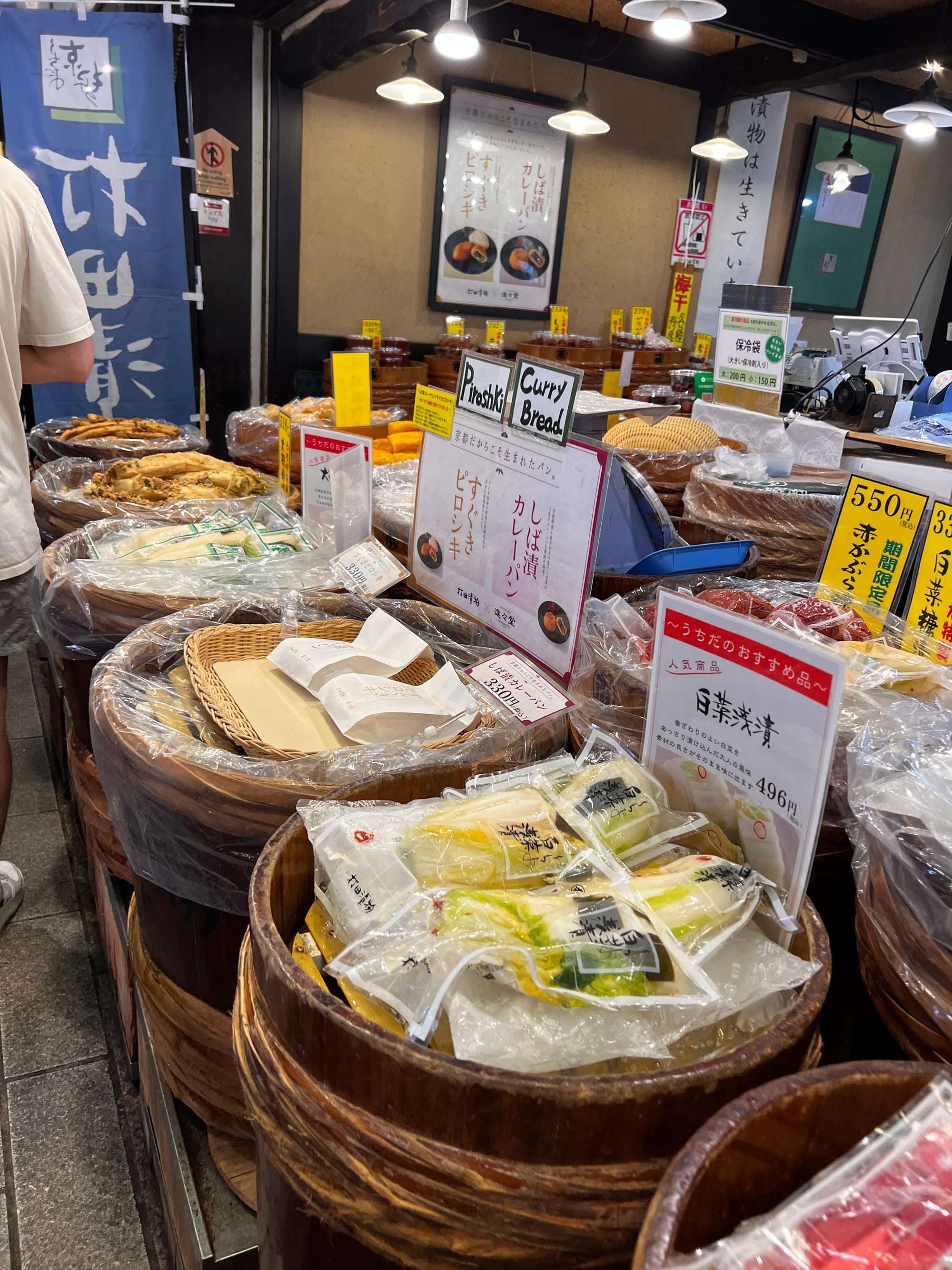 Z uwagi na pogorszenie się pogody i opady deszczu, musieliśmy nieco zmienić nasze plany i pomysleć o jakiejś atrakcji pod dachem. Nie ma ich jednak wiele na naszej liście w Kioto, toteż udaliśmy się do Nishiki Market, słynnego ponad 400-letniego japońskiego targu, na którym można zakupić wiele artykułów spożywczych, a także tradycyjne japońskie potrawy i pamiątki. Niestety na pomysł, aby właśnie tam schować się przed deszczem, wpadło wiele osób, co spowodowało, że zrobił się ogromny tłok, odbierający temu miejscu uroku. Udało nam się jednak skosztować kurczaka i batatów w tempurze oraz słynnej wołowiny kobe, która dosłownie rozpływa się w ustach, nie dziwi więc, że jest określana najlepszą wołowiną na świecie.