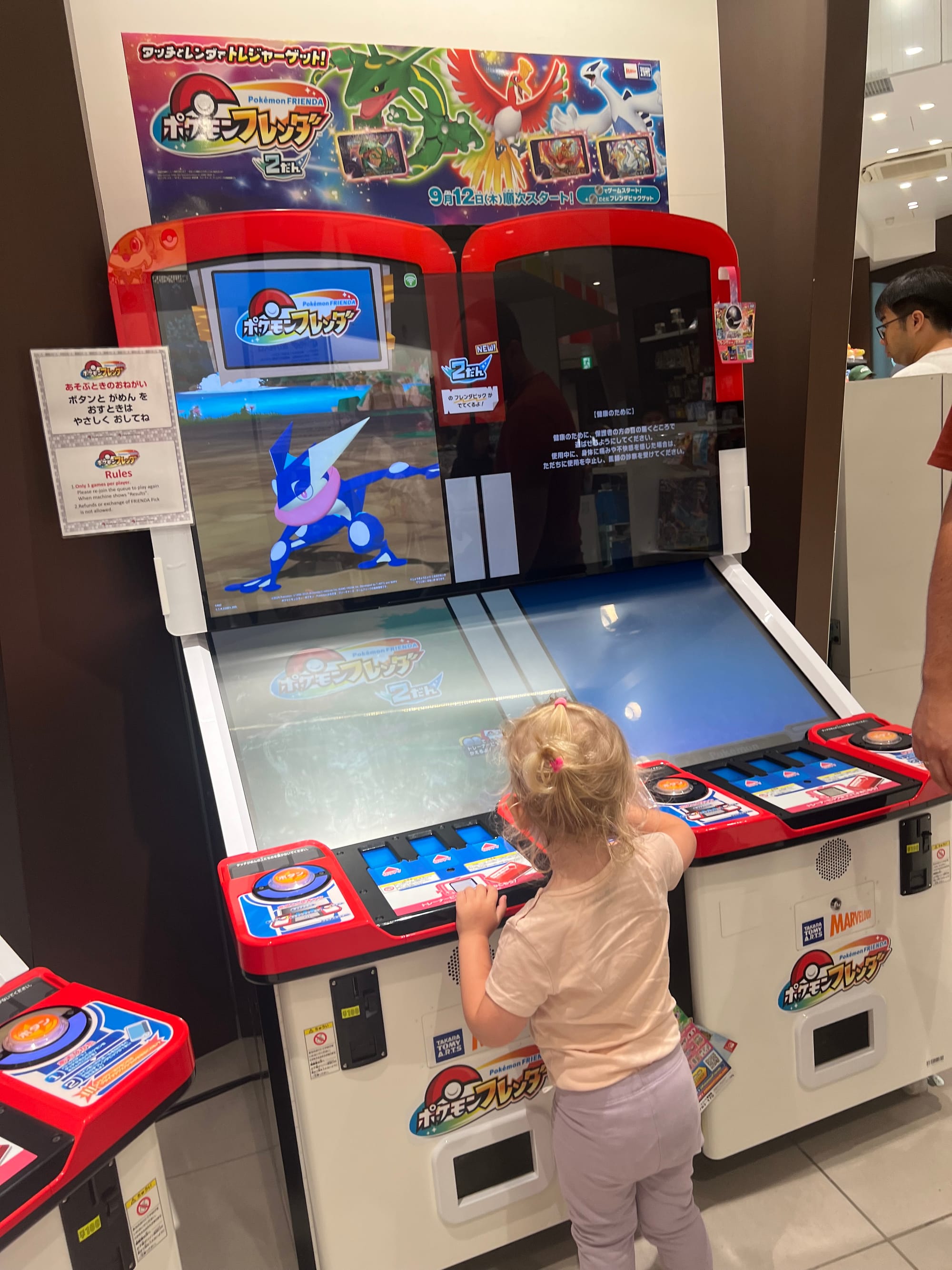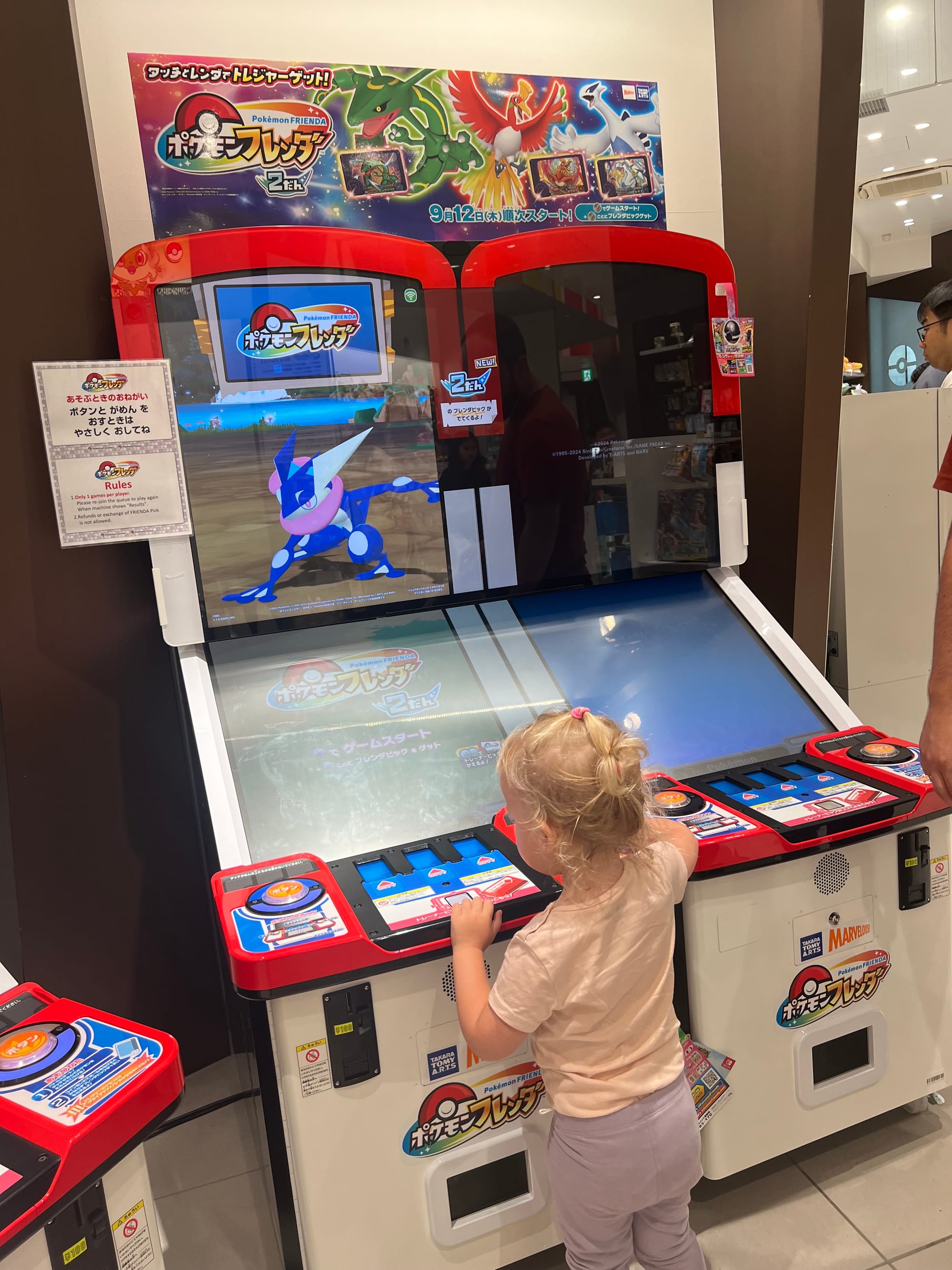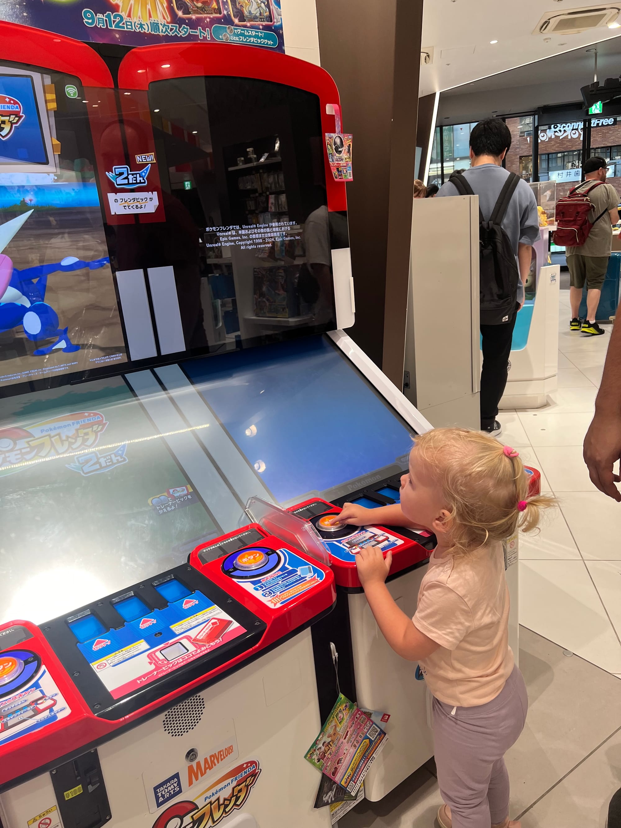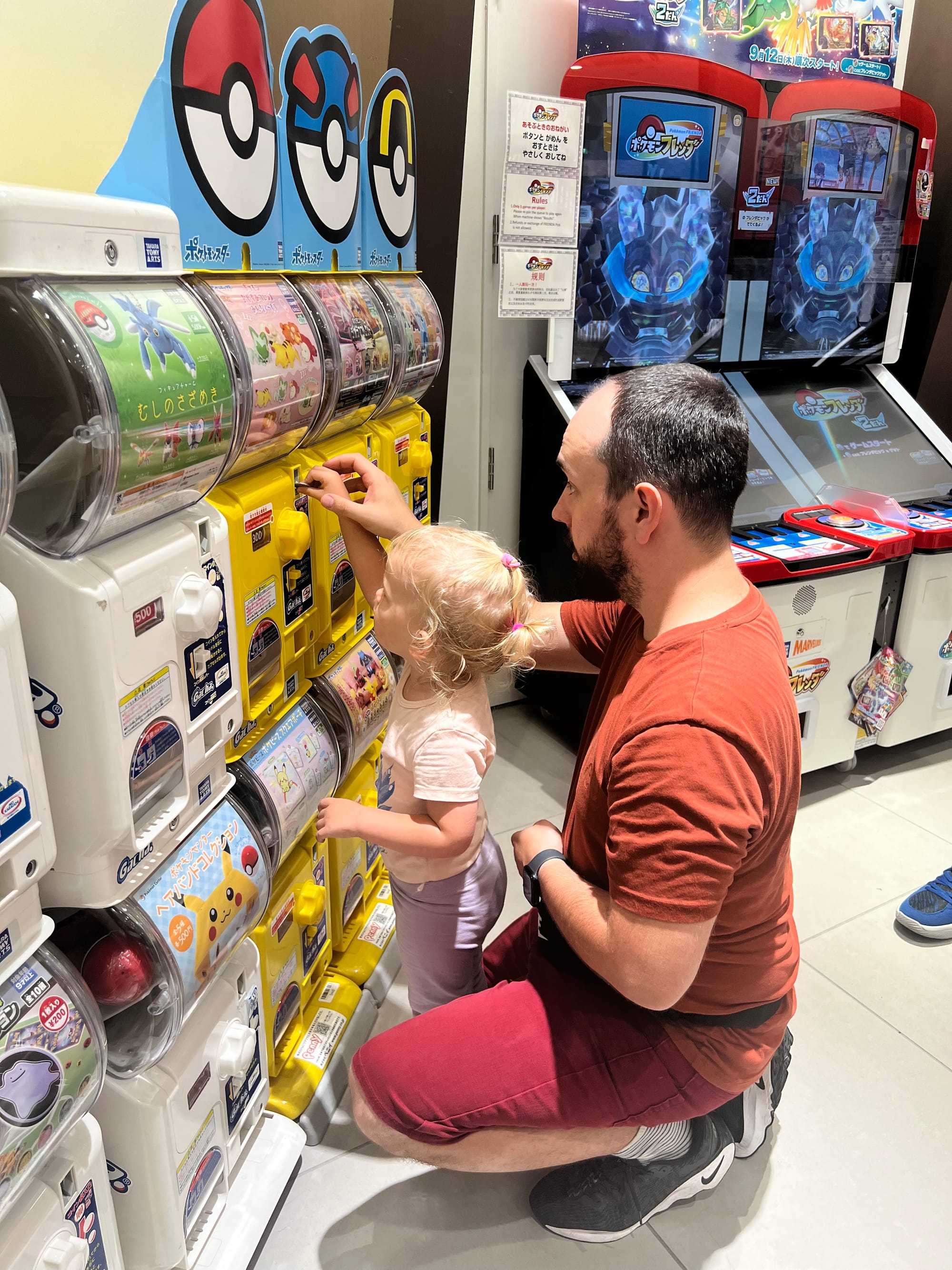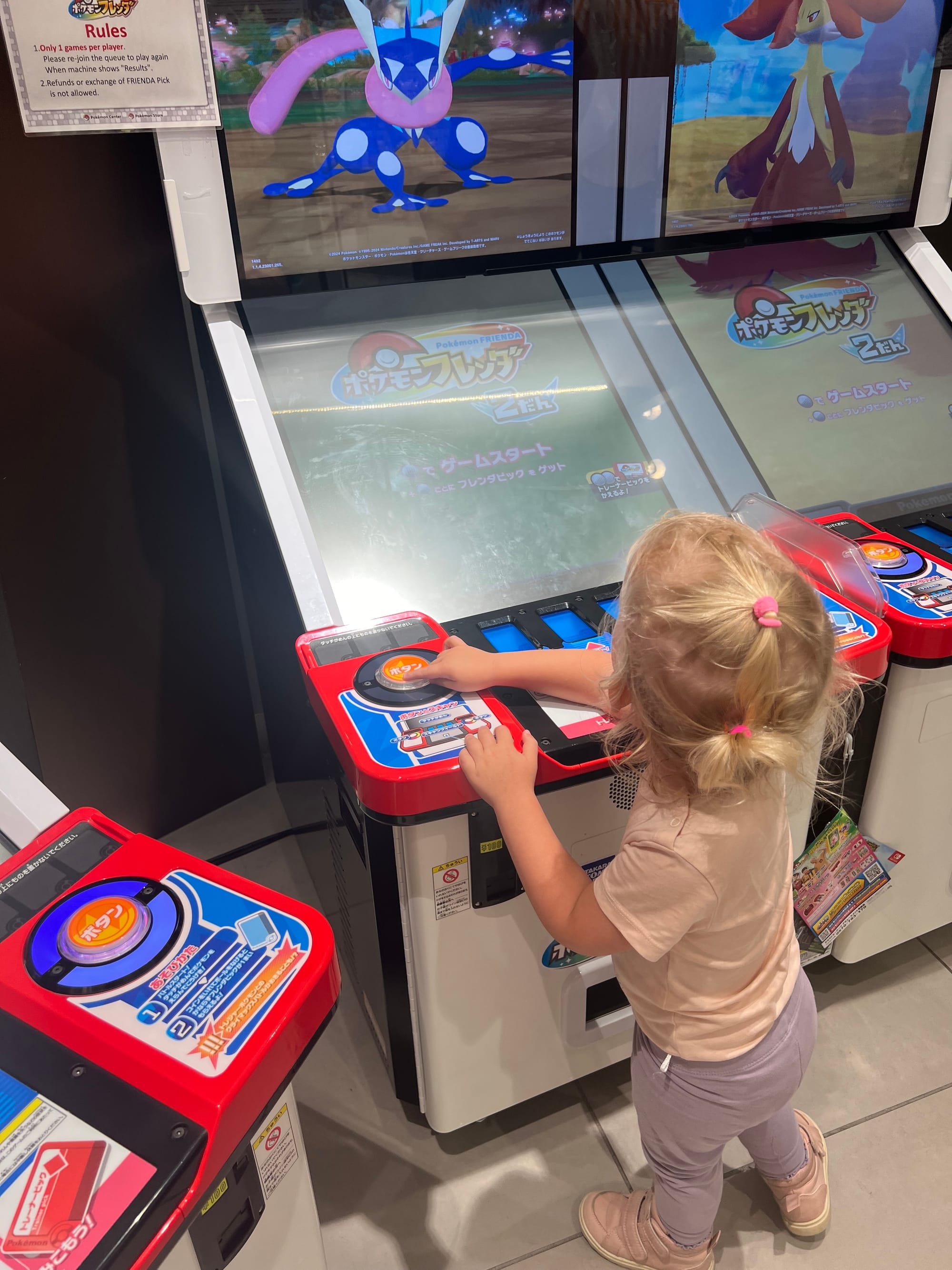 Kolejną atrakcją „pod dachem” na liście było Pokémon Center. I choć ja nigdy fanką Pokemonów nie byłam i średnia to była dla mnie atrakcja, to muszę przyznać, że moi towarzysze podróży bawili się tam przednio i zrobili konkretne zakupy. Nie obyło się oczywiście bez zakupów kulek z automatów, a Tosi wydawało się też, że gra w Pokemony i jakoś tak nie wyprowadzaliśmy jej z błędu, bo dobrze się przy tym bawiła.