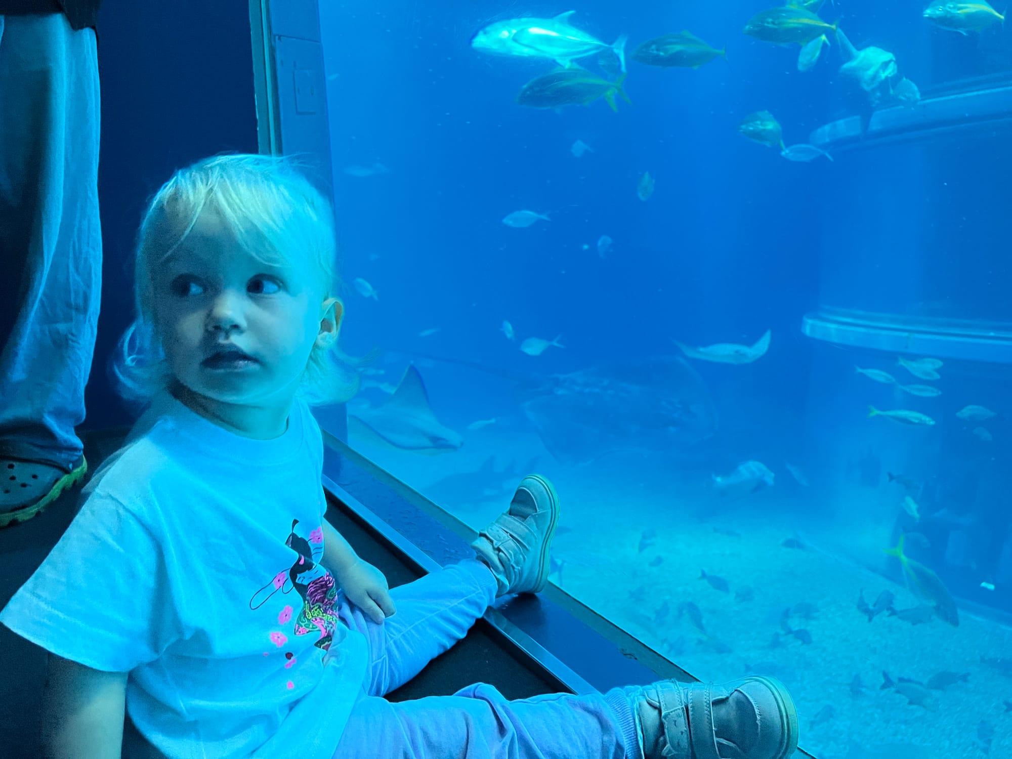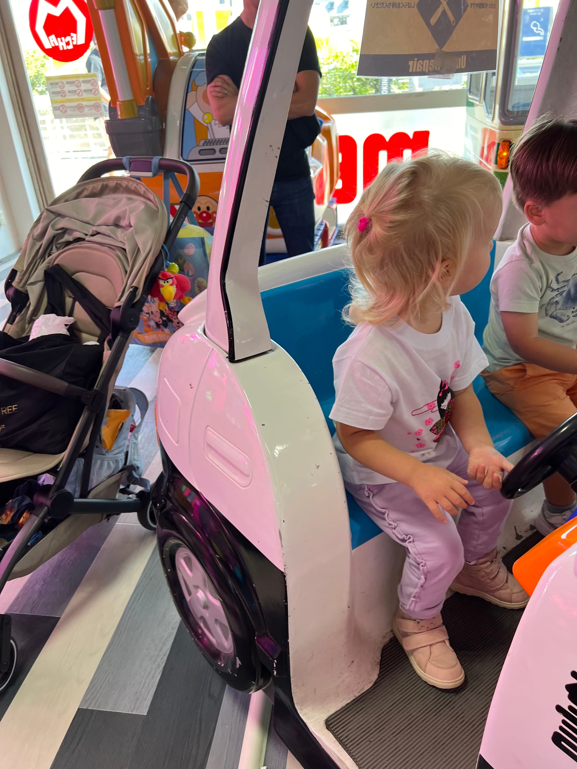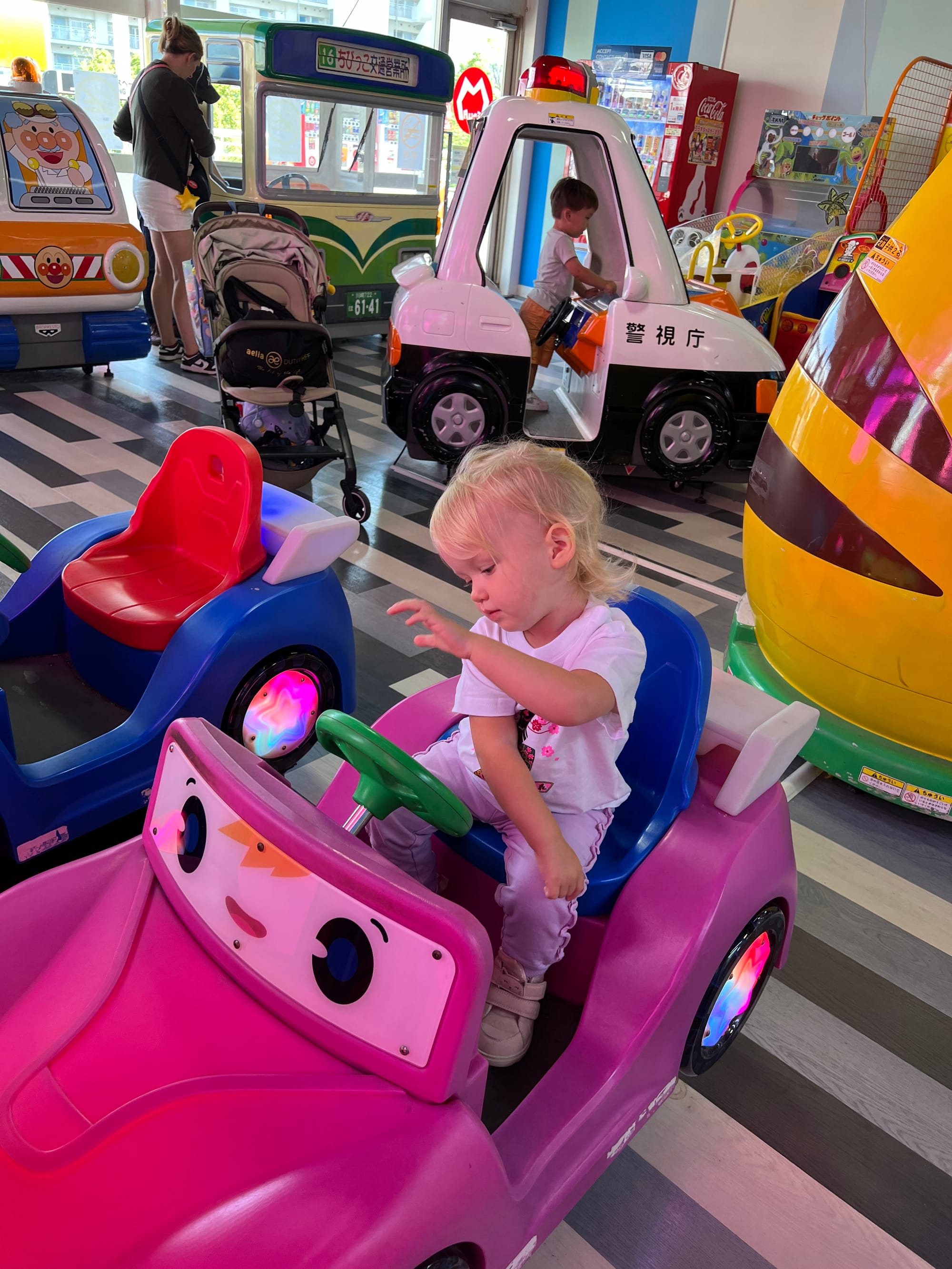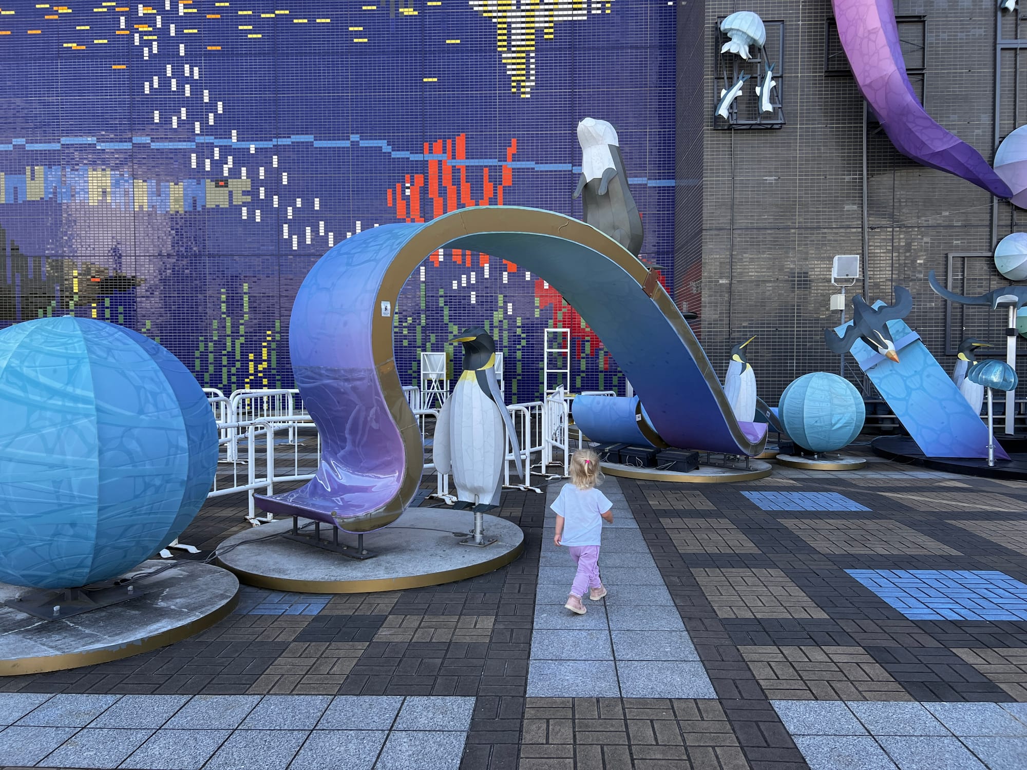 Zakupiliśmy bilety do akwarium, które w momencie budowy było największym tego typu obiektem na świecie, ale do godziny wejścia mieliśmy jeszcze trochę czasu, więc udaliśmy się do pobliskiego centrum handlowego. Wewnątrz znajdował się lokal z automatami i moi towarzysze przepadli. Adrianuś wydał niemałą sumkę na bezskuteczne próby wyciągnięcia z automatu maskotki Yoshi, Tosia z kolei wsiadała we wszystkie automaty do gier, które miały kierownicę, krzycząc „brum, brum”.