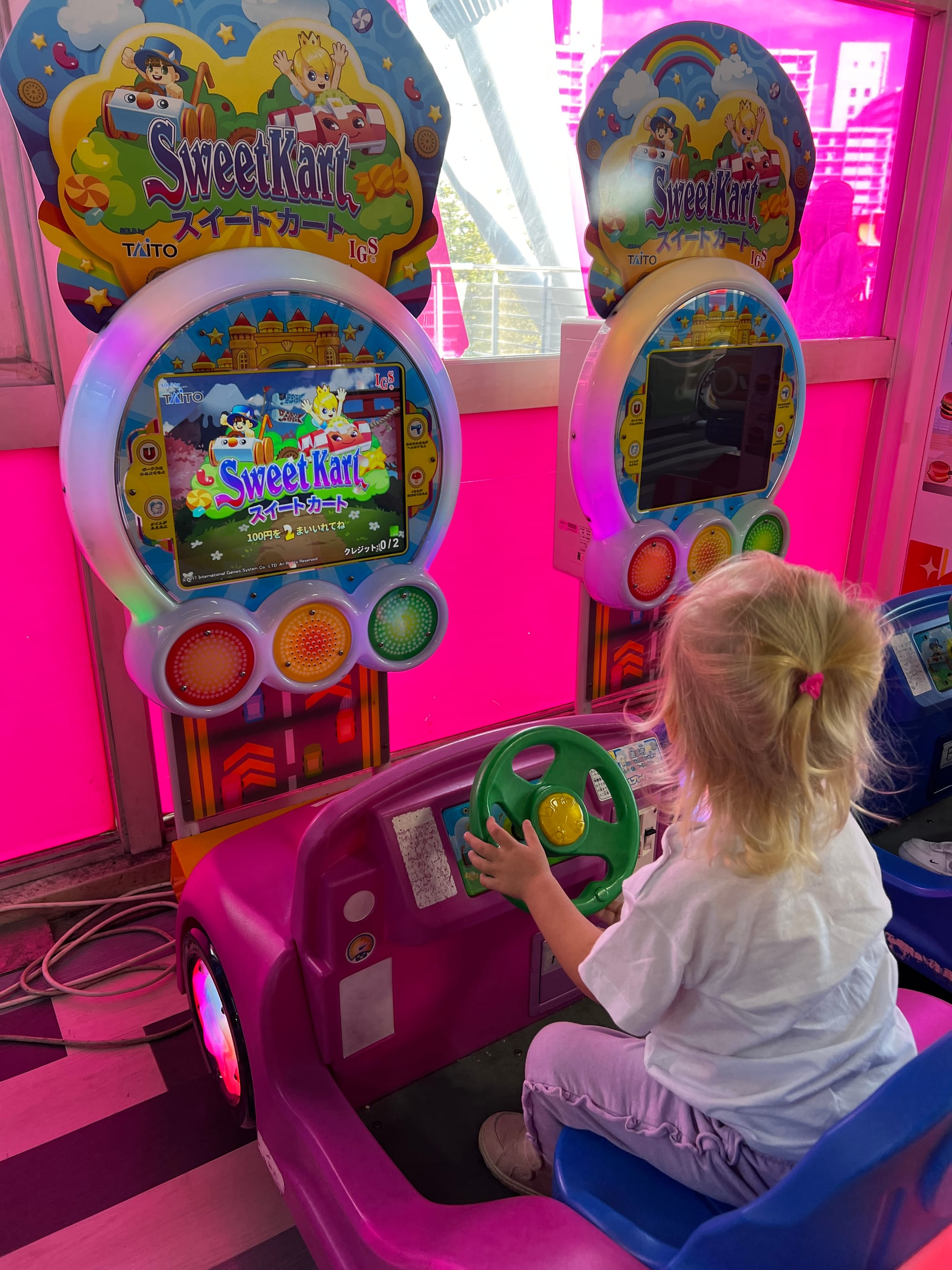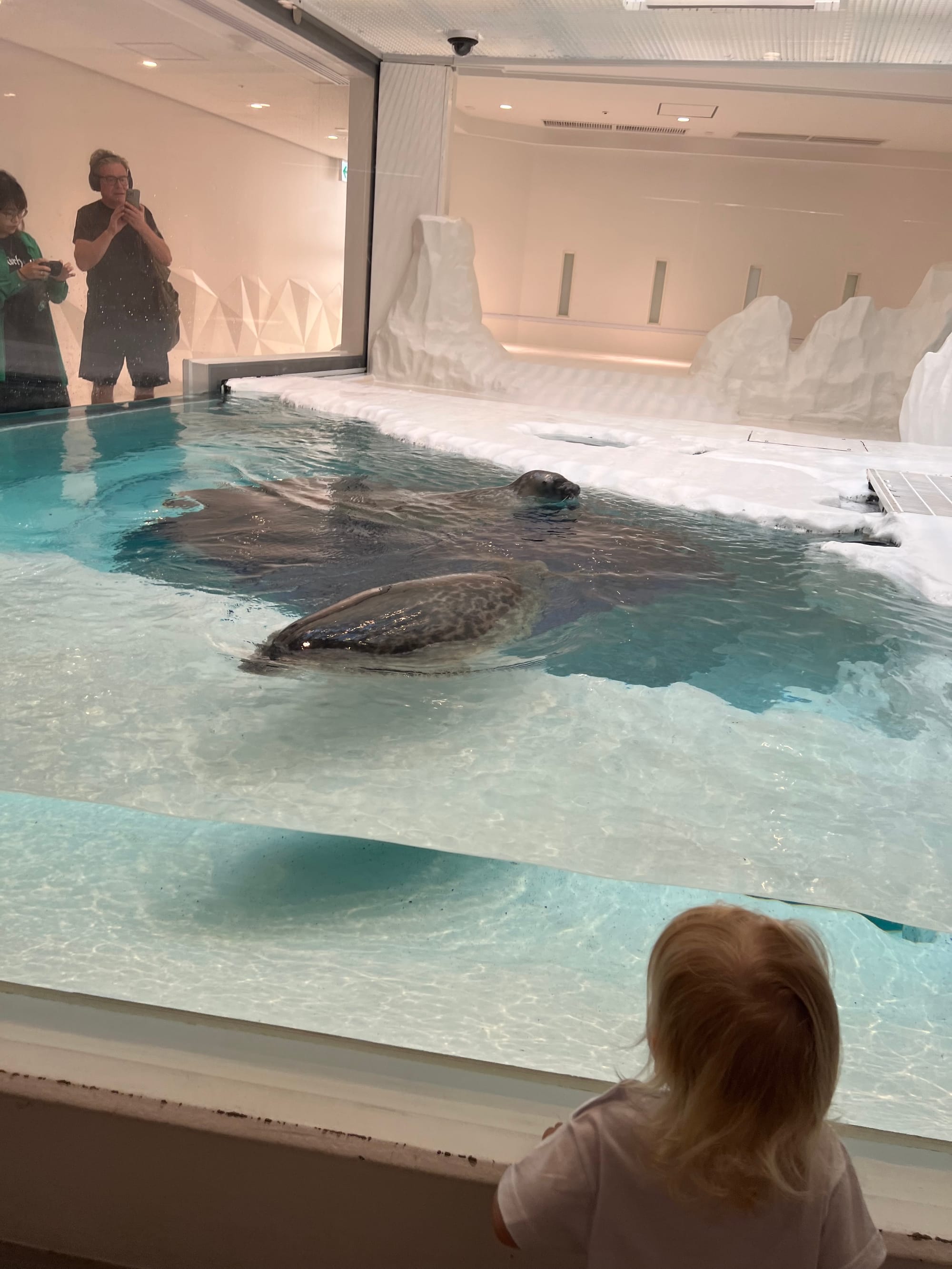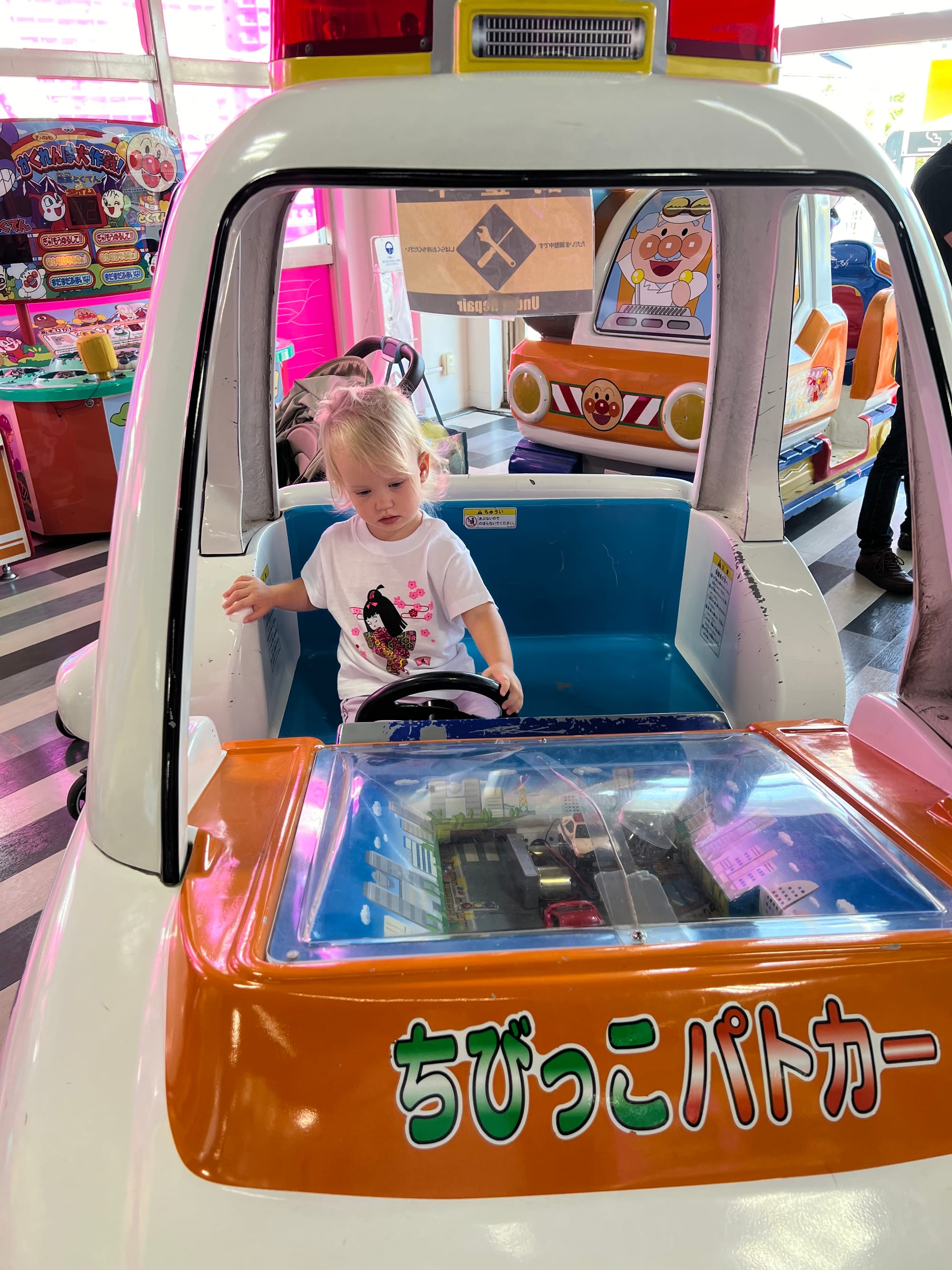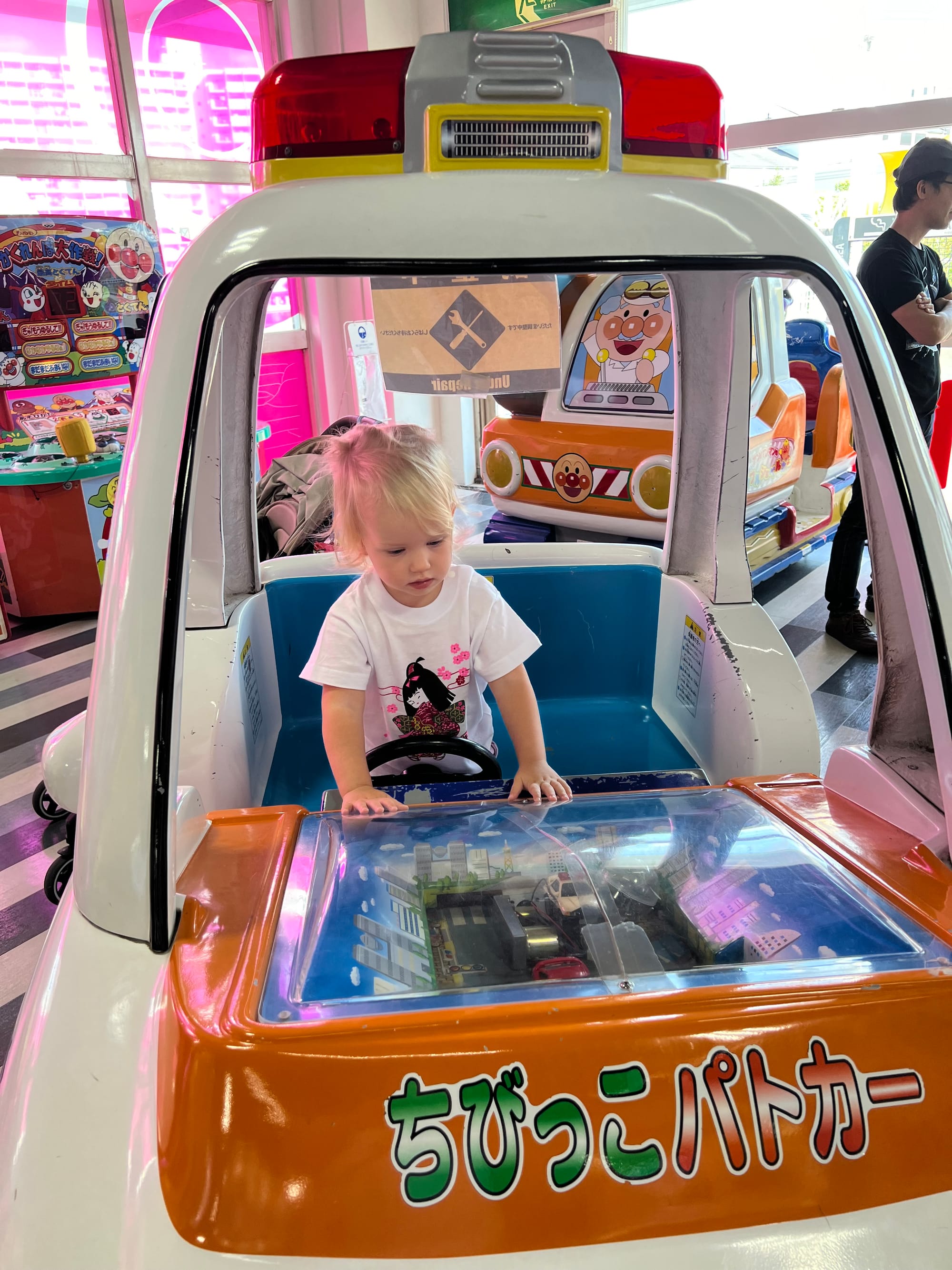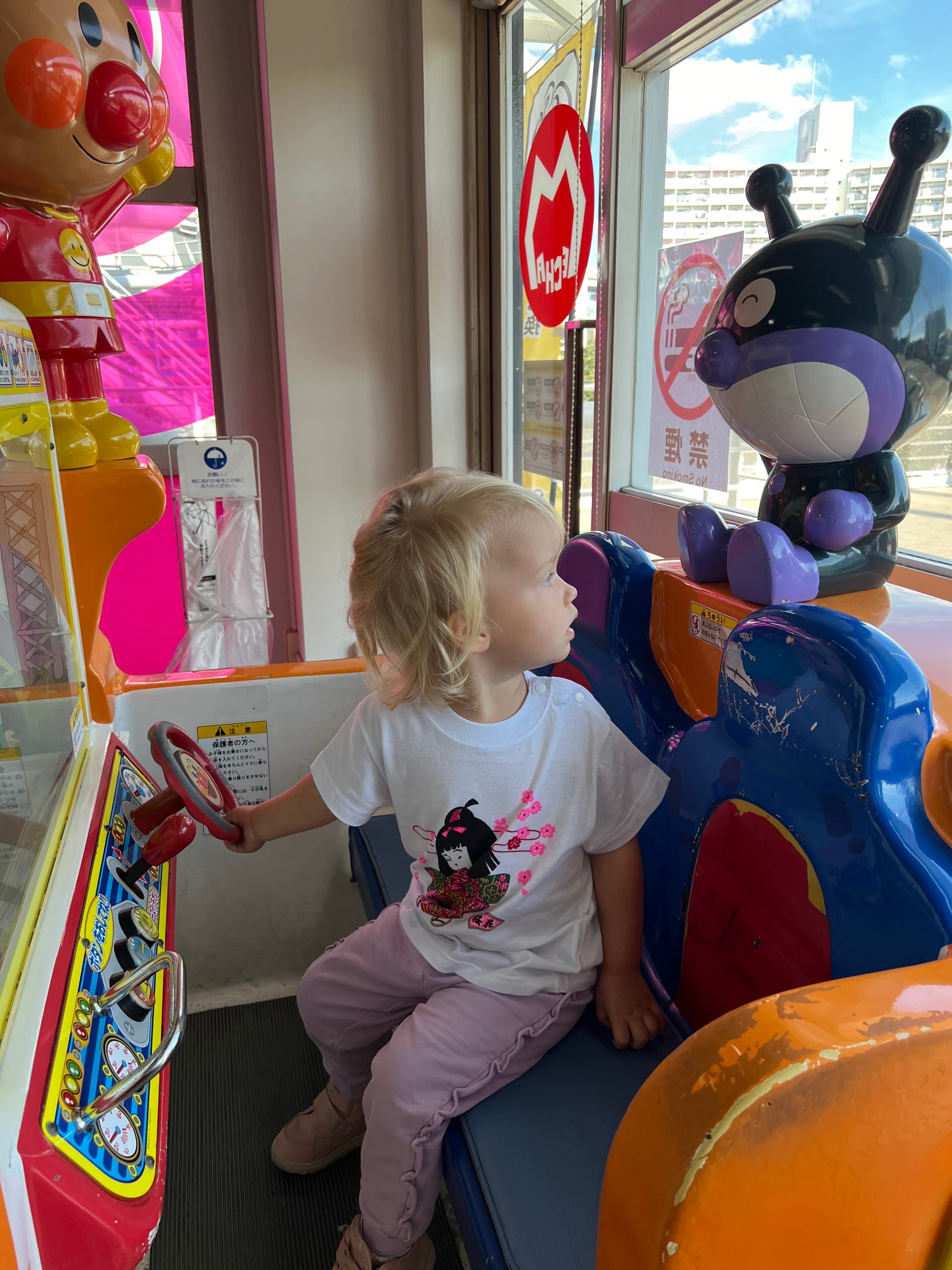 Zakupiliśmy bilety do akwarium, które w momencie budowy było największym tego typu obiektem na świecie, ale do godziny wejścia mieliśmy jeszcze trochę czasu, więc udaliśmy się do pobliskiego centrum handlowego. Wewnątrz znajdował się lokal z automatami i moi towarzysze przepadli. Adrianuś wydał niemałą sumkę na bezskuteczne próby wyciągnięcia z automatu maskotki Yoshi, Tosia z kolei wsiadała we wszystkie automaty do gier, które miały kierownicę, krzycząc „brum, brum”.