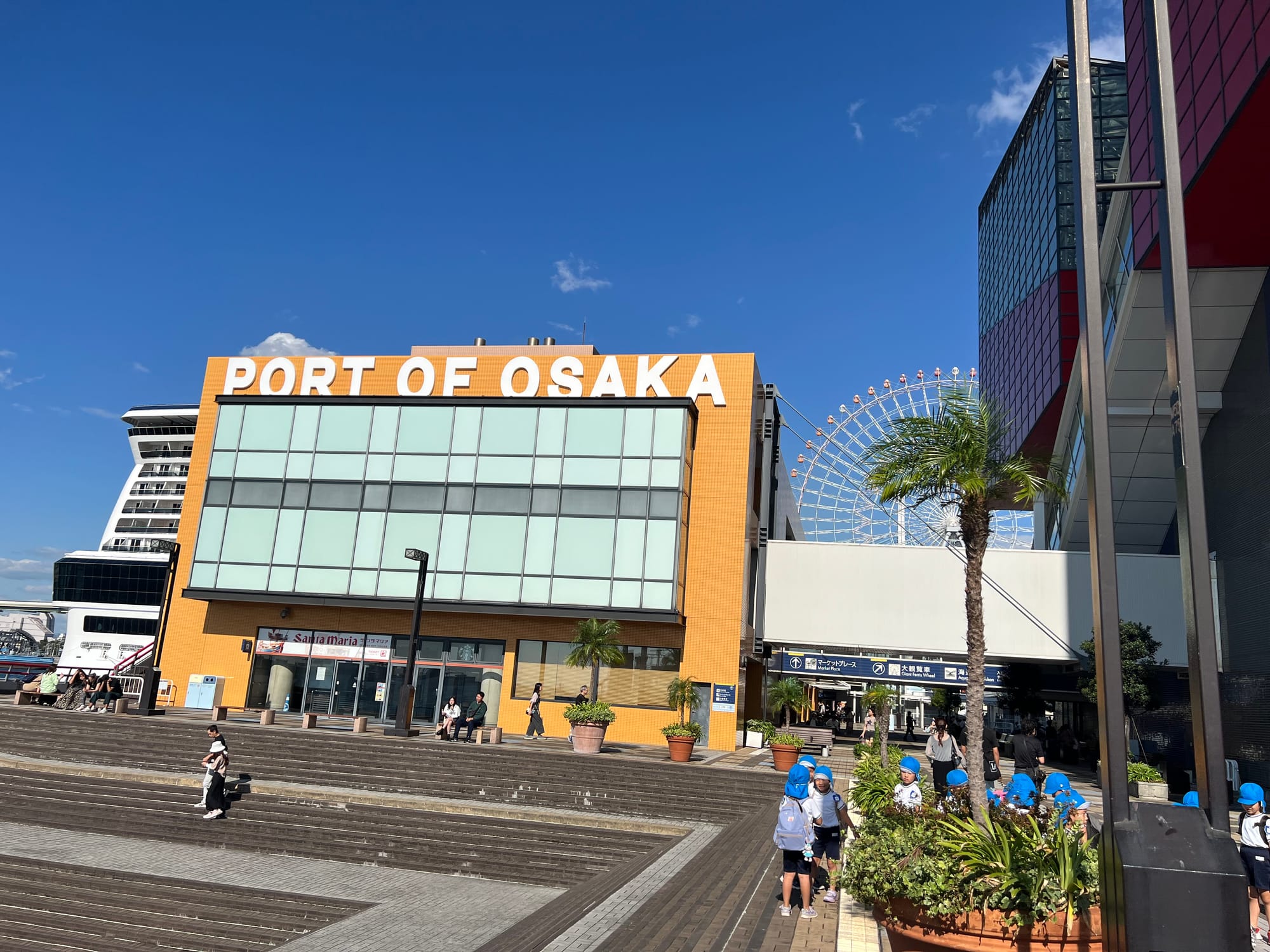 Dotarliśmy do hotelu na kilka godzin przed rozpoczęciem doby hotelowej, więc zostawiliśmy tylko bagaże i udaliśmy się metrem w stronę portu Osaka. Naszym głównym celem było Osaka Aquarium Kaiyukan, jednak cała okolica zrobiła na nas bardzo pozytywne wrażenie. Trochę pewnie dlatego, że skojarzyła nam się z naszą Gdynią.