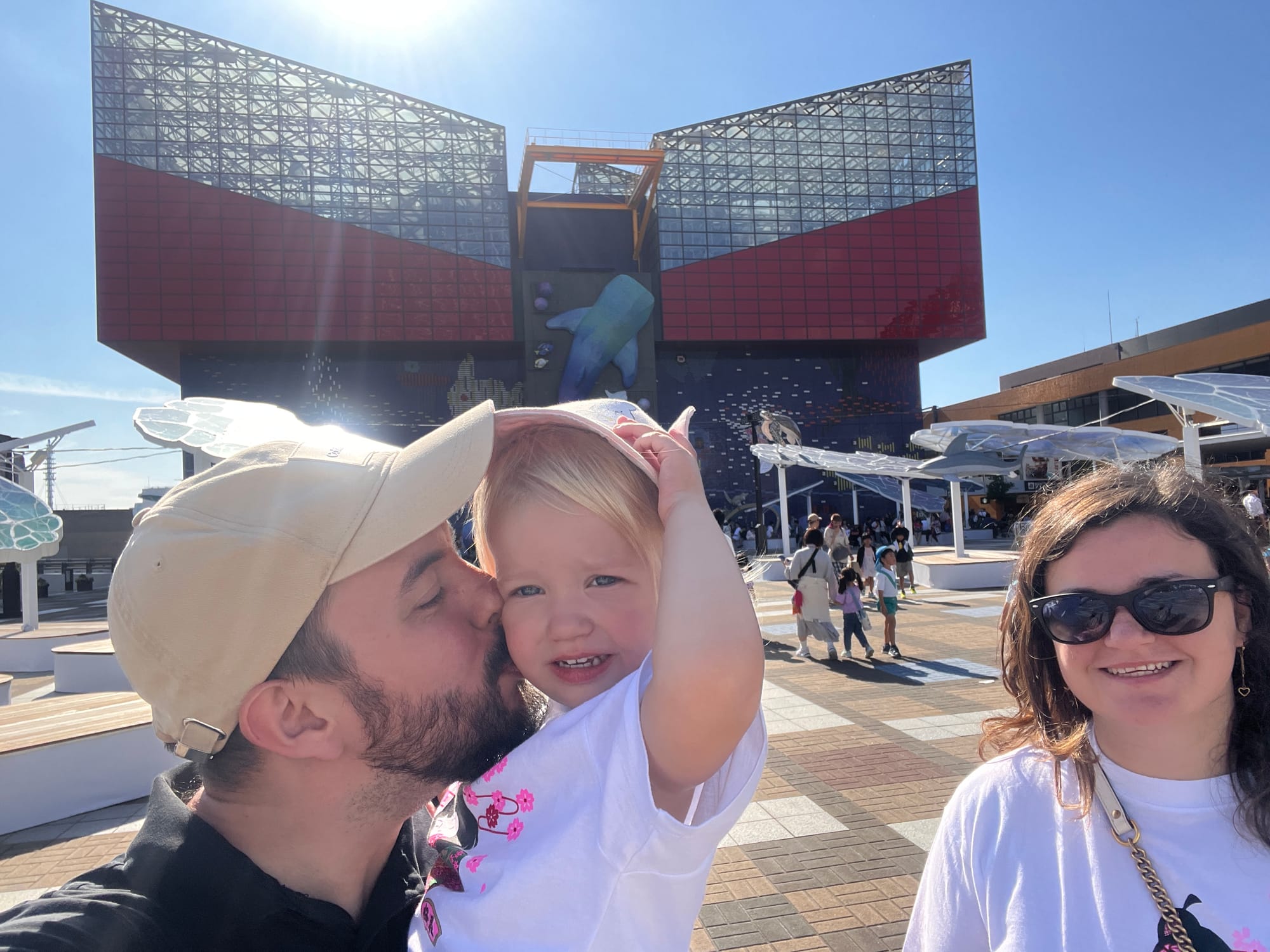 Następnie mała sesja zdjęciowa przed Akwarium (tak! wskoczyłyśmy dzisiaj z Tosieńką w takie same koszulki, które wczoraj zakupiliśmy w Narze).