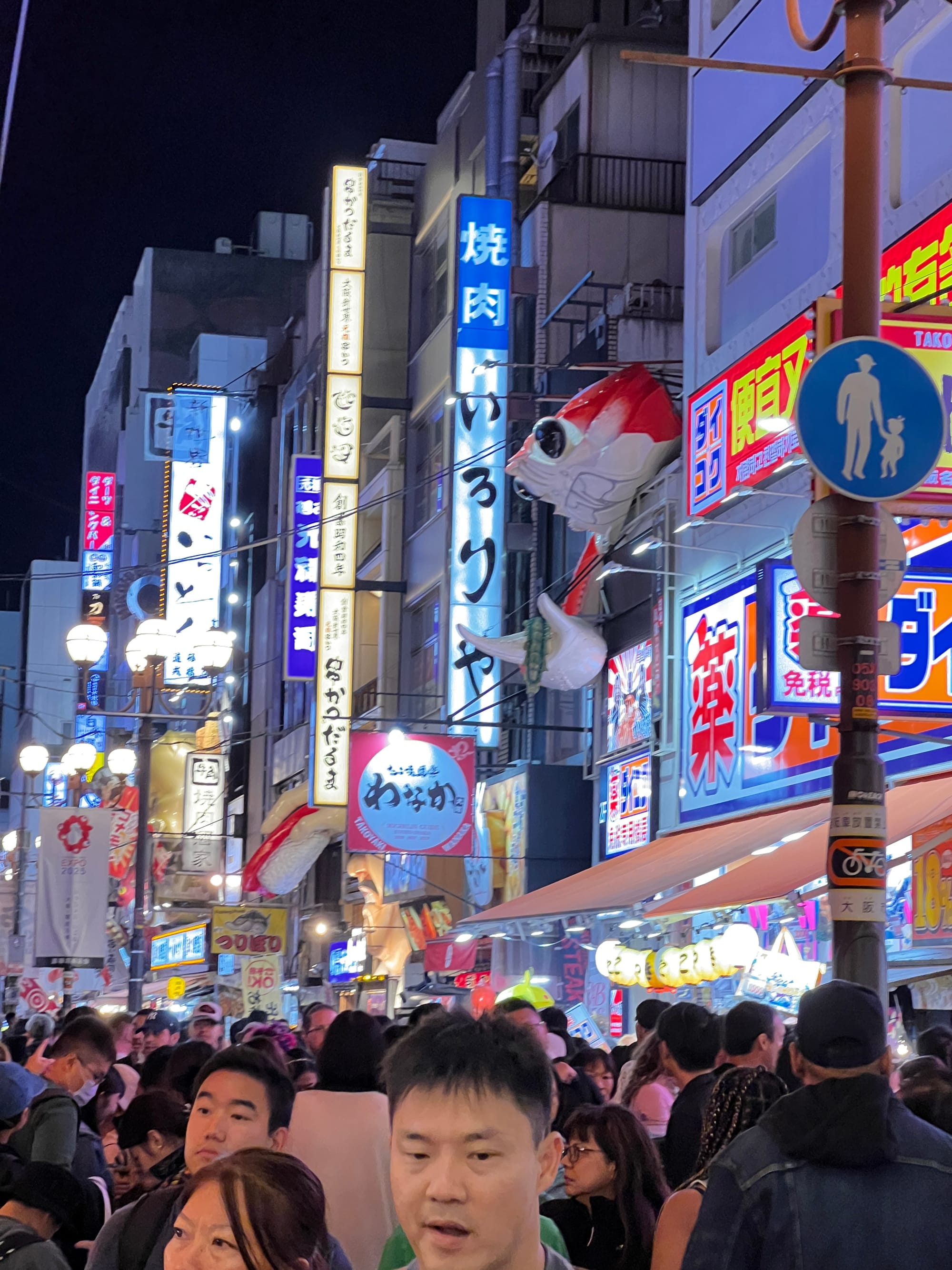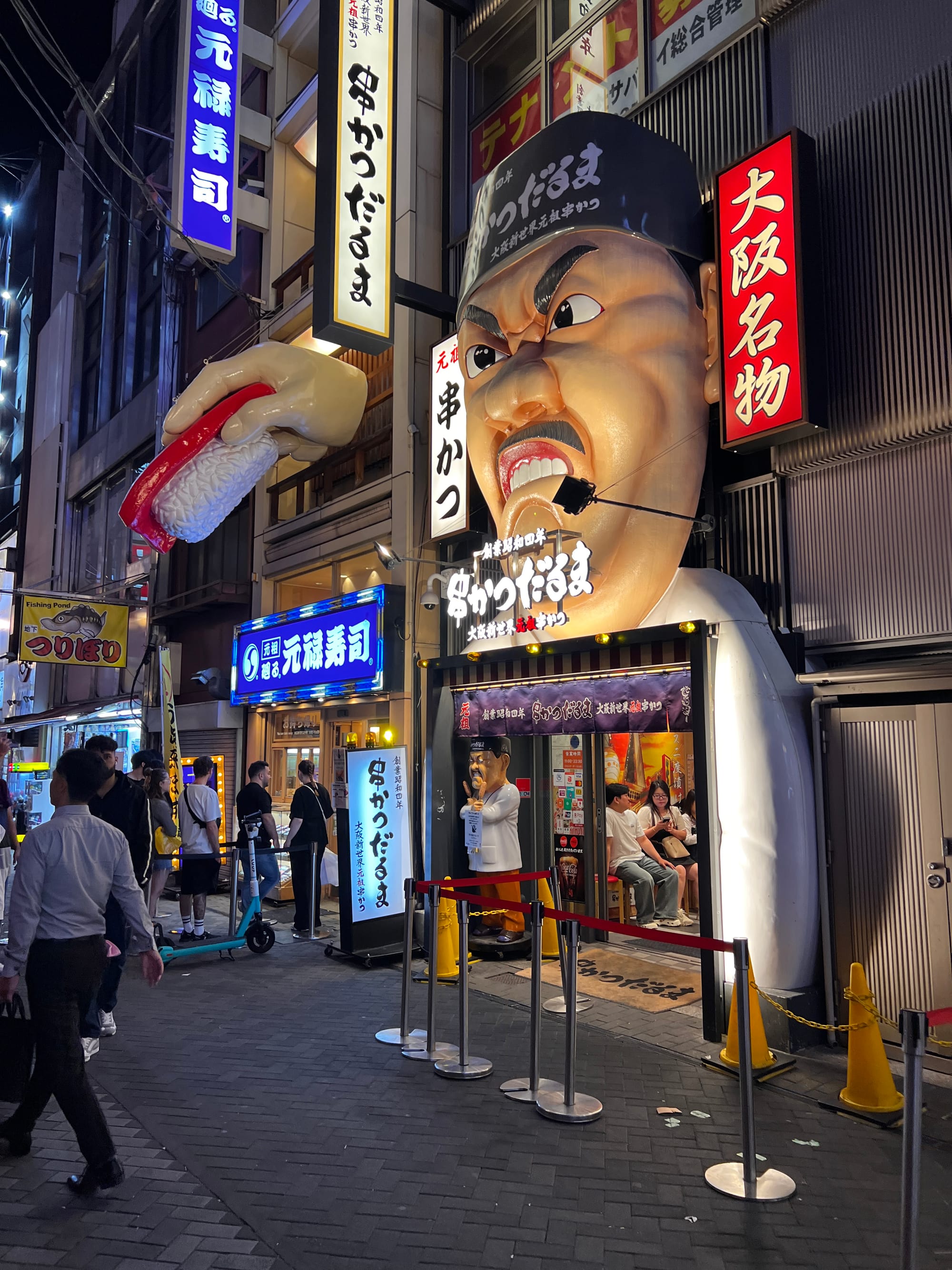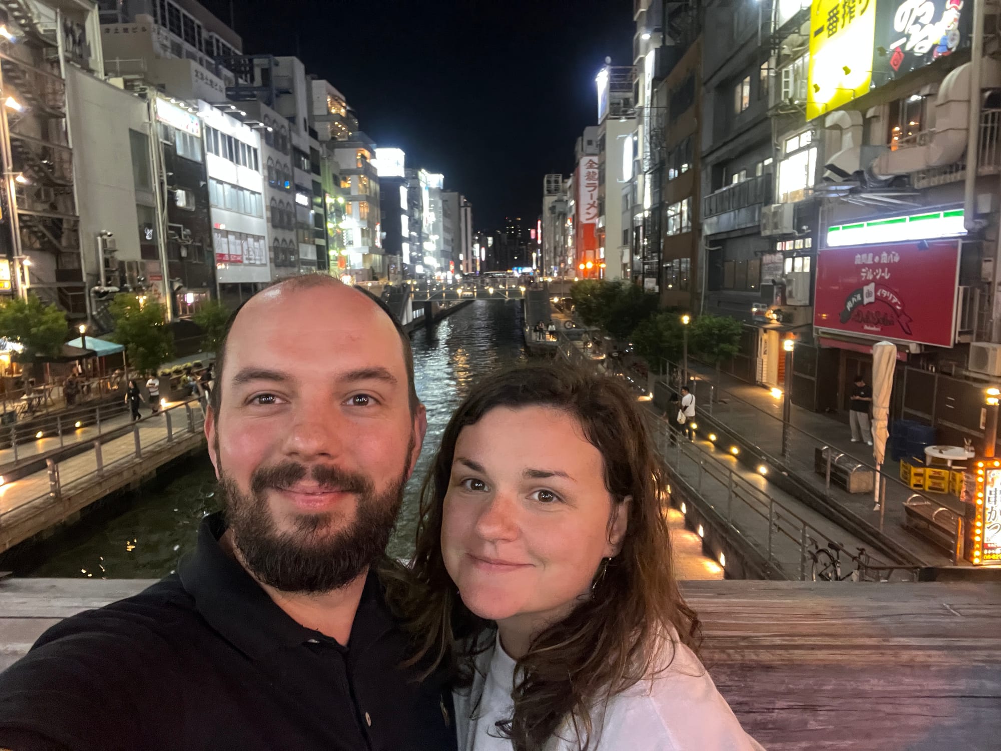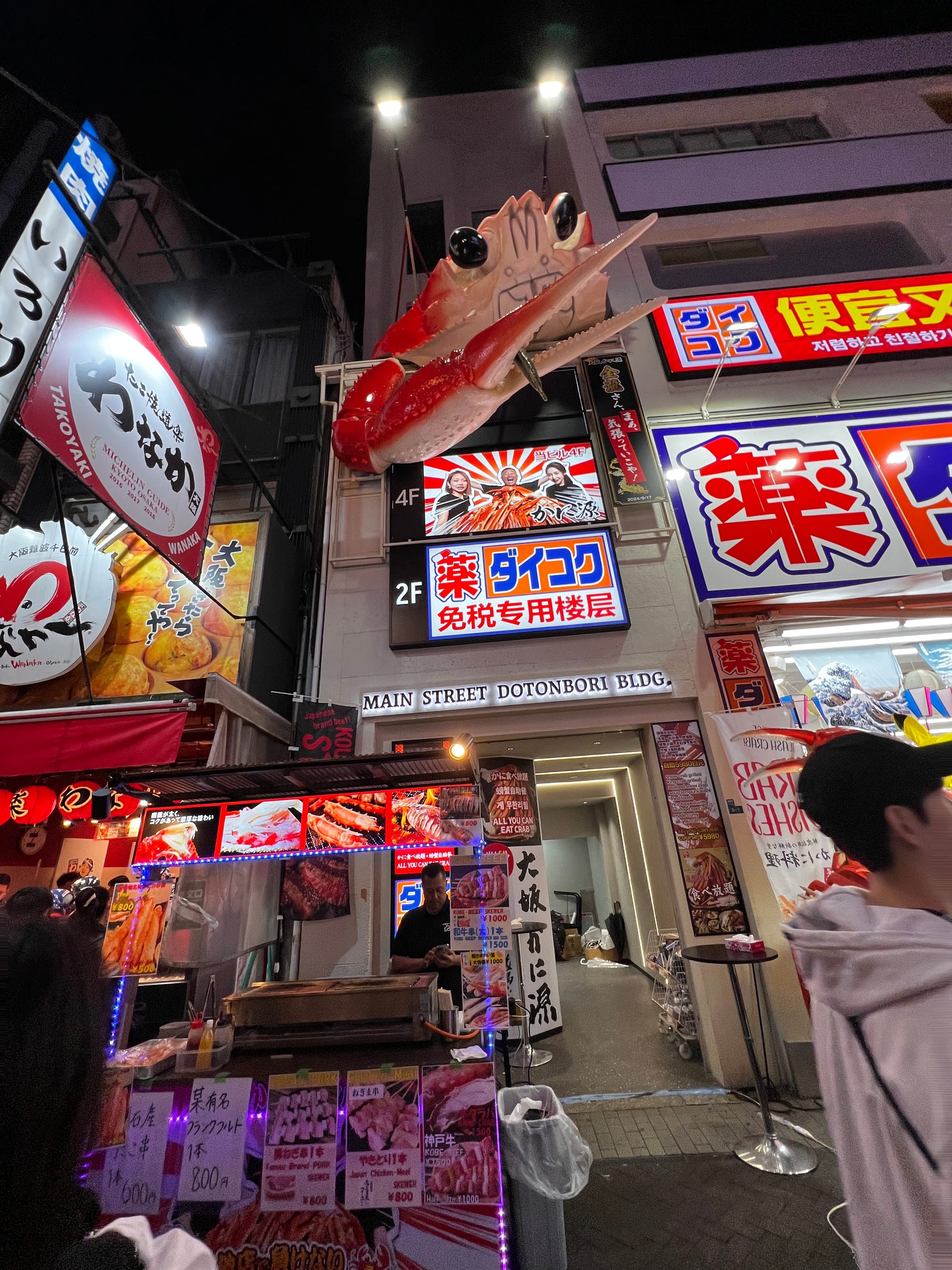 Po wizycie w Akwarium, udaliśmy się do hotelu, a następnie wyruszyliśmy do Dontobori. Jest to obszar Osaki, który słynie z neonów, sklepów, klubów i restauracji serwujących miejscowe przysmaki. Miejsce to jest kiczowate, jednak ma swój niepowtarzalny klimat, a dodatkowego uroku dodaje mu usytuowanie nad rzeczką o takiej samej nazwie.