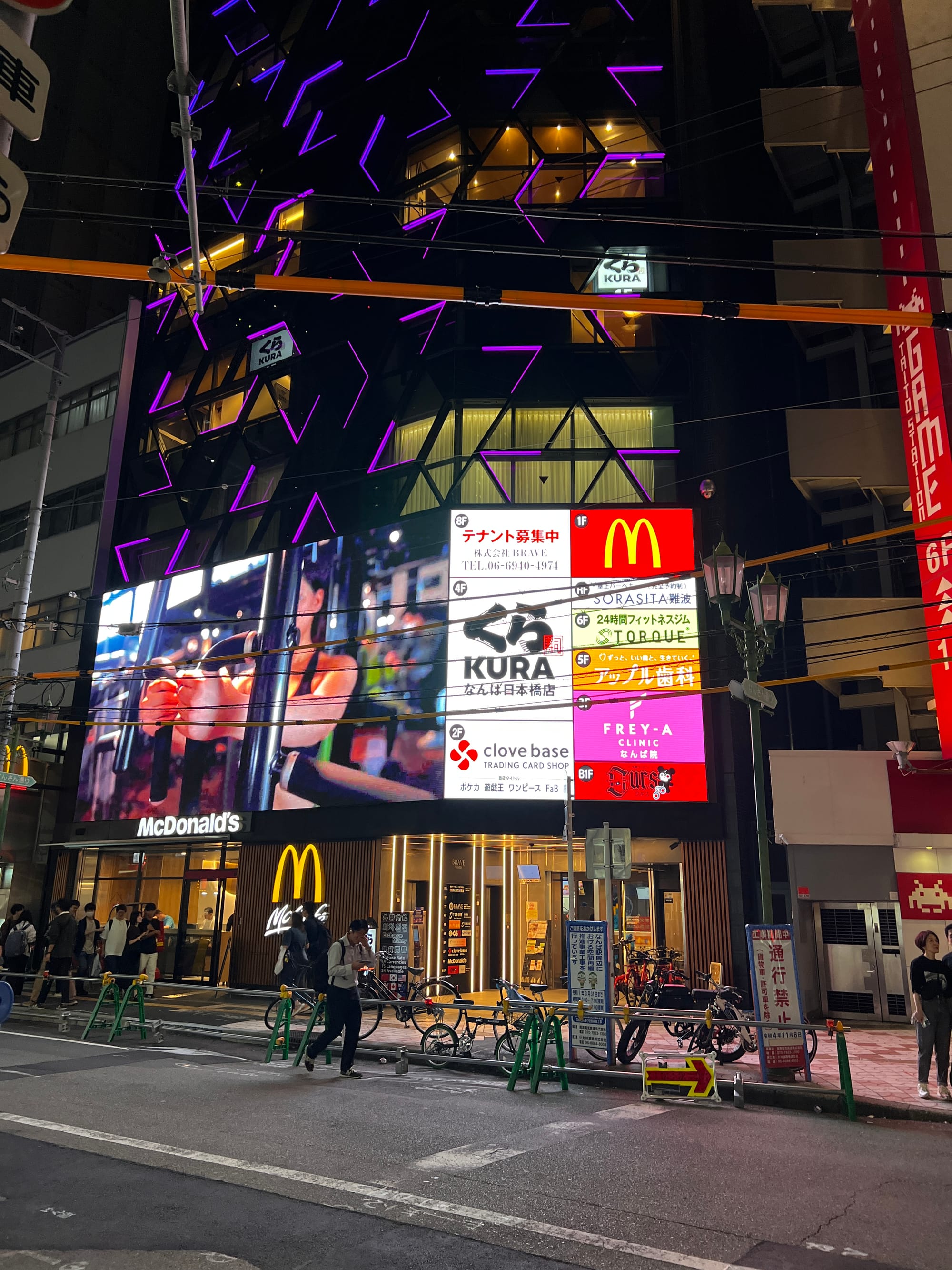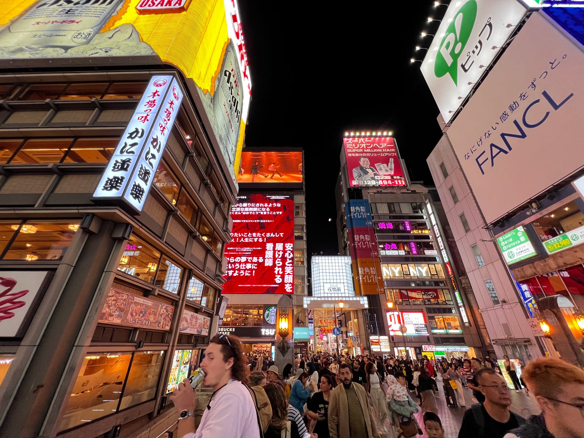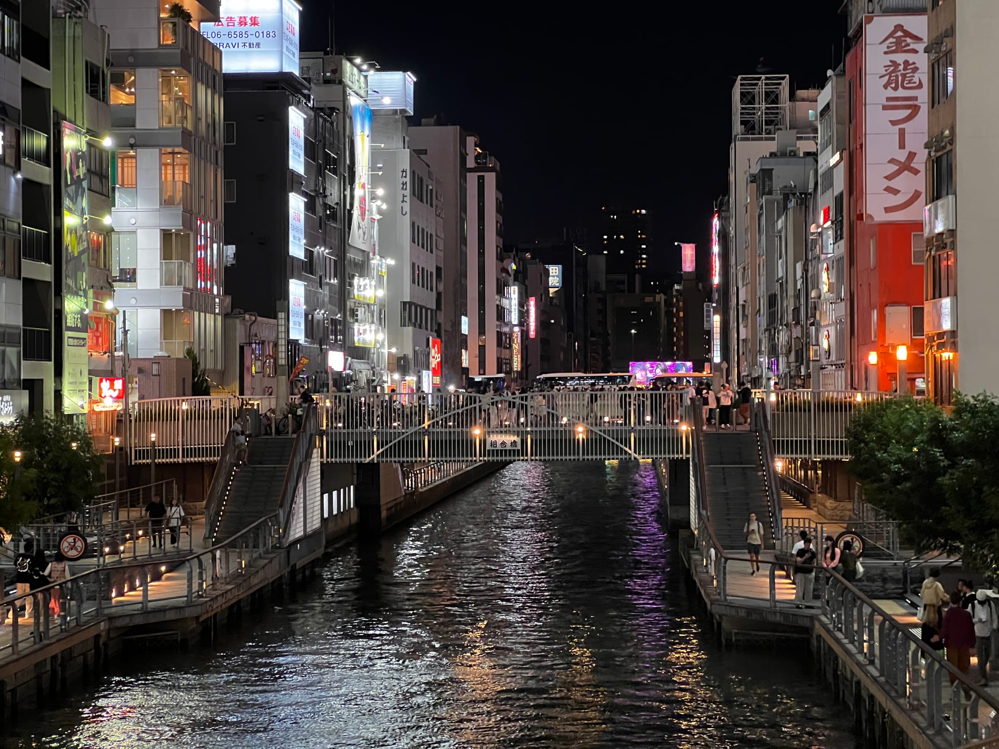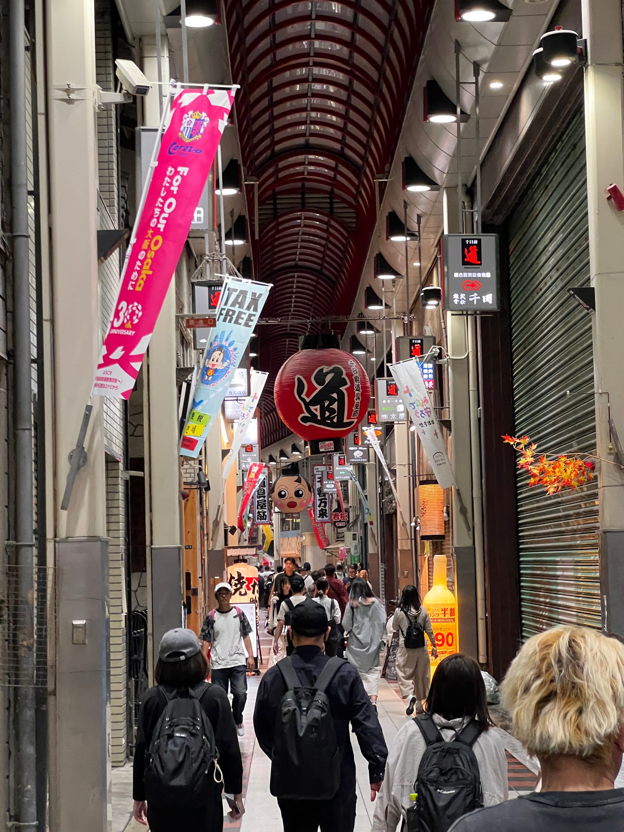Po wizycie w Akwarium, udaliśmy się do hotelu, a następnie wyruszyliśmy do Dontobori. Jest to obszar Osaki, który słynie z neonów, sklepów, klubów i restauracji serwujących miejscowe przysmaki. Miejsce to jest kiczowate, jednak ma swój niepowtarzalny klimat, a dodatkowego uroku dodaje mu usytuowanie nad rzeczką o takiej samej nazwie.