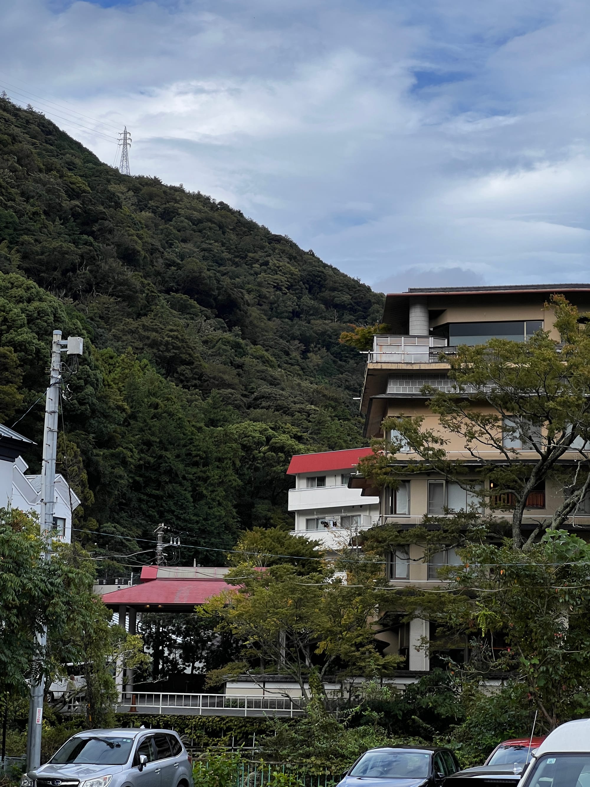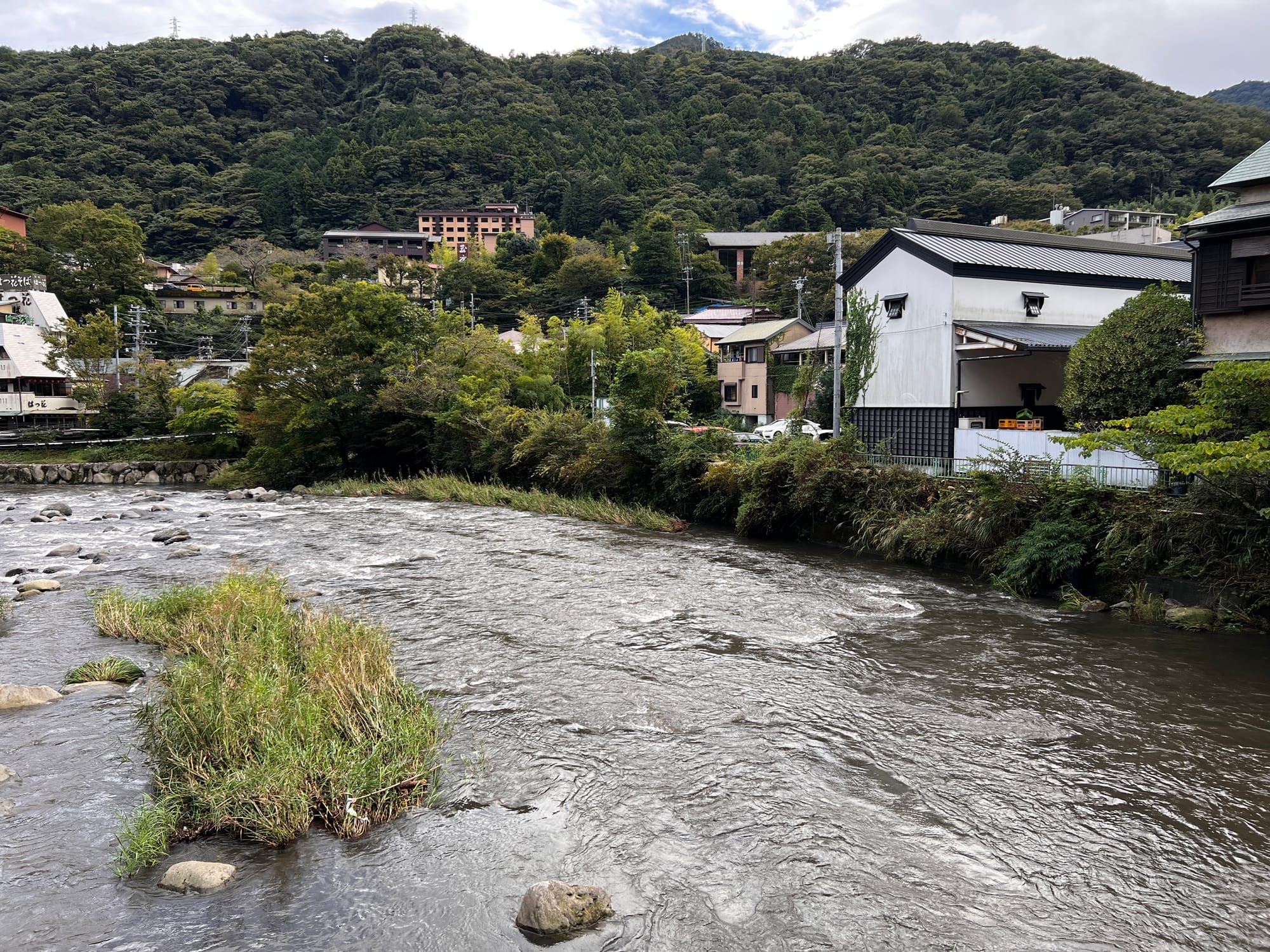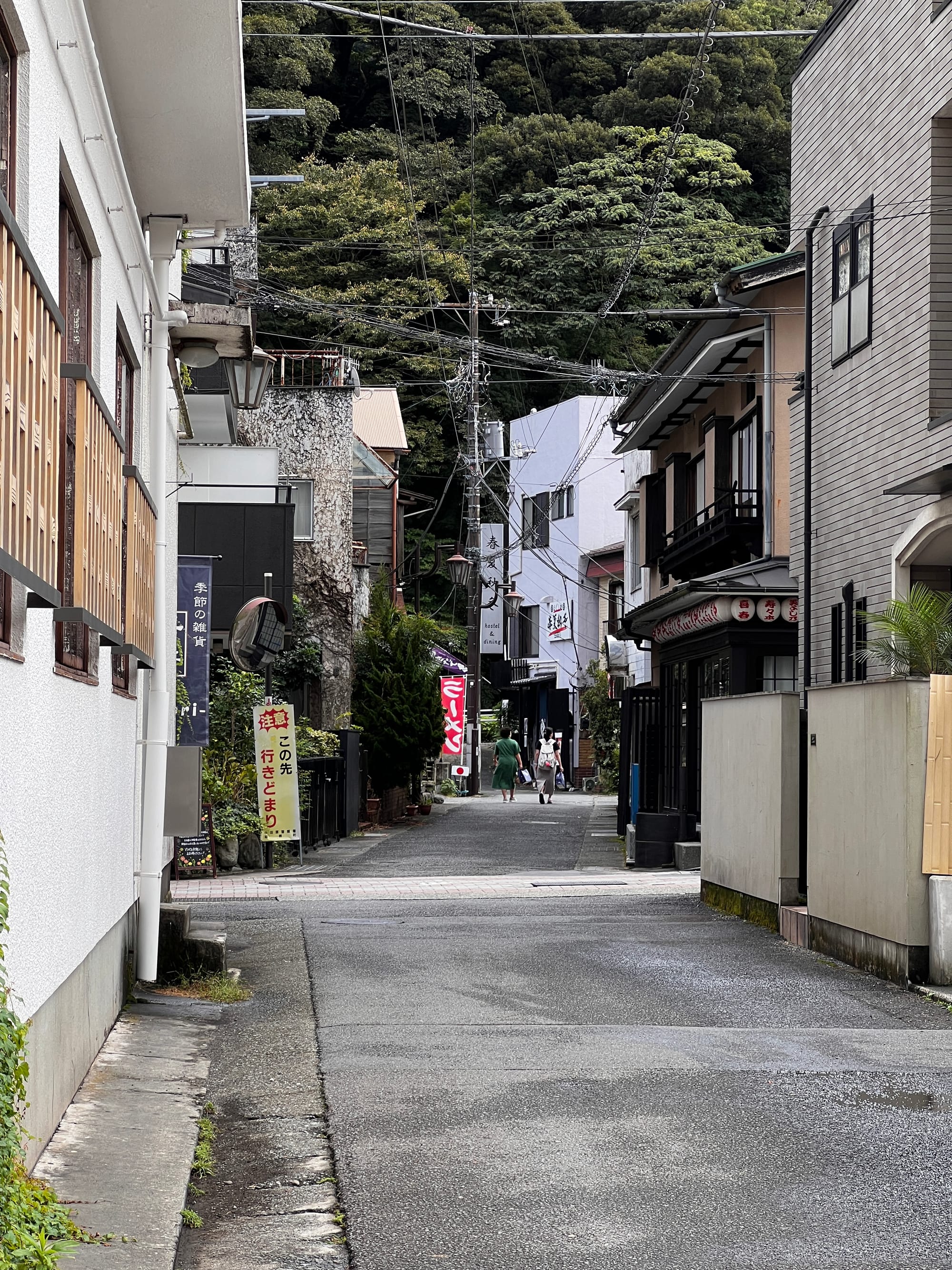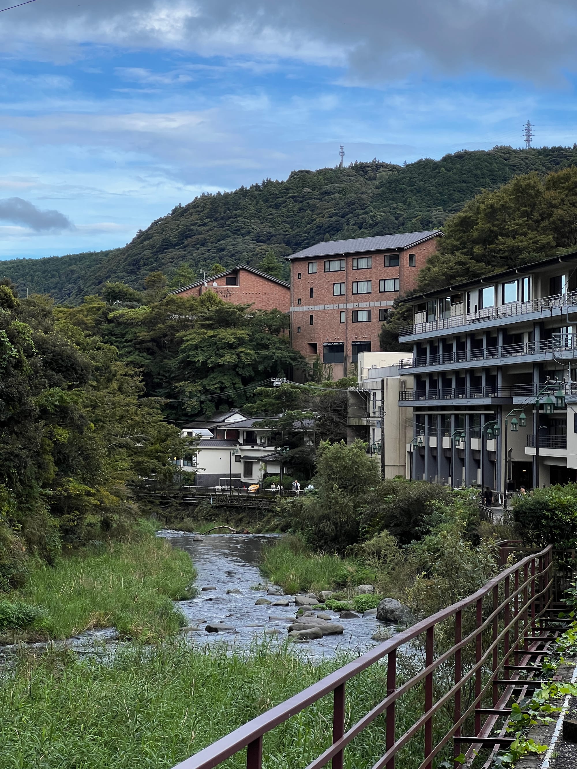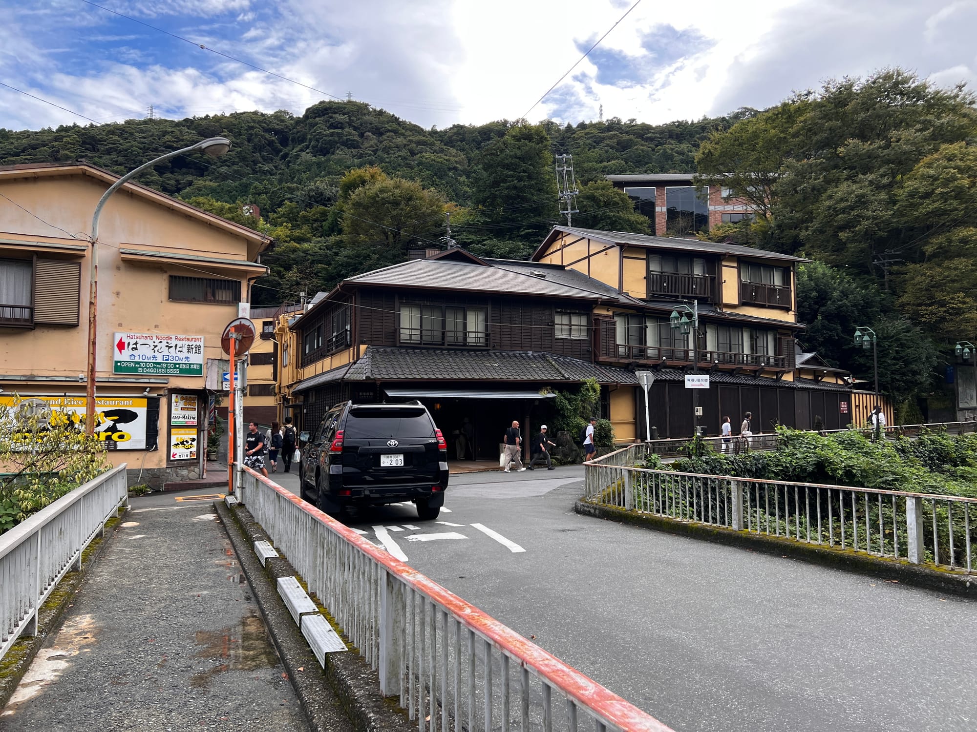 Do Hakone dotarliśmy nieco po godzinie 13, a doba hotelowa w naszym ryokanie zaczyna się o 15, więc zostawiliśmy jedynie bagaże i udaliśmy się na obiad i spacer po mieście. Pierwsze co nam się rzuciło w oczy to różnica między ogromnym, głośnym, neonowym i nieco przytłaczającym Tokio, a oddalonym od niego o zaledwie 80 kilometrów, spokojnym, zielonym, odprężającym, można wręcz rzec swojskim, Hakone. Kiedy tu dotarliśmy, Adrianuś stwierdził, że to jest właśnie ta Japonia, którą sobie wyobrażał i trzeba przyznać, że to miejsce ma swój urok.