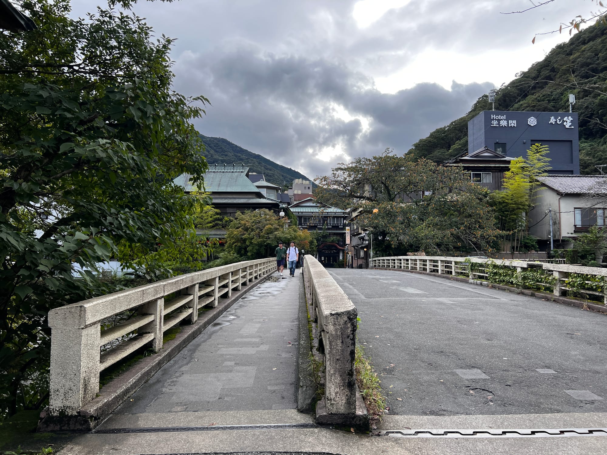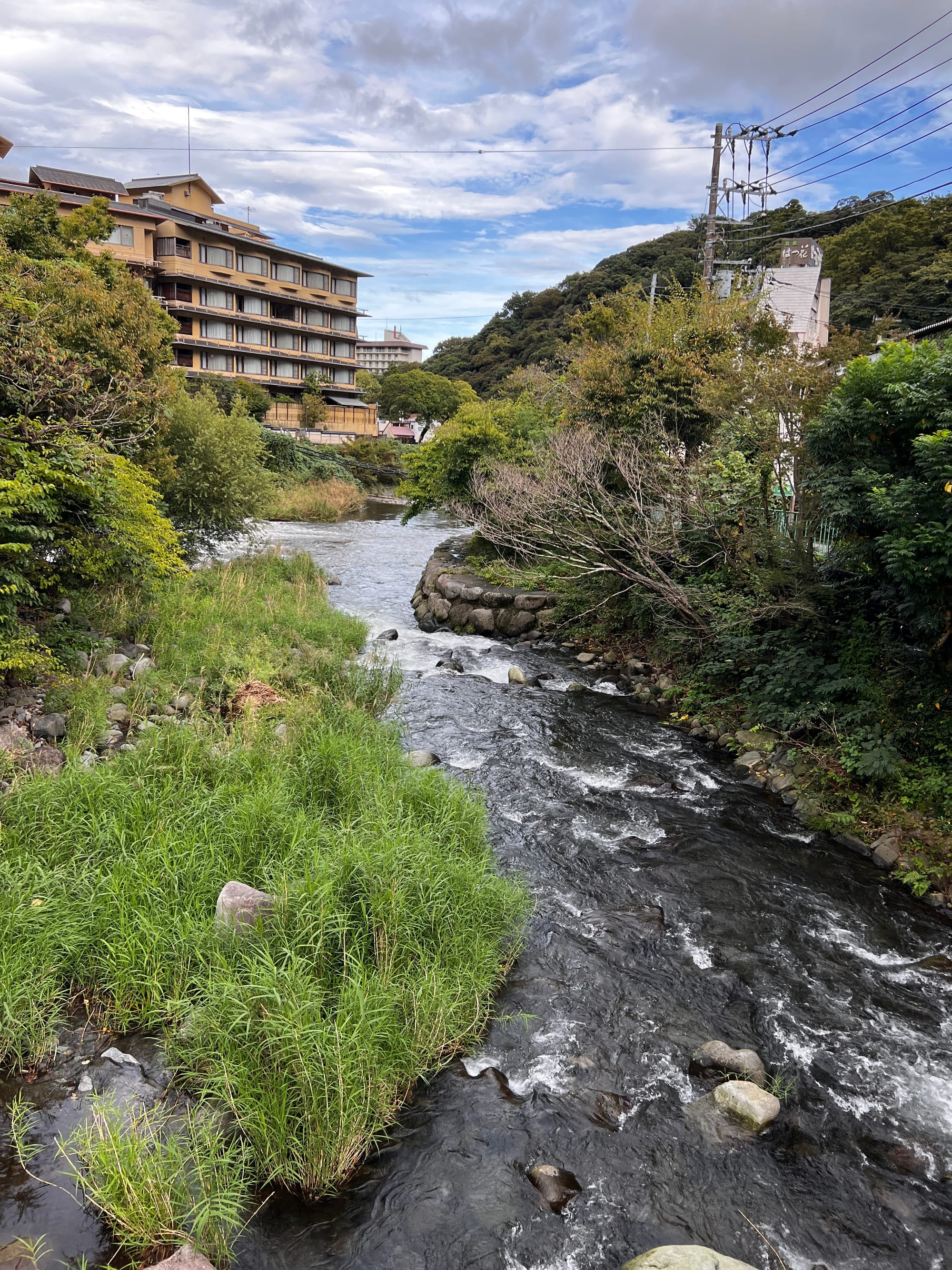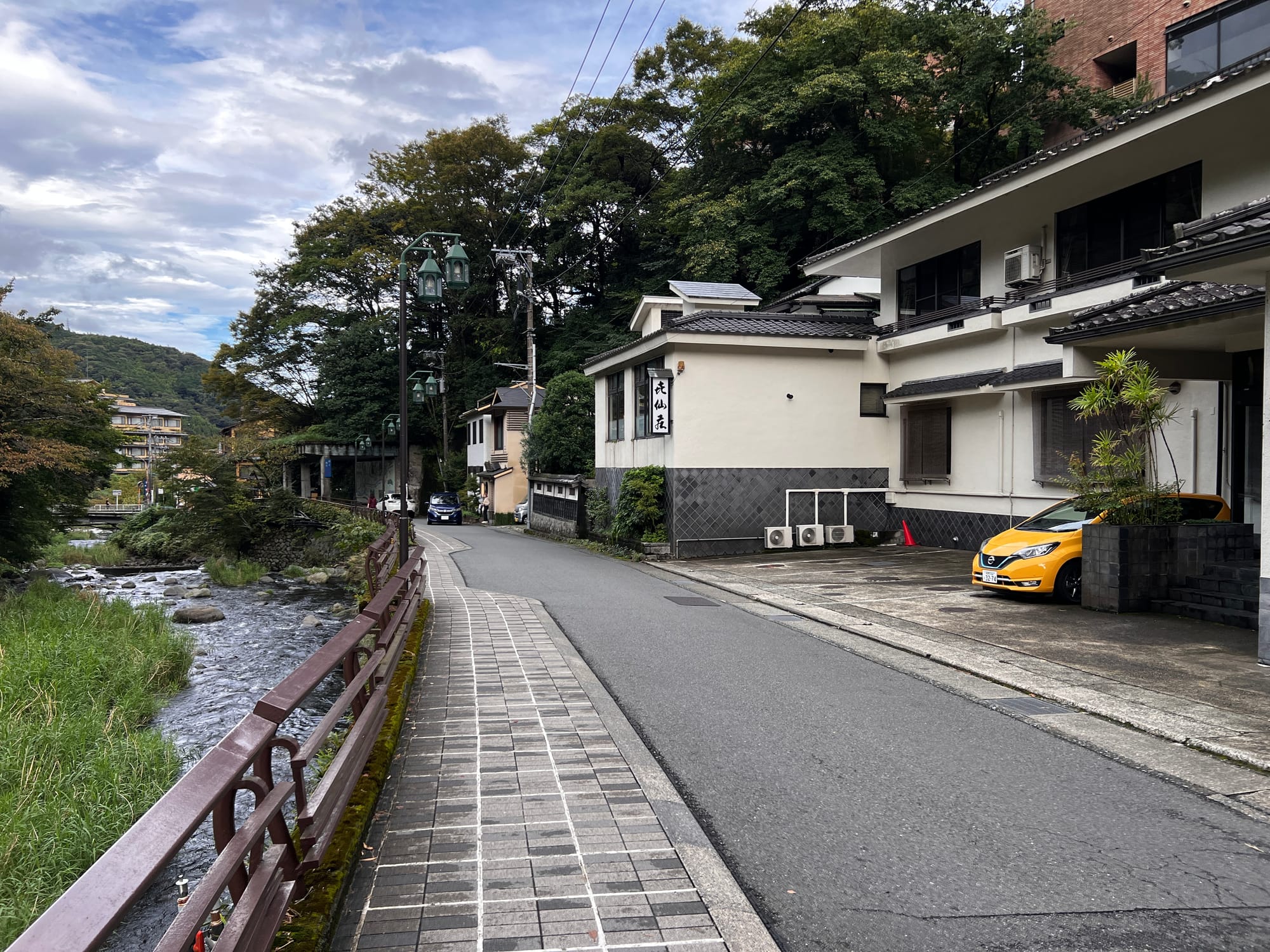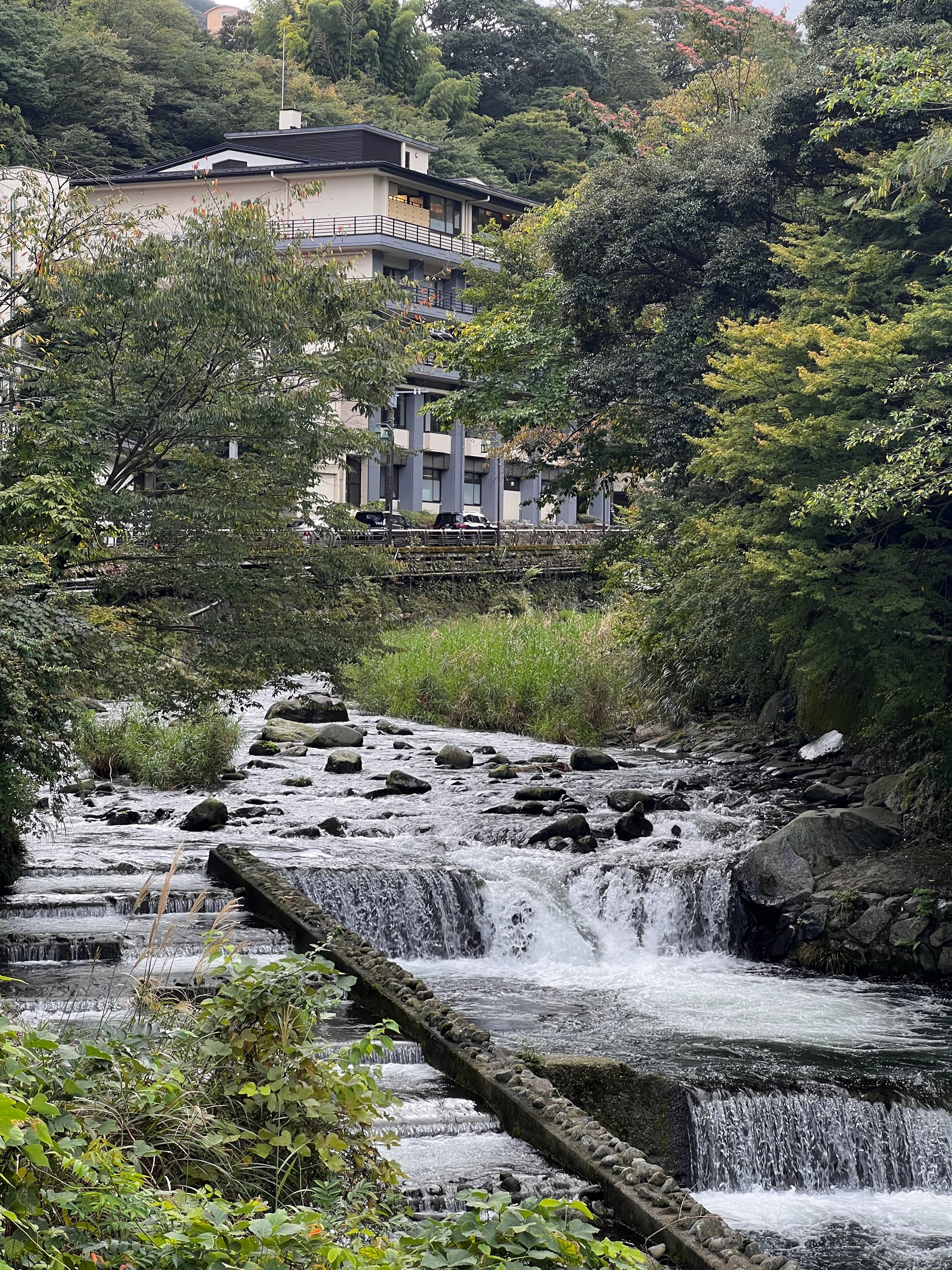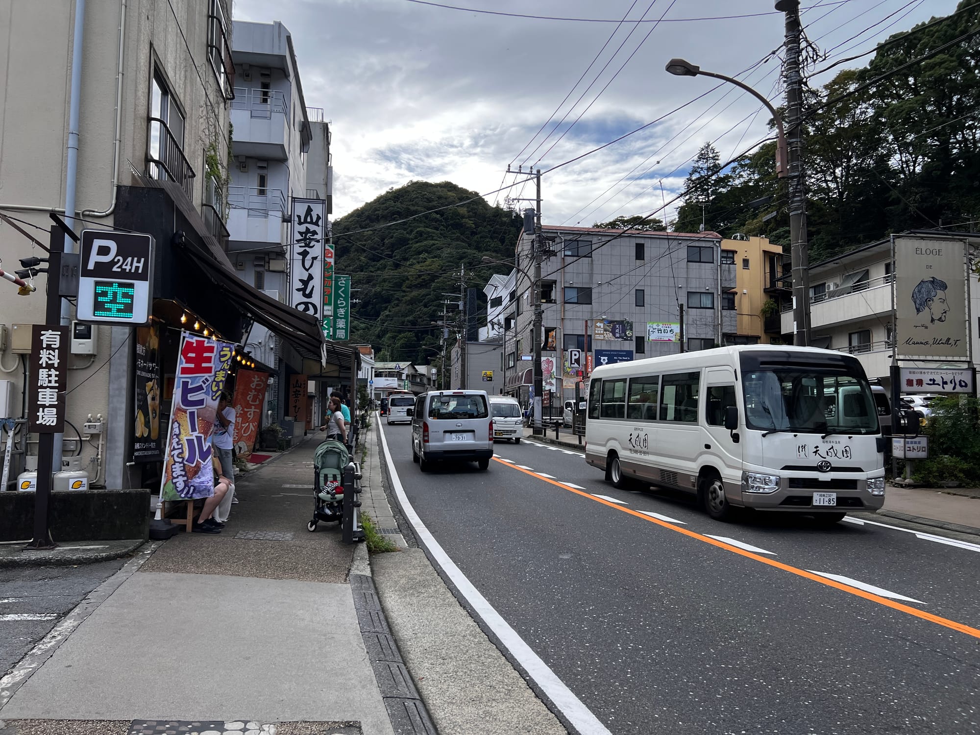 Do Hakone dotarliśmy nieco po godzinie 13, a doba hotelowa w naszym ryokanie zaczyna się o 15, więc zostawiliśmy jedynie bagaże i udaliśmy się na obiad i spacer po mieście. Pierwsze co nam się rzuciło w oczy to różnica między ogromnym, głośnym, neonowym i nieco przytłaczającym Tokio, a oddalonym od niego o zaledwie 80 kilometrów, spokojnym, zielonym, odprężającym, można wręcz rzec swojskim, Hakone. Kiedy tu dotarliśmy, Adrianuś stwierdził, że to jest właśnie ta Japonia, którą sobie wyobrażał i trzeba przyznać, że to miejsce ma swój urok.