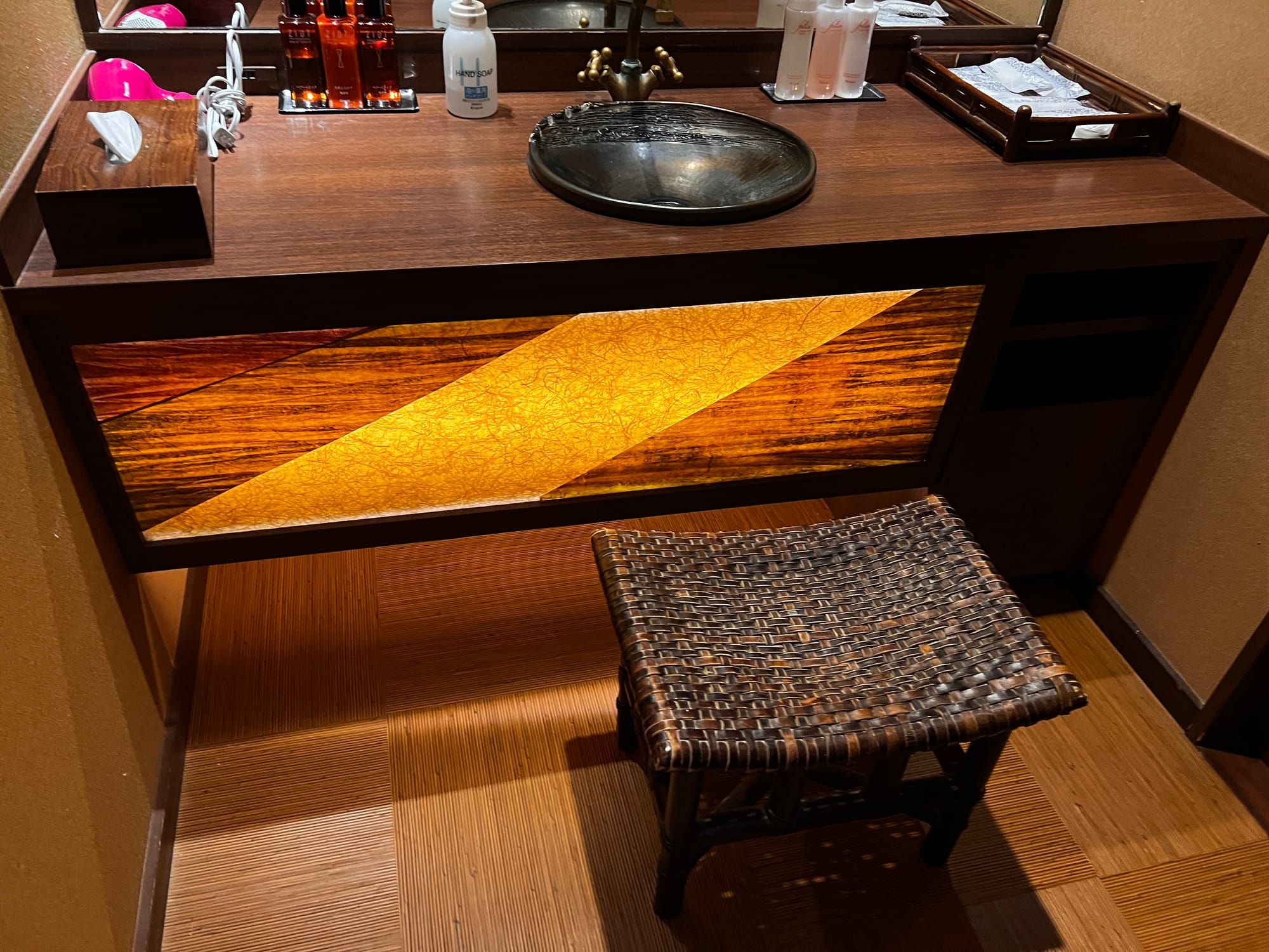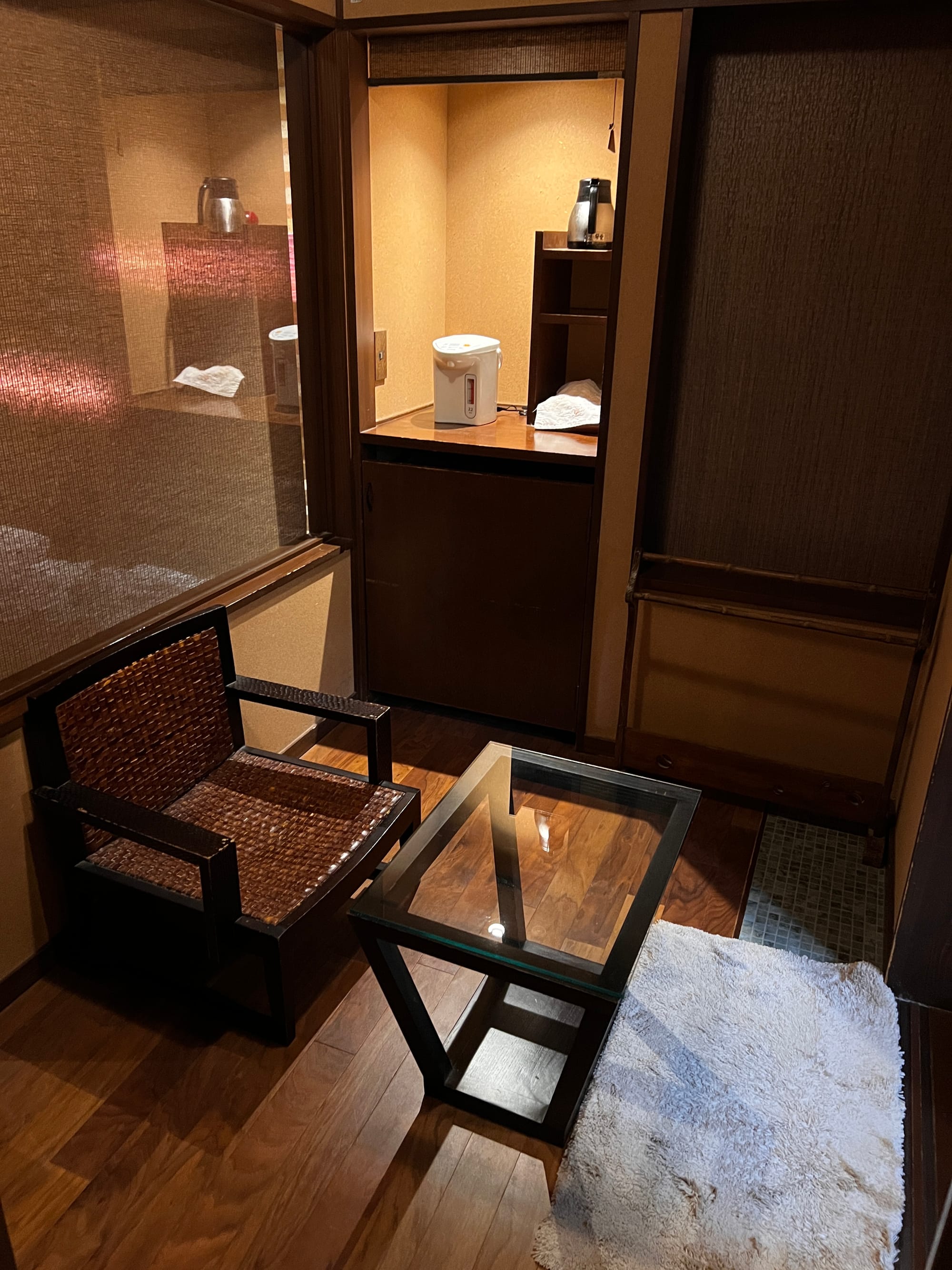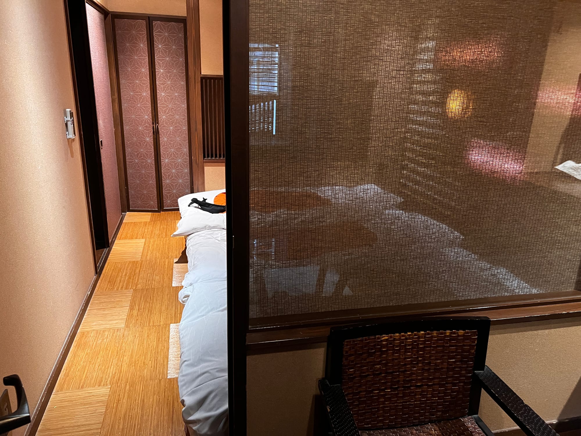 Planując naszą podroż do Japonii, postanowiliśmy zorganizować ją tak, żeby poznać jej tradycje i kulturę w miarę możliwości jak najpełniej, dlatego też w niektórych miejscach zamiast szukać noclegów w nowoczesnych hotelach, postanowiliśmy skorzystać z bardziej tradycyjnych japońskich opcji. Stąd też decyzja, aby w Hakone zatrzymać się w ryokanie. Nasz pobyt obejmuje dwa noclegi z niepełnym wyżywieniem, w skład którego wchodzą śniadania i kolacje. Wybraliśmy ryokan oferujący pokoje z prywatnym onsenem, który jest wyłącznie do naszej dyspozycji, abyśmy mogli z niego korzystać razem.