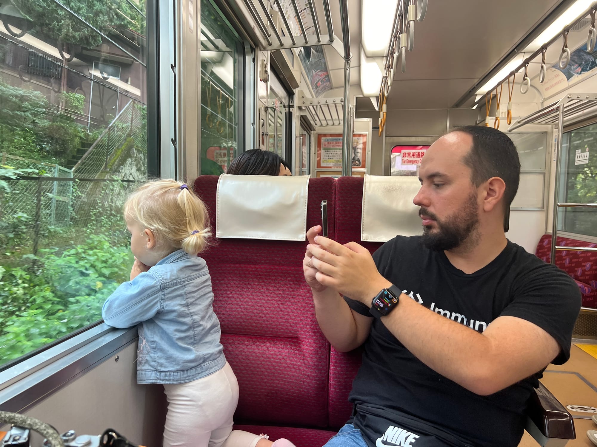 Najgorszym etapem naszej dzisiejszej wycieczki okazał się jednak powrót autobusem. Było to całkiem niespodziewane, zwłaszcza że Adrian już od wczoraj stresował się kolejką linową, przedstawiając jako świetną alternatywę właśnie autobus. Jego trasa jednak wiodła krętymi uliczkami z dużej wysokości, wewnątrz było duszno i tłoczno, a my z napełnionymi pierożkami brzuchami, nie czuliśmy się zbyt dobrze podczas tej półgodzinnej przejażdżki. Na szczęście Tosia nie narzekała i znów się nawet chwilę zdrzemnęła, a i nam udało się ostatecznie dojechać na miejsce z pierożkami nadal w brzuchach, choć nie było to łatwe!