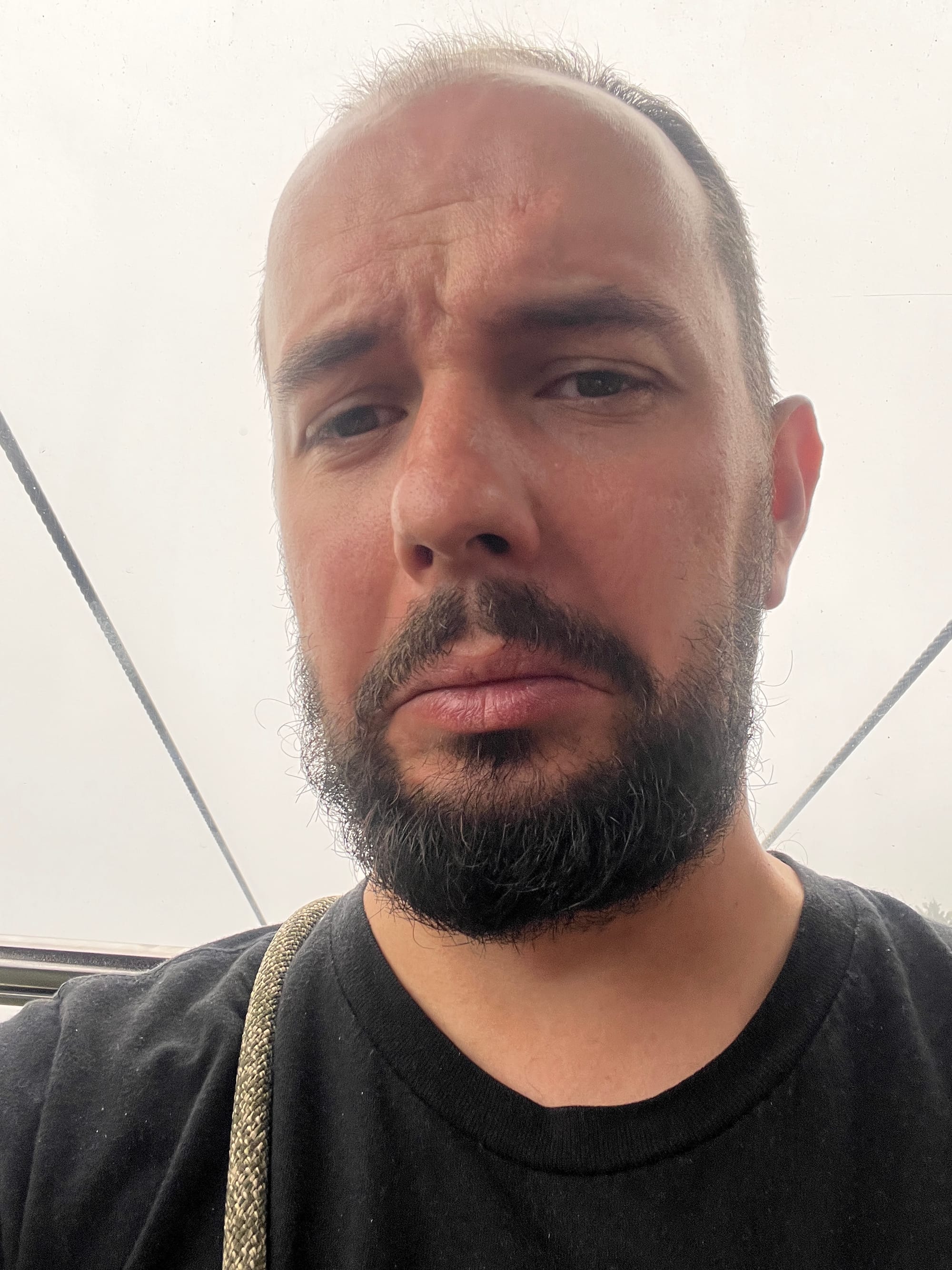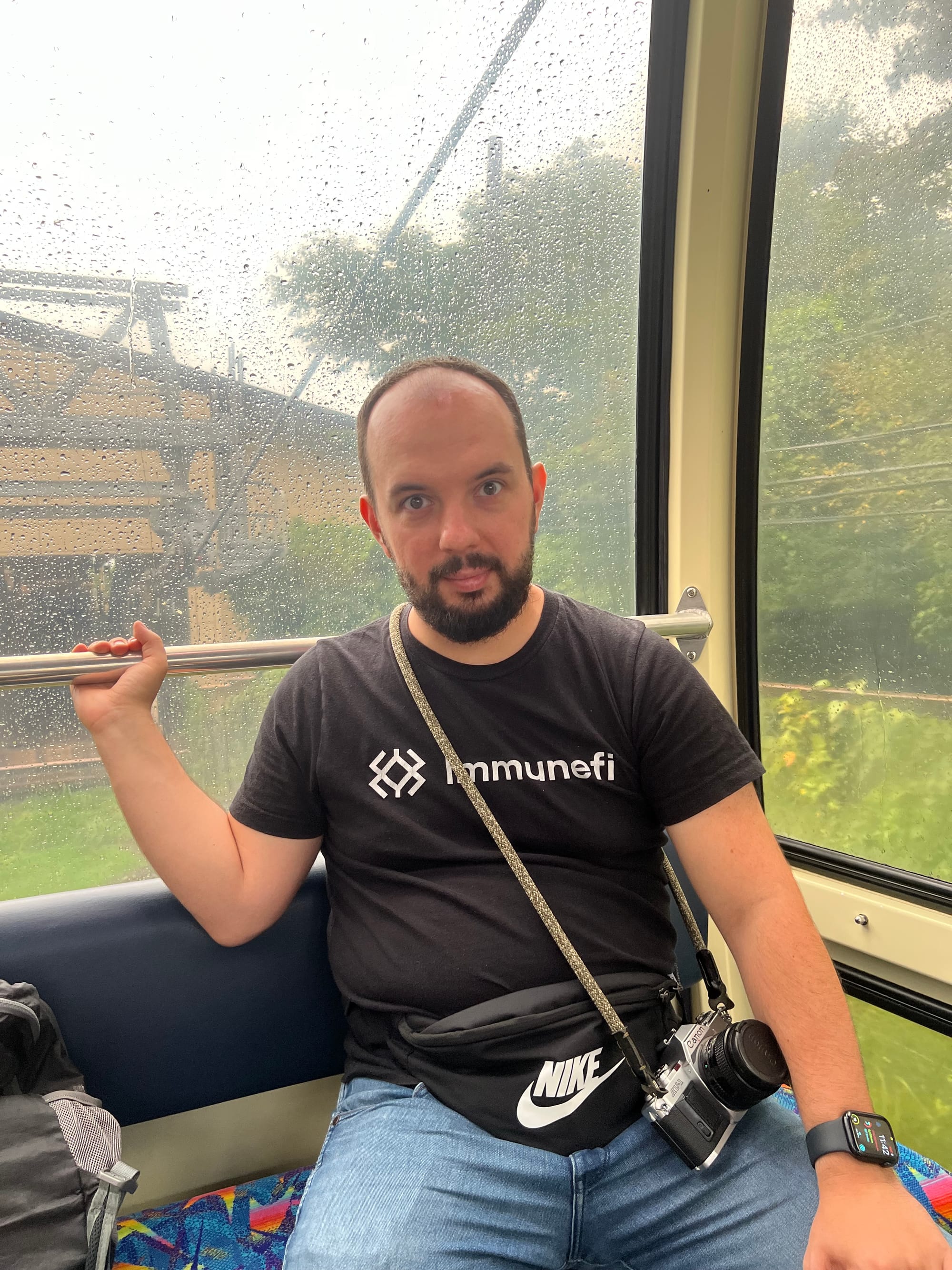 Jak widać na powyższych zdjęciach, Adrian nie był zadowolony z tego środka transportu i ciągle powtarzał, że robi to tylko z miłości do mnie, chociaż wtedy nie wiedział, że najgorszy etap podróży jeszcze przed nami. Niestety pogoda dzisiaj nie dopisała, było nie tylko deszczowo, ale rownież mgliście, więc widoczność była bardzo ograniczona.