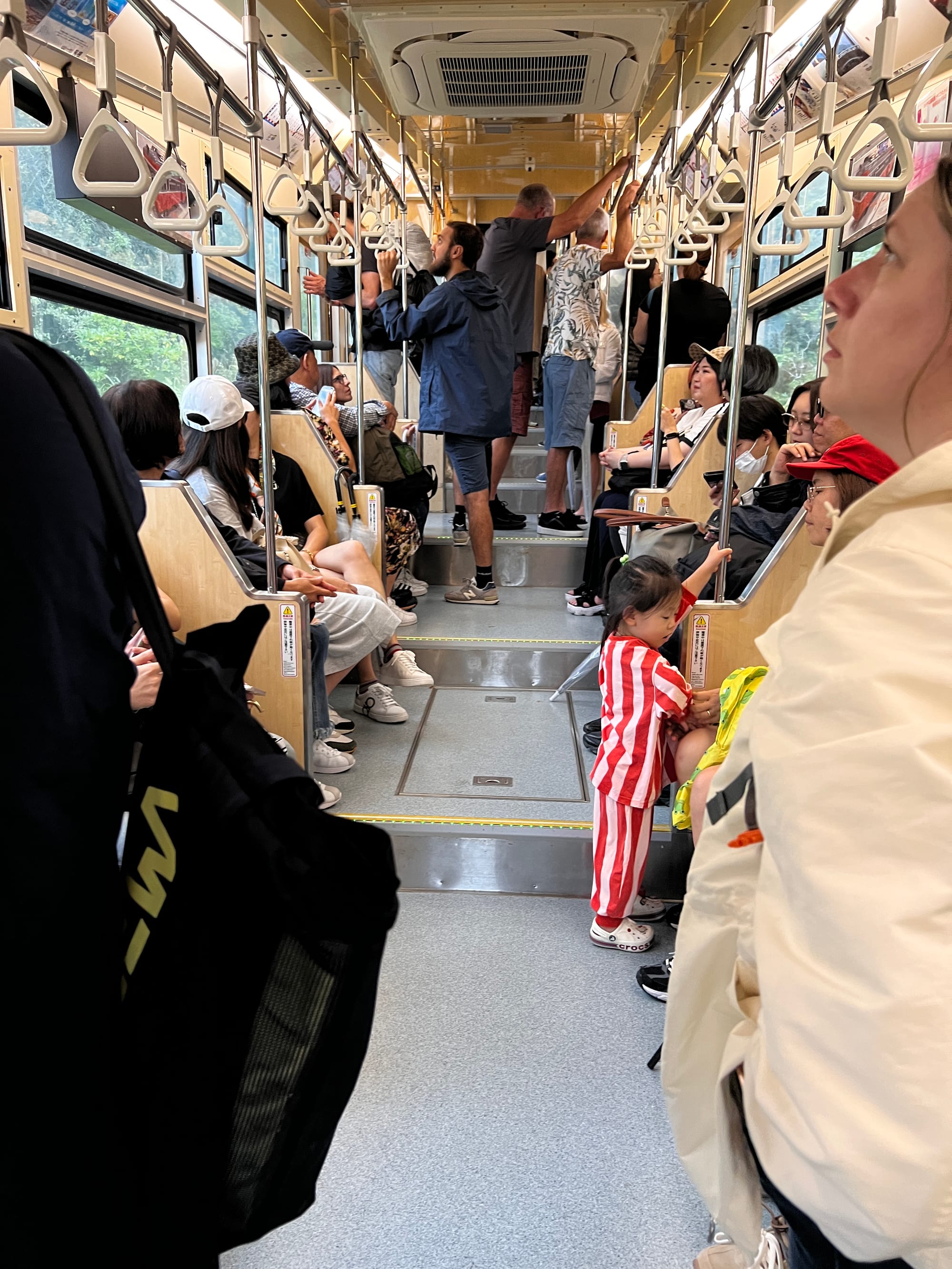 Po śniadaniu wyruszyliśmy na zwiedzanie Hakone, które przemierzyliśmy wszelkimi dostępnymi tu środkami transportu publicznego, a jest ich niemało! Zaczęliśmy od podróży pociągiem, którym dojechaliśmy aż pod stację kolejki torowej, poruszającej się po górskiej, bardzo stromej ścieżce. Hakone jest terenem bardzo górzystym, więc już od początku naszej dzisiejszej wyprawy, mieliśmy piękne widoki.