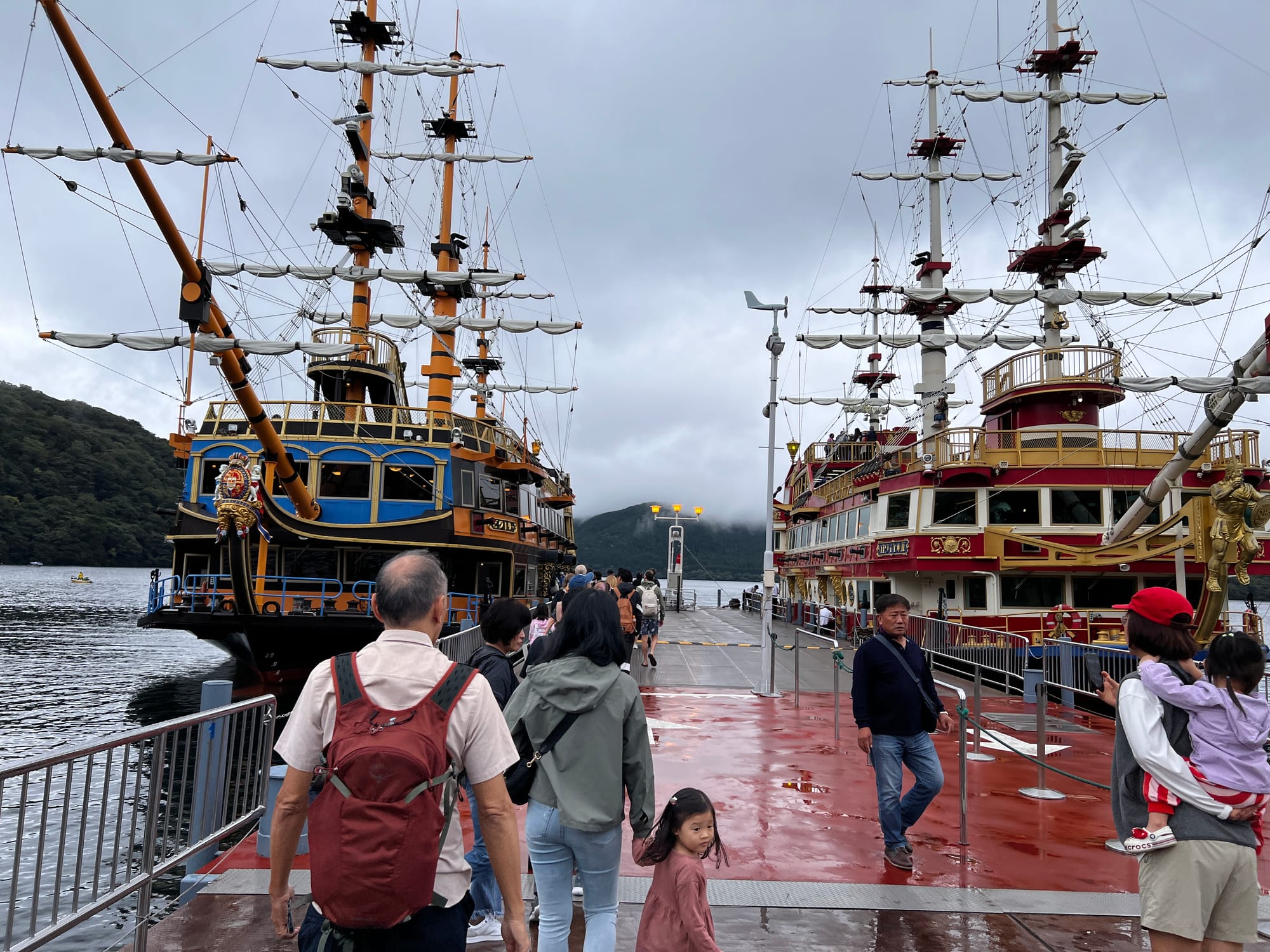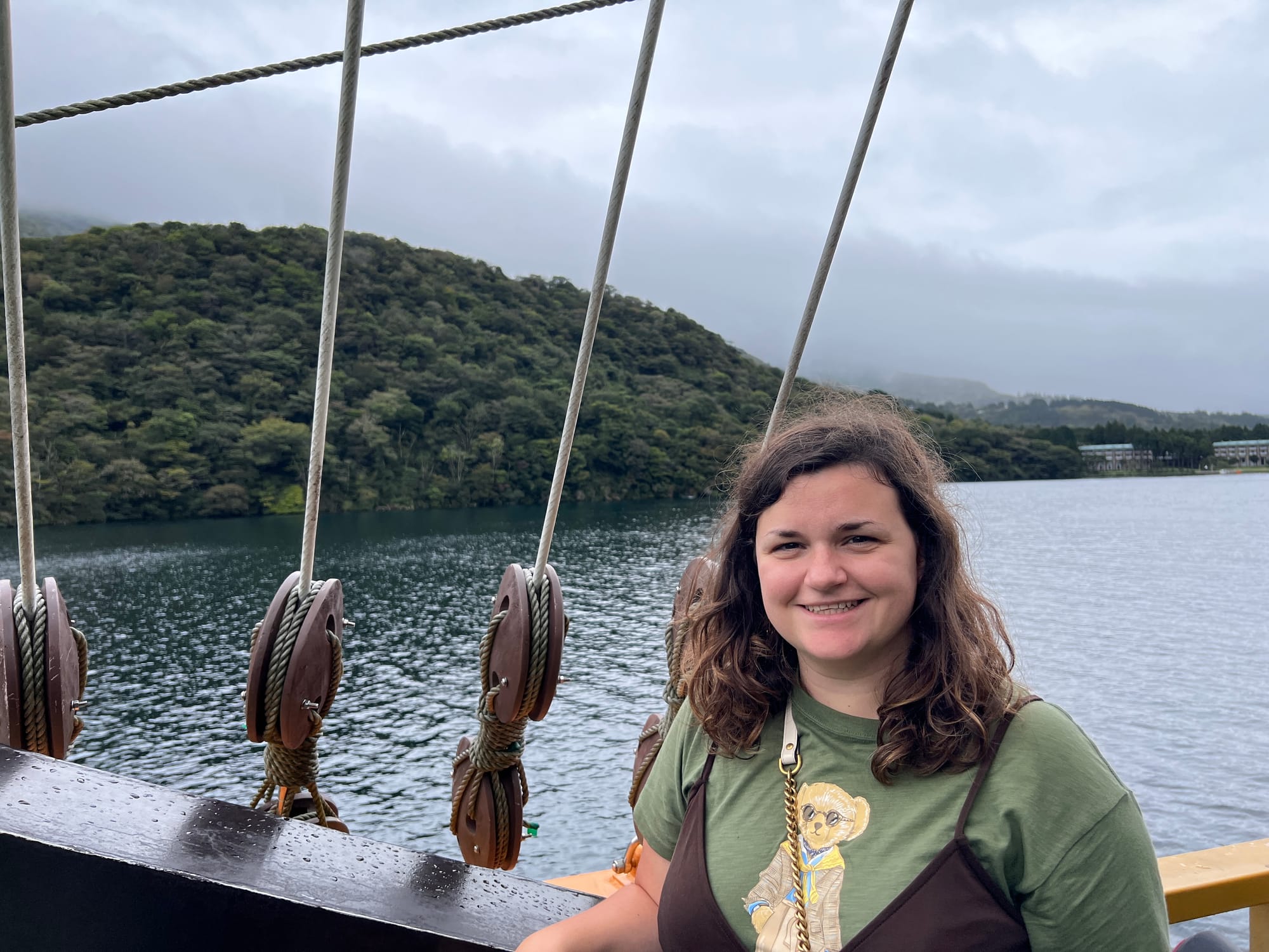 Kolejnym celem naszej dzisiejszej wycieczki było jezioro Ashi, gdzie zjechaliśmy kolejką linową. Na stacji znaleźliśmy uroczą restaurację z widokiem na jezioro, gdzie posililiśmy się i chwilę odpoczęliśmy.