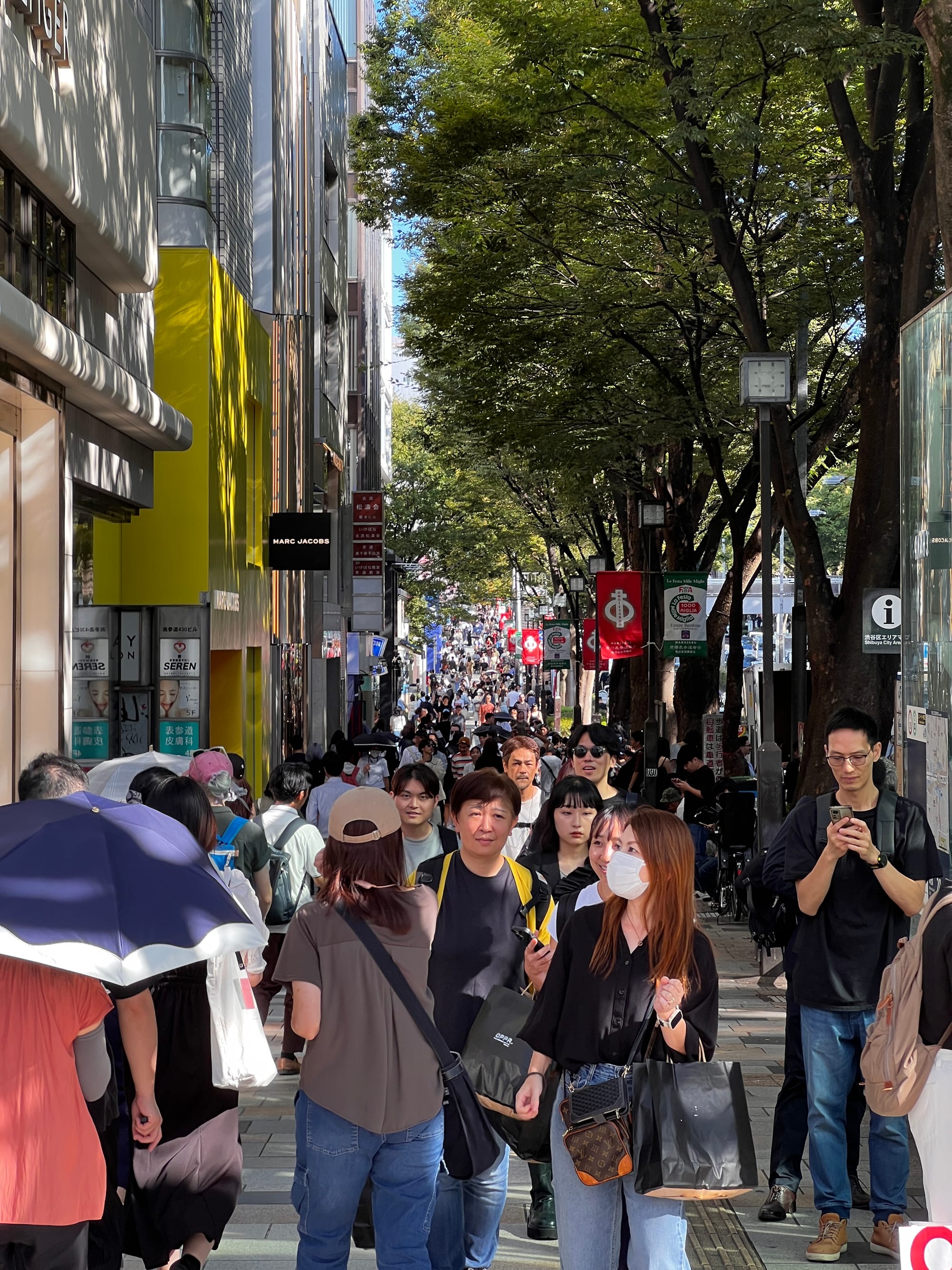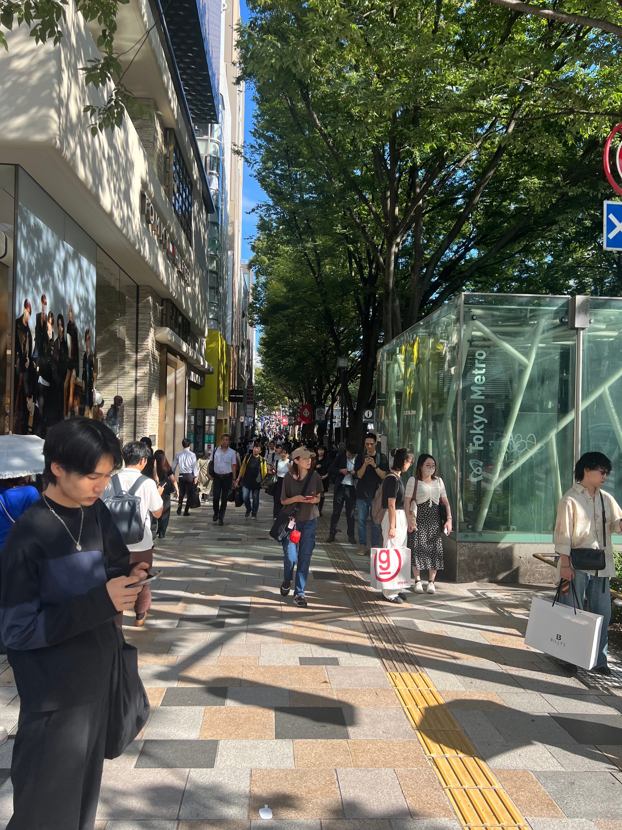 Następnie postanowiliśmy udać się w kierunku promenady Ometasando, przy której zlokalizowane są liczne sklepy luksusowych marek i która określana jest tokijskim odpowiednikiem paryskiego Champs-Elysees. Po drodze mieliśmy okazję podziwiać ciekawą architekturę dzielnicy Shibuya, a na koniec naszego pobytu tam udało nam się znaleźć przyjemną, lokalną knajpkę, w której zjedliśmy smaczny obiad.