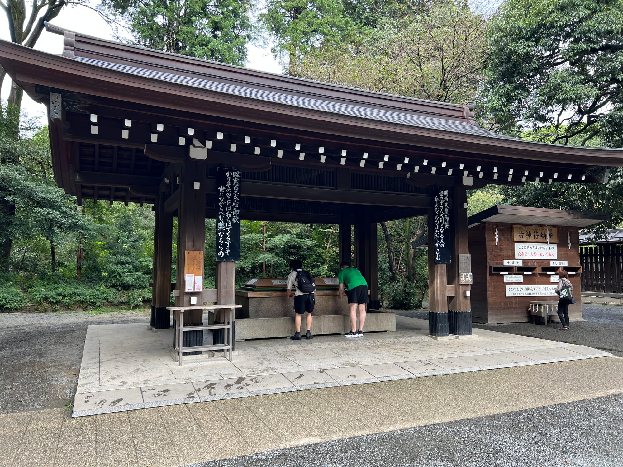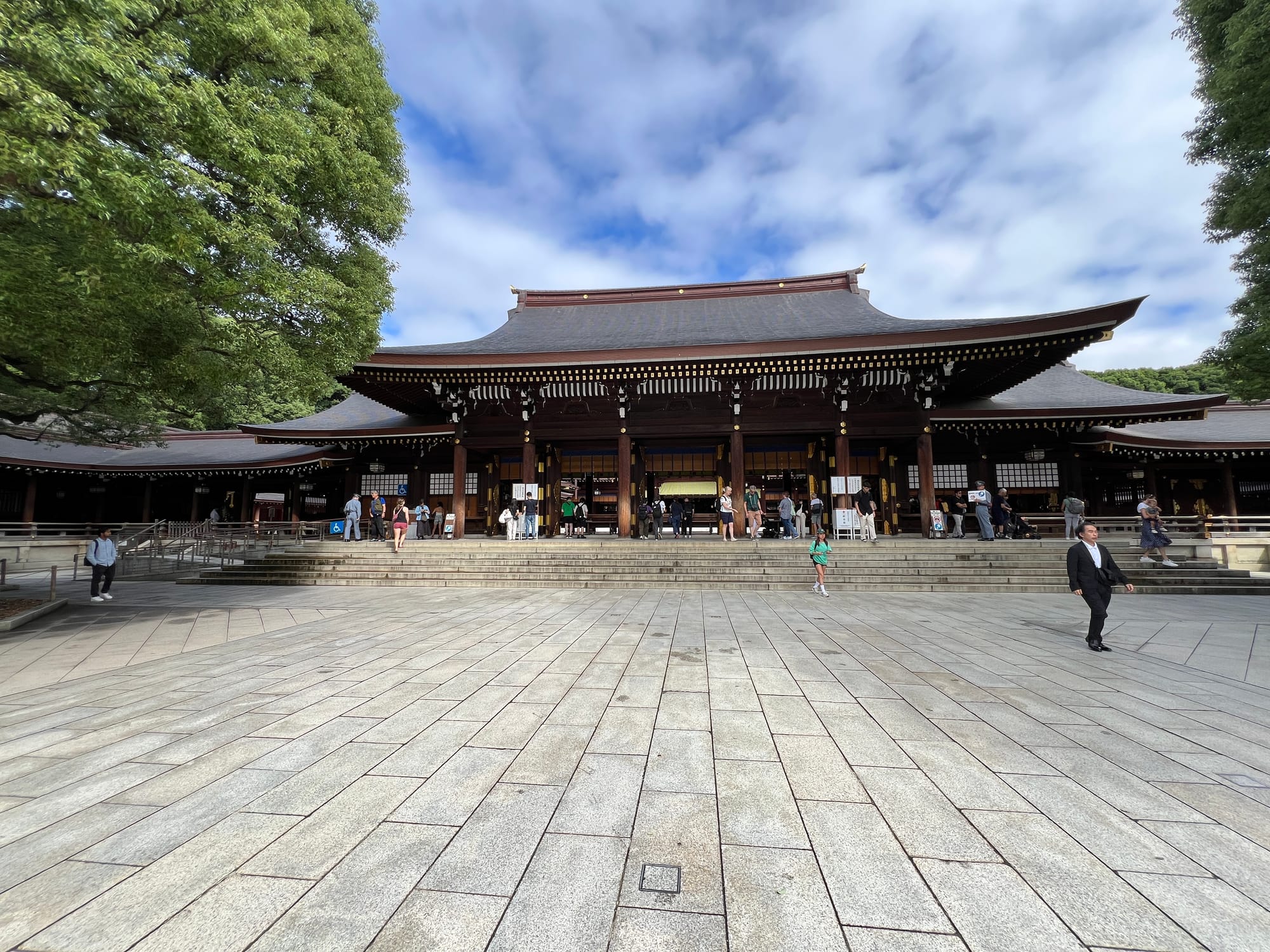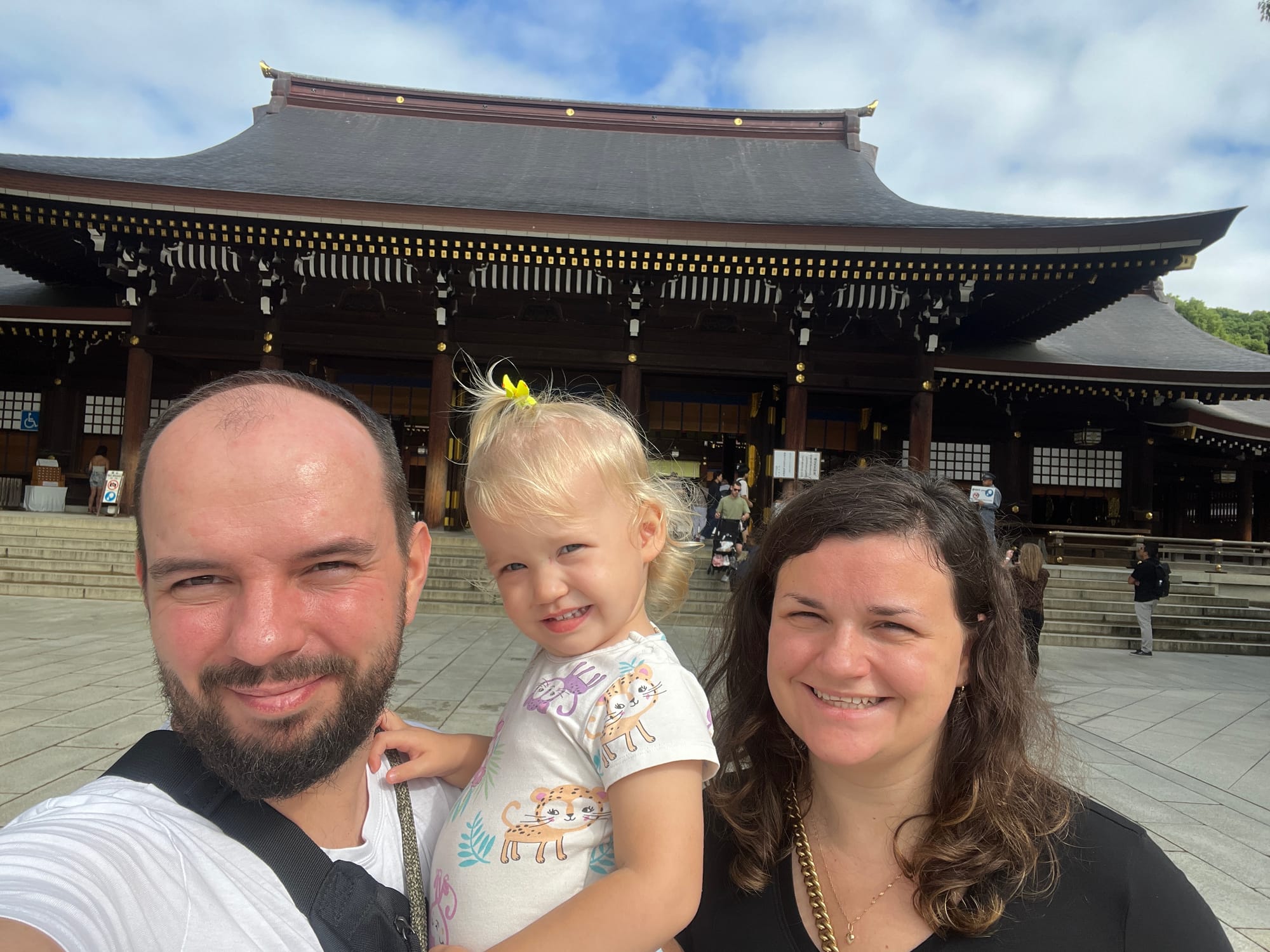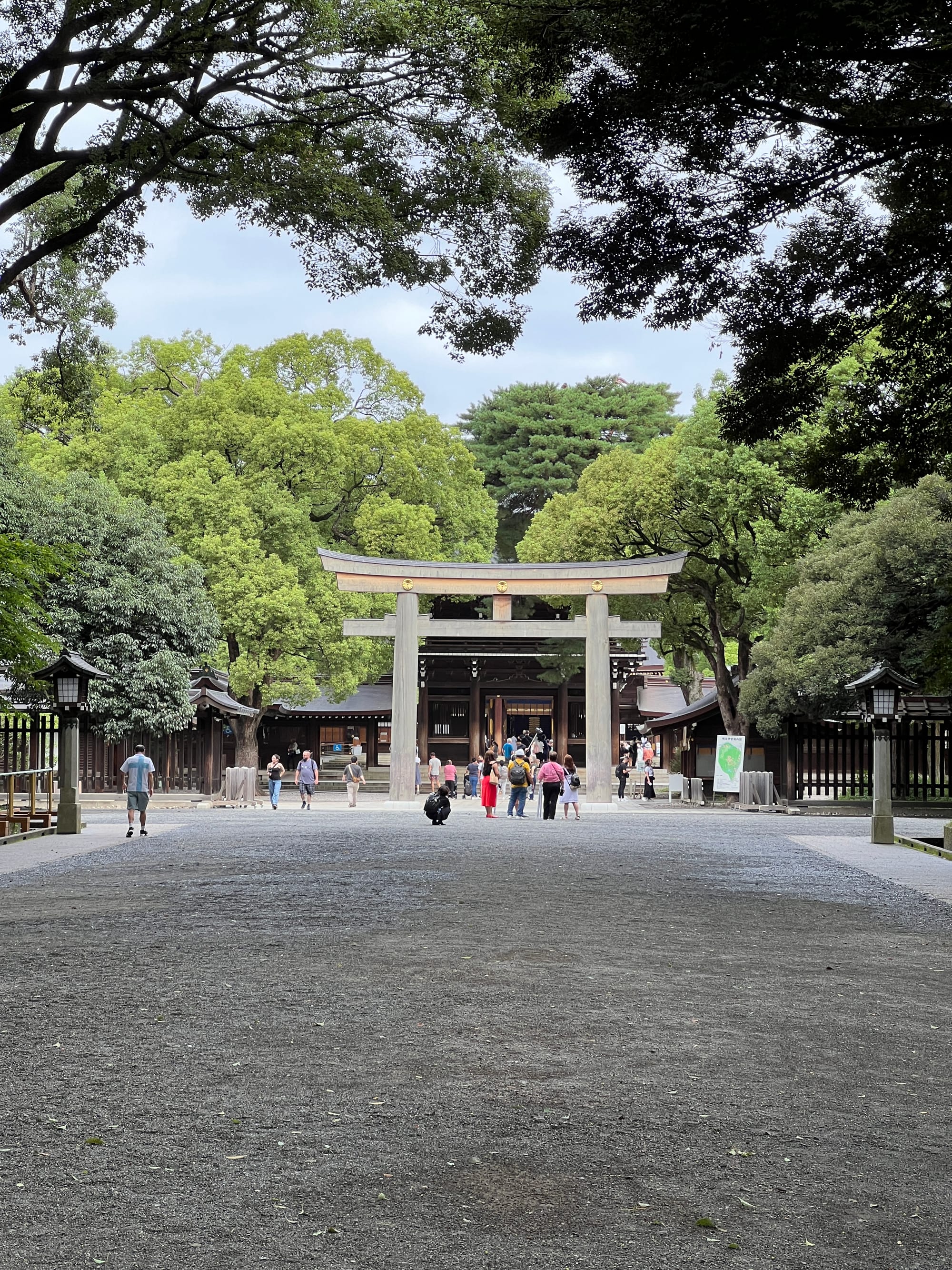 Pierwszym naszym celem była świątynia Meiji Jingu, będąca chramem shinto poświęconym duchom cesarza Meiji i jego żony, cesarzowej Shōken. Świątynia ta, malowniczo położona pośród pięknego lasu, do którego wchodzi się poprzez bramę Torii, jest jedną z najwiekszych atrakcji turystycznych Tokio.