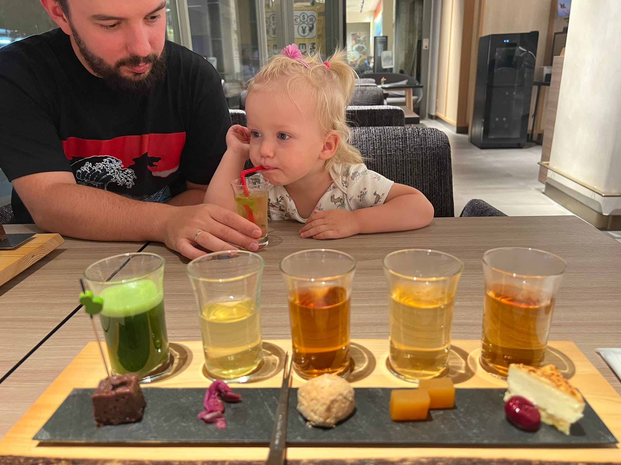 Po wizycie w zamku opadliśmy z sił, więc postanowiliśmy wrócić do hotelu. Adrian poszedł jeszcze do apteki, żeby zakupić leki na przeziębienie, a następnie pobuszować w pobliskich sklepach z elektroniką. Po krótkiej drzemce wybraliśmy się jeszcze na degustację japońskich herbat w hotelowej kawiarni, a następnie Tosia doczekała się w końcu wizyty w pokoju zabaw, który mijamy za każdym razem w drodze pomiędzy windami a naszym pokojem.