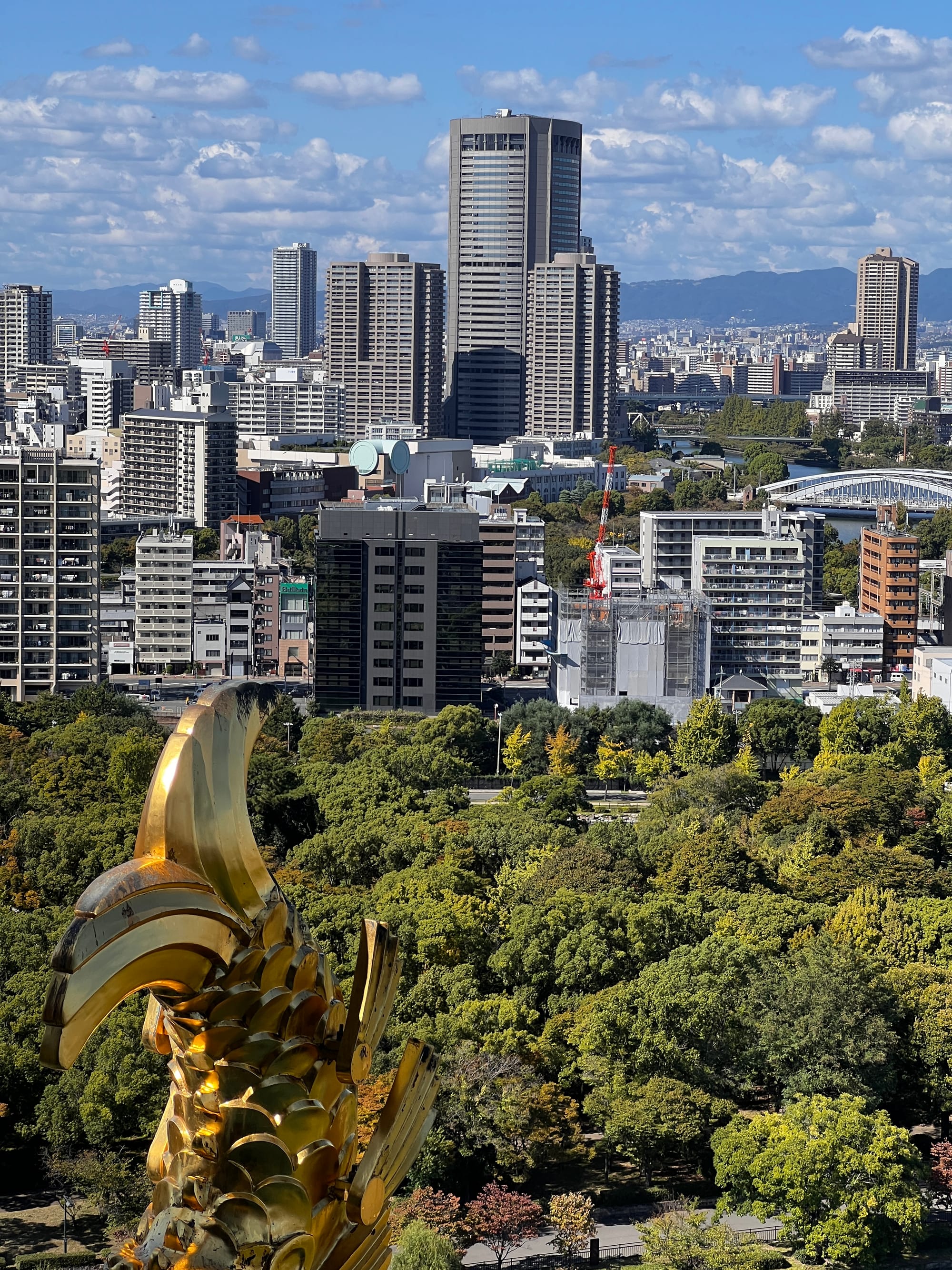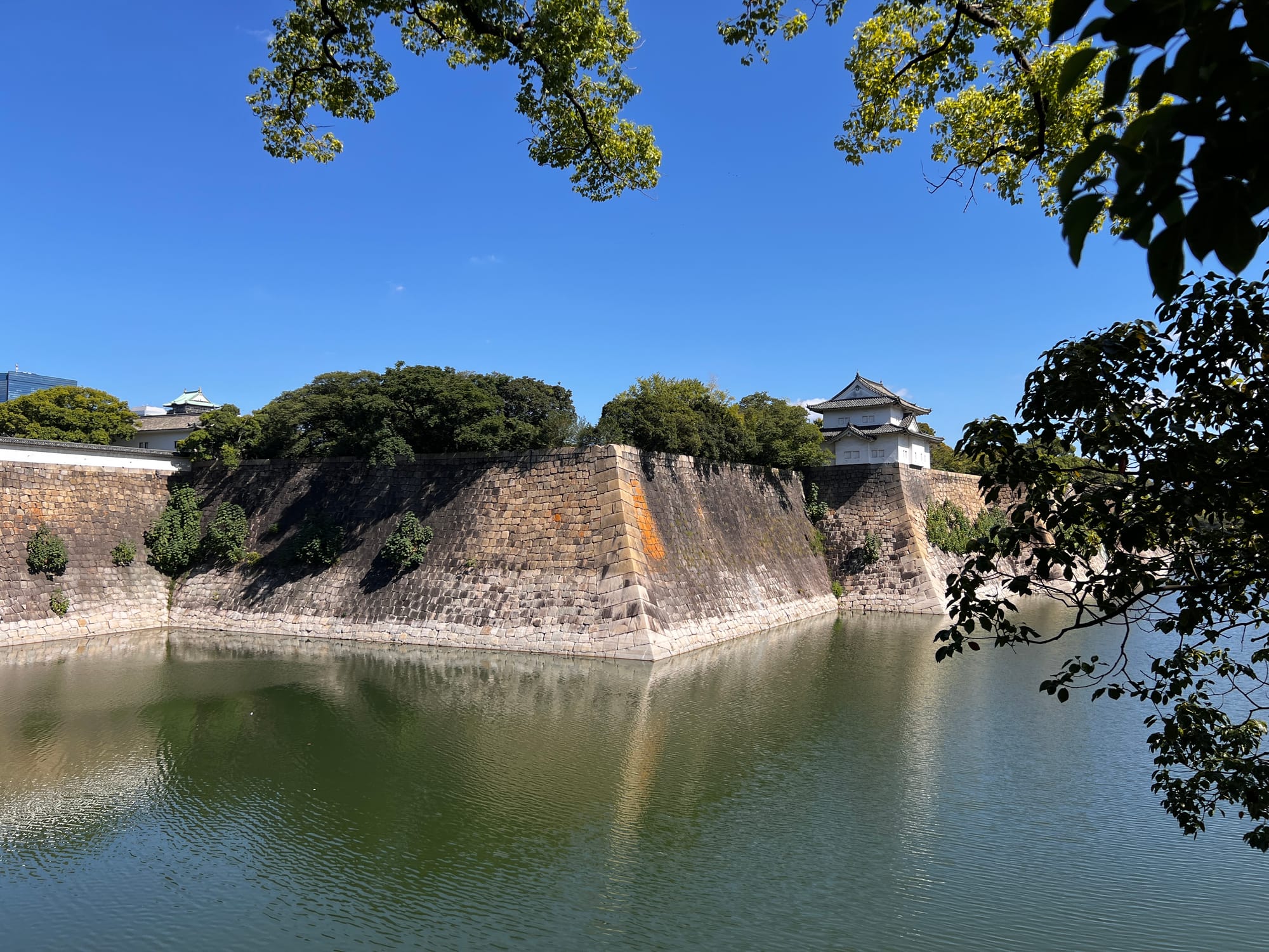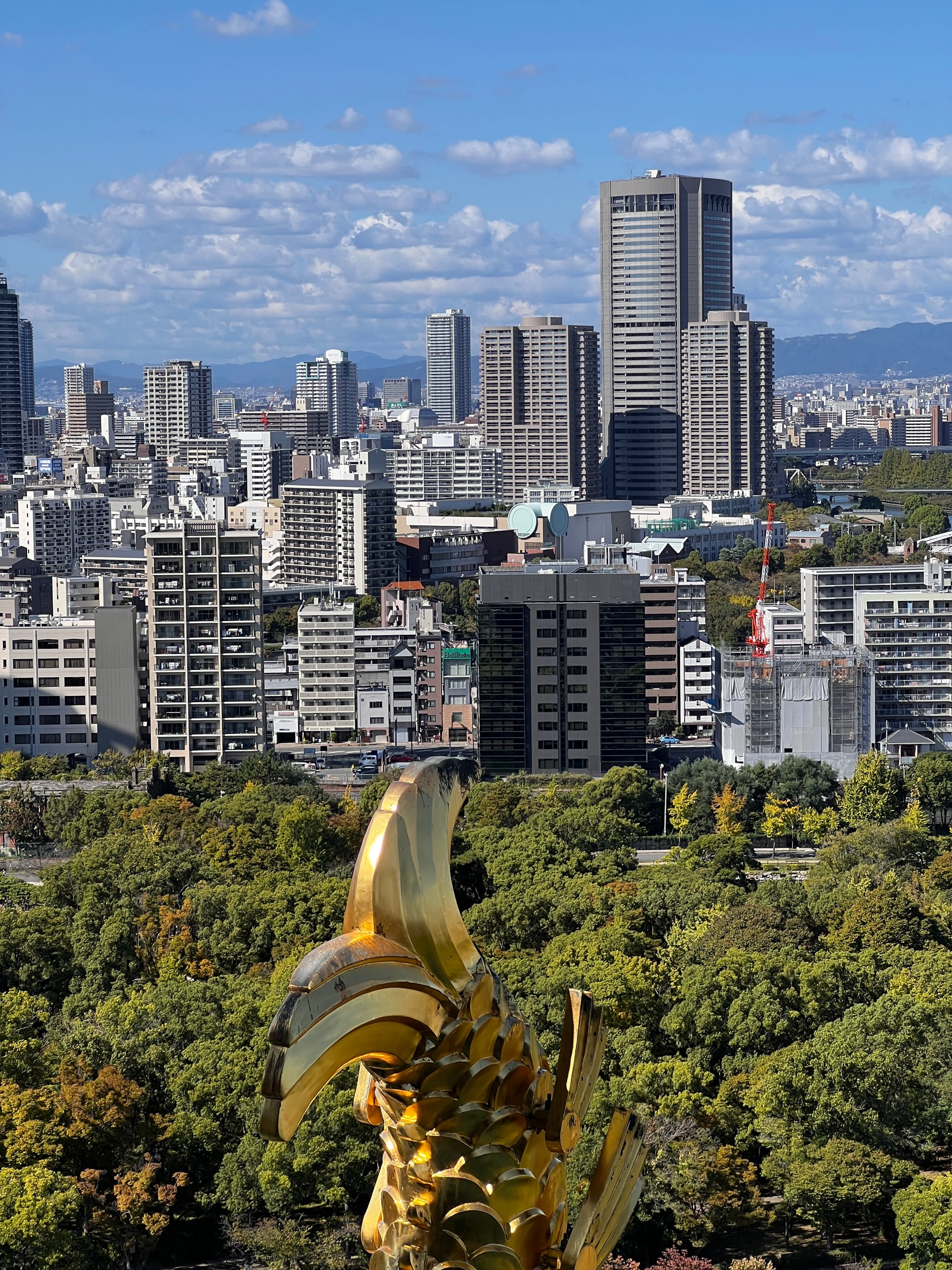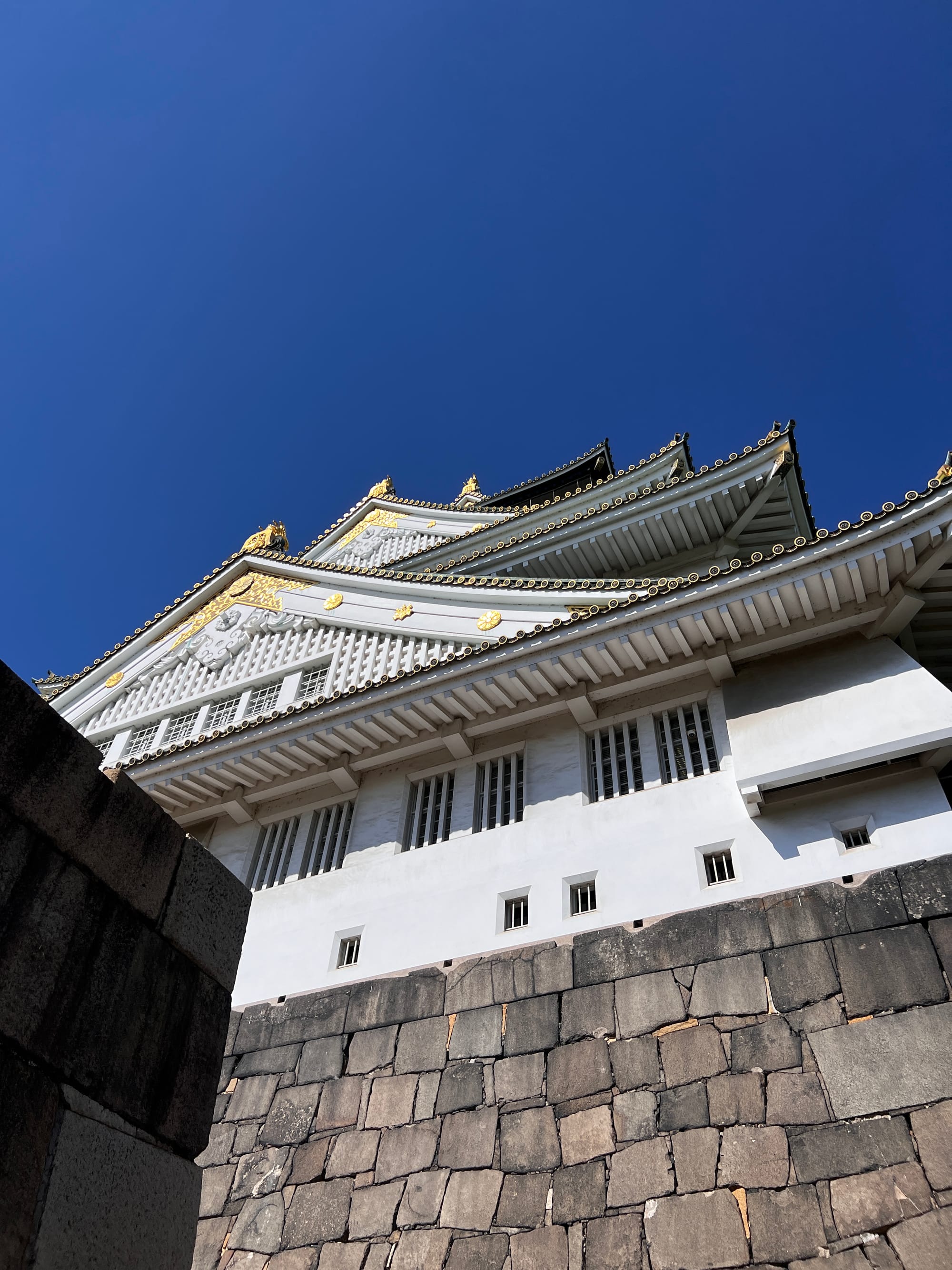Następnie udaliśmy się metrem do chyba jedynej w tym mieście zabytkowej atrakcji, jaką jest Zamek Osaka. W pewnym momencie był to największy zamek w kraju, jednak obecnie znajduje się tam jedynie rekonstrukcja murów obronnych i wieży tenshu, która została zagospodarowana jako historyczne muzeum tego miejsca. Z balkonu znajdującego się na ósmym piętrze zamku rozpościera się piękny widok na okolicę, w tym otaczający zamek park i ogród.