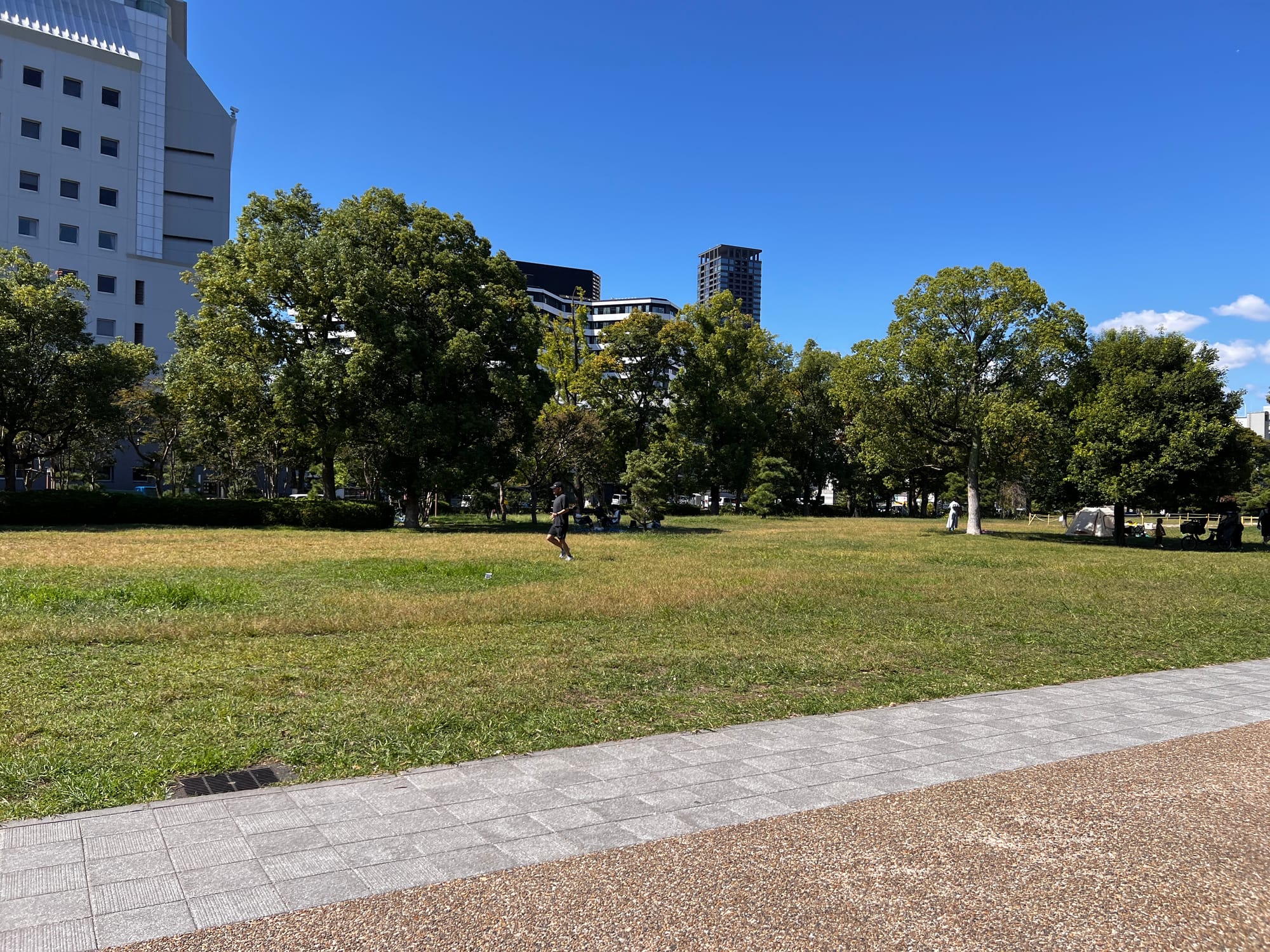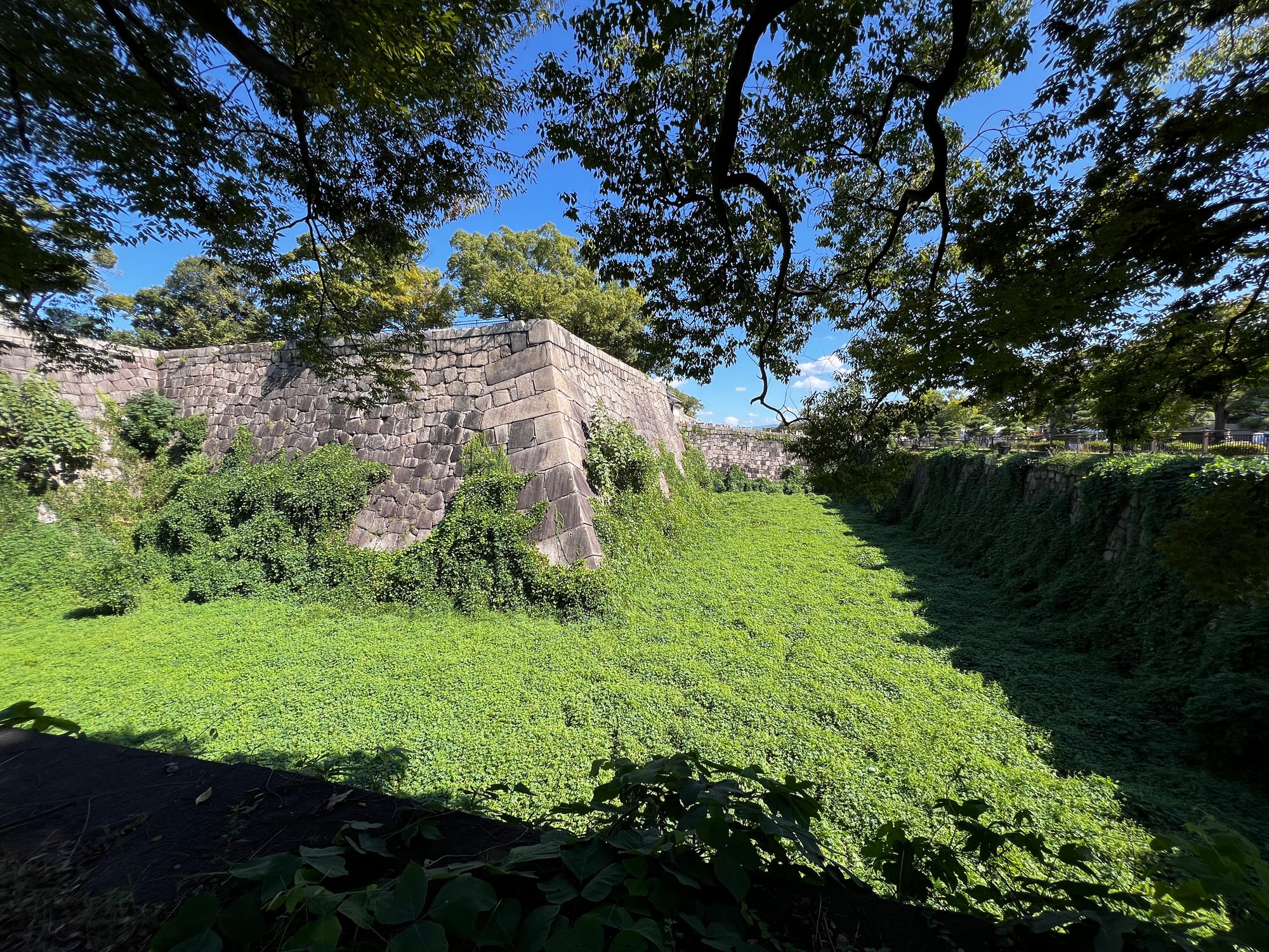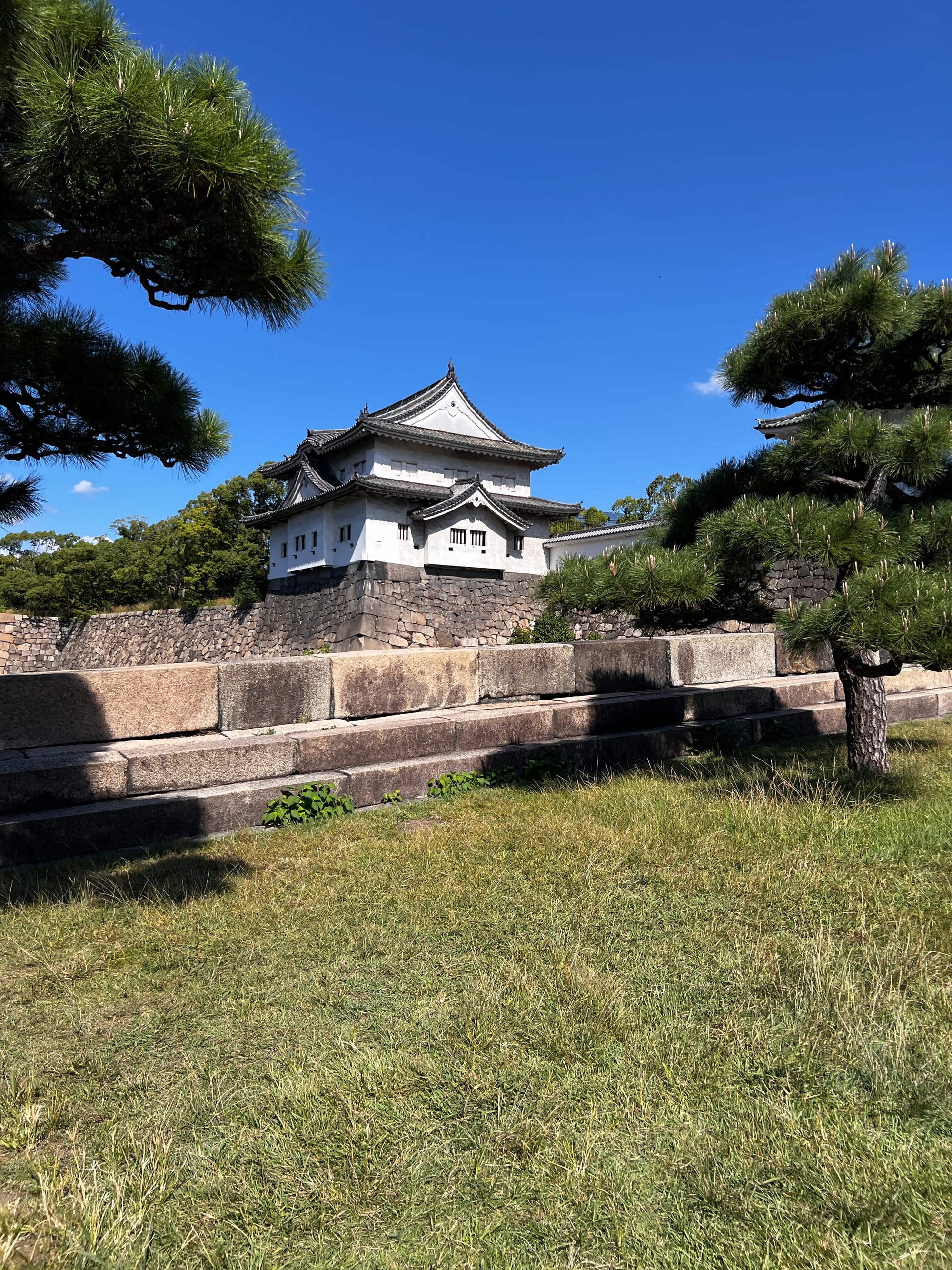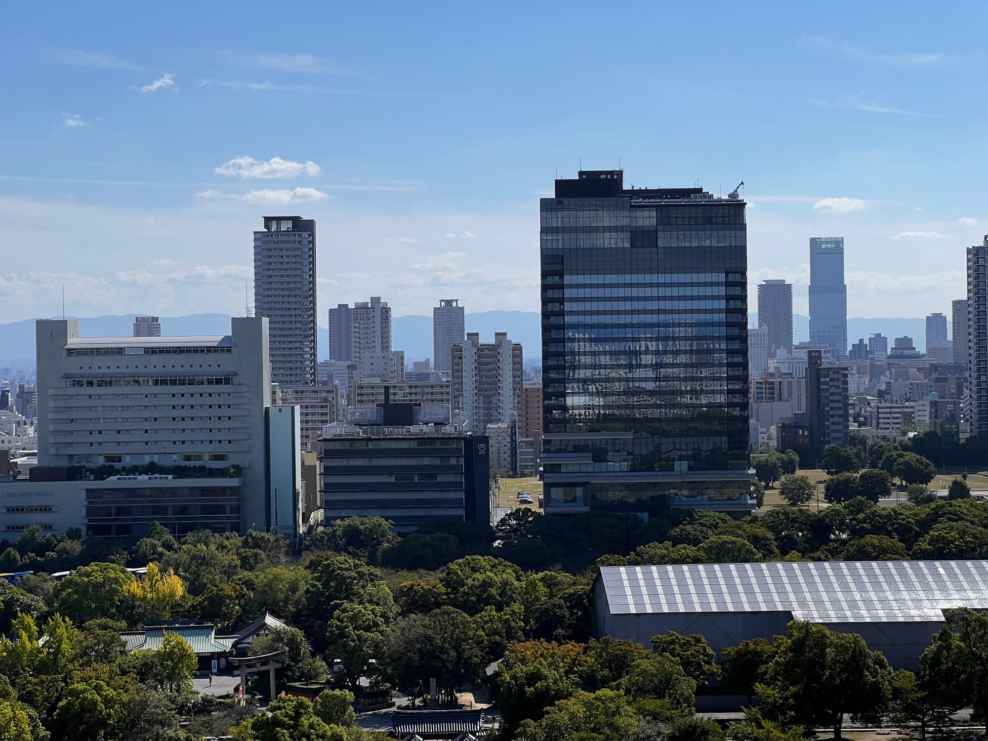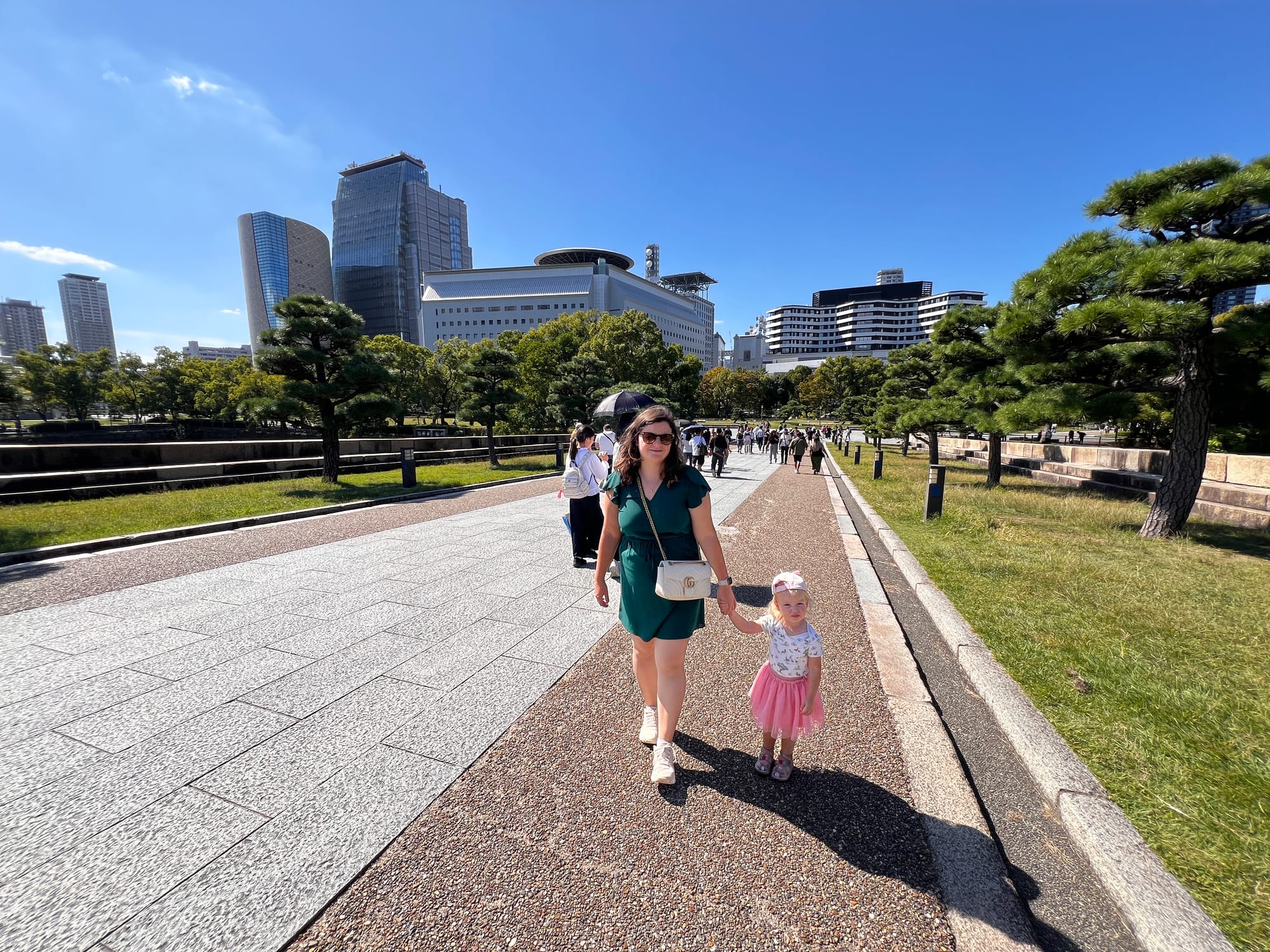 Następnie udaliśmy się metrem do chyba jedynej w tym mieście zabytkowej atrakcji, jaką jest Zamek Osaka. W pewnym momencie był to największy zamek w kraju, jednak obecnie znajduje się tam jedynie rekonstrukcja murów obronnych i wieży tenshu, która została zagospodarowana jako historyczne muzeum tego miejsca. Z balkonu znajdującego się na ósmym piętrze zamku rozpościera się piękny widok na okolicę, w tym otaczający zamek park i ogród.